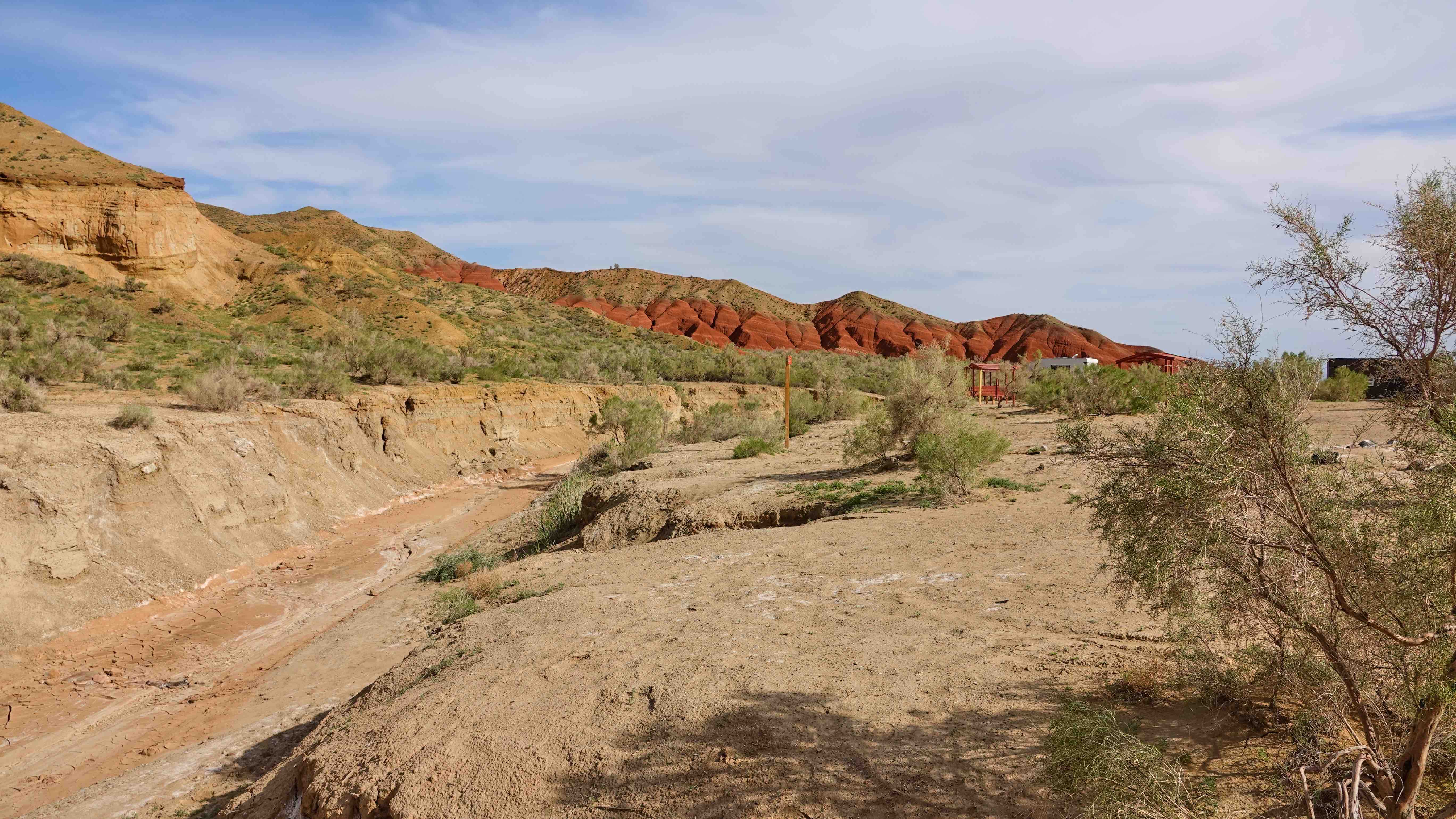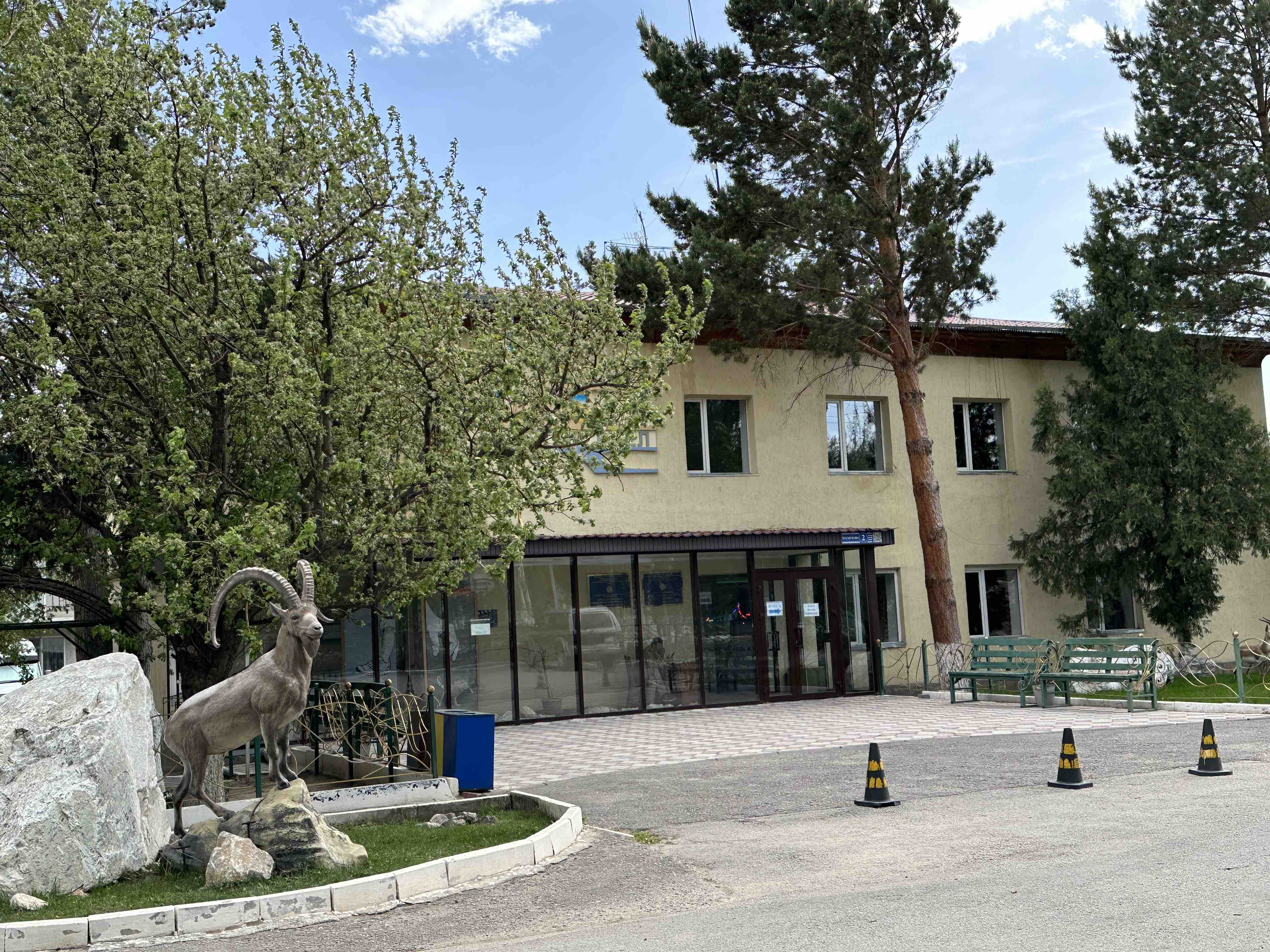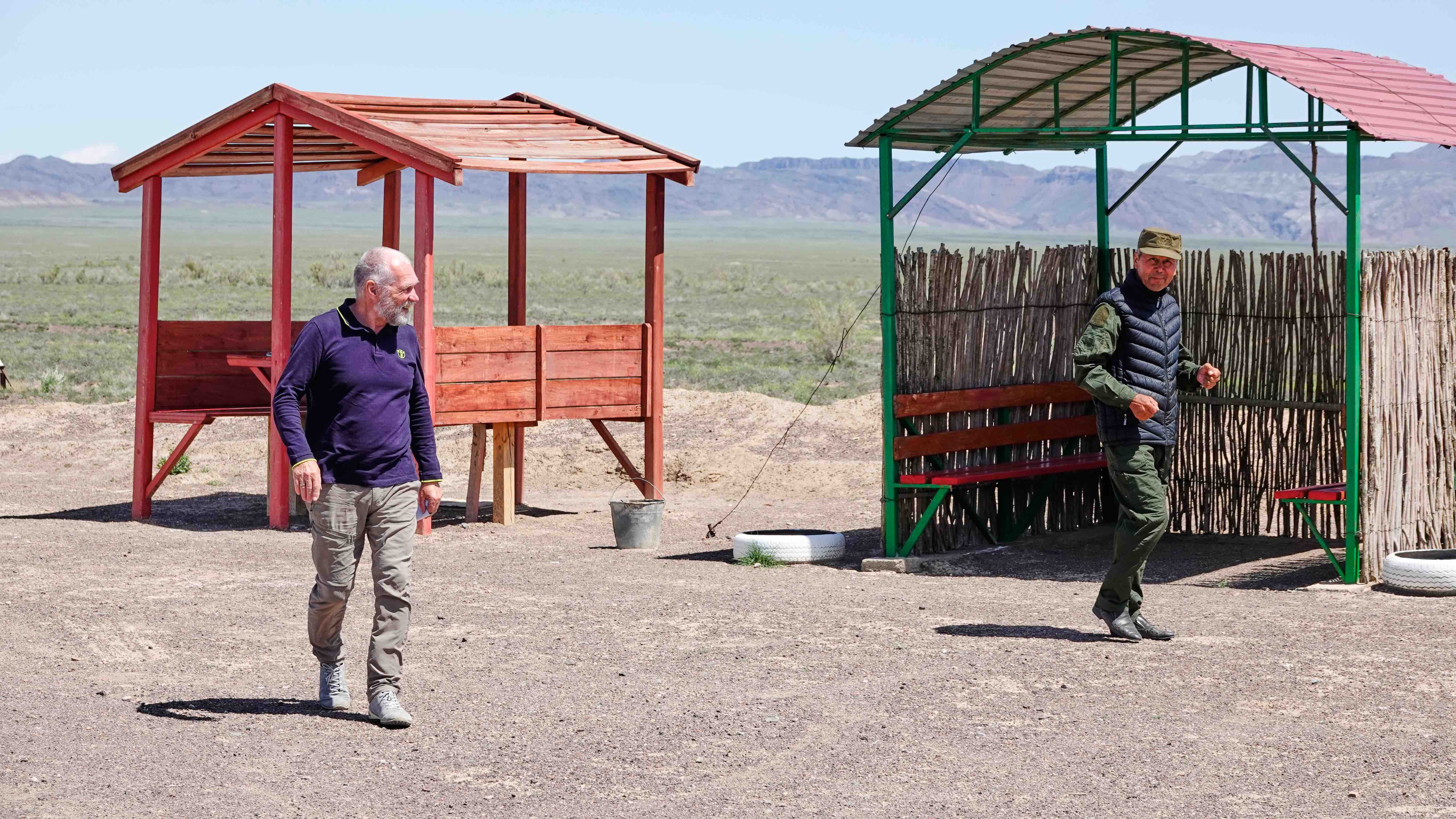 Unser nächstes Ziel ist der Altyn Emel Nationalpark. Im Nationalparkcenter in Basshi holen wir uns die Erlaubnis zum Aufenthalt für 2 Tage und Nächte. Übernachten darf man nur an 4 dafür vorgesehenen Stationen und ab 19:00 h muss das Auto Pause machen.