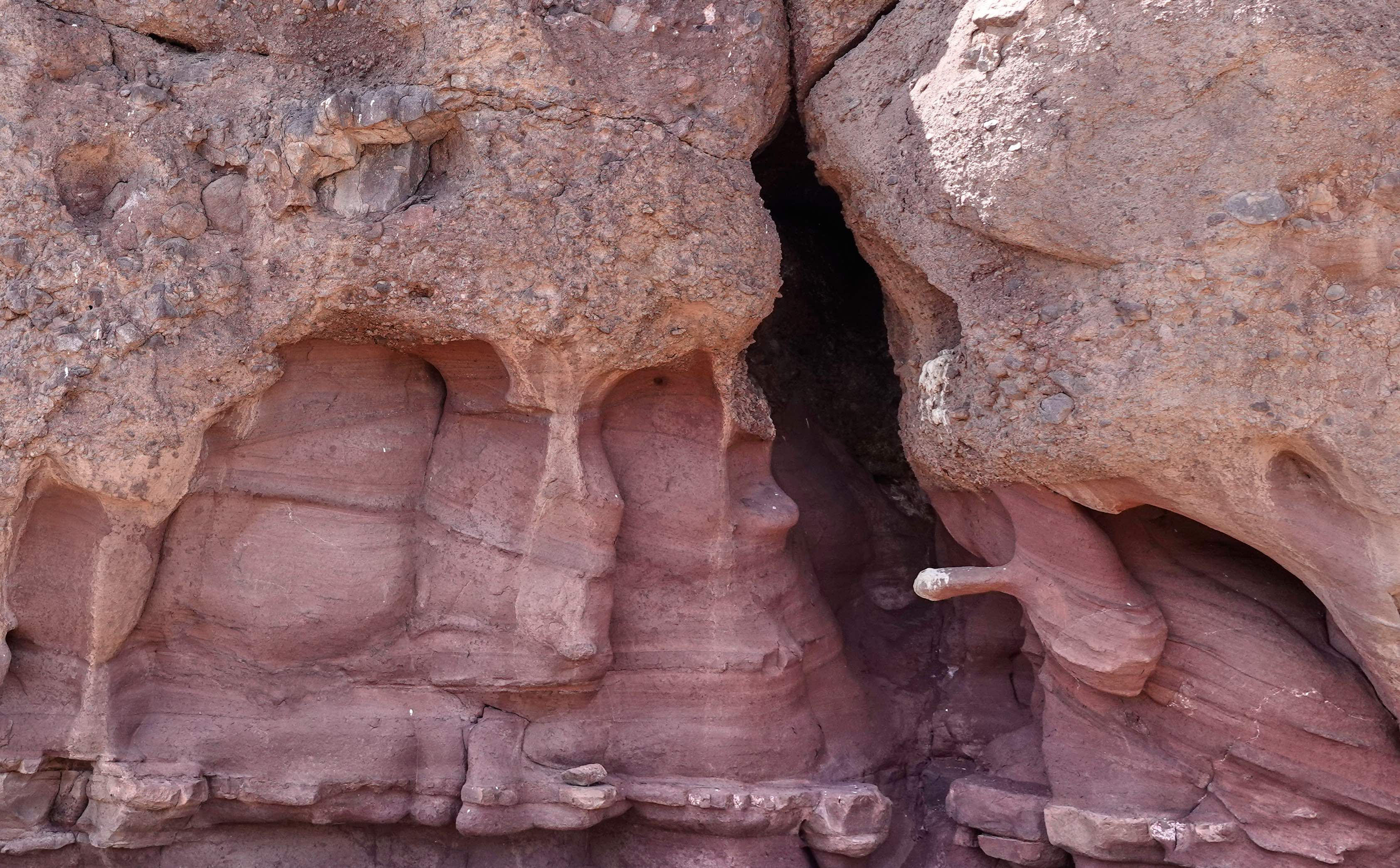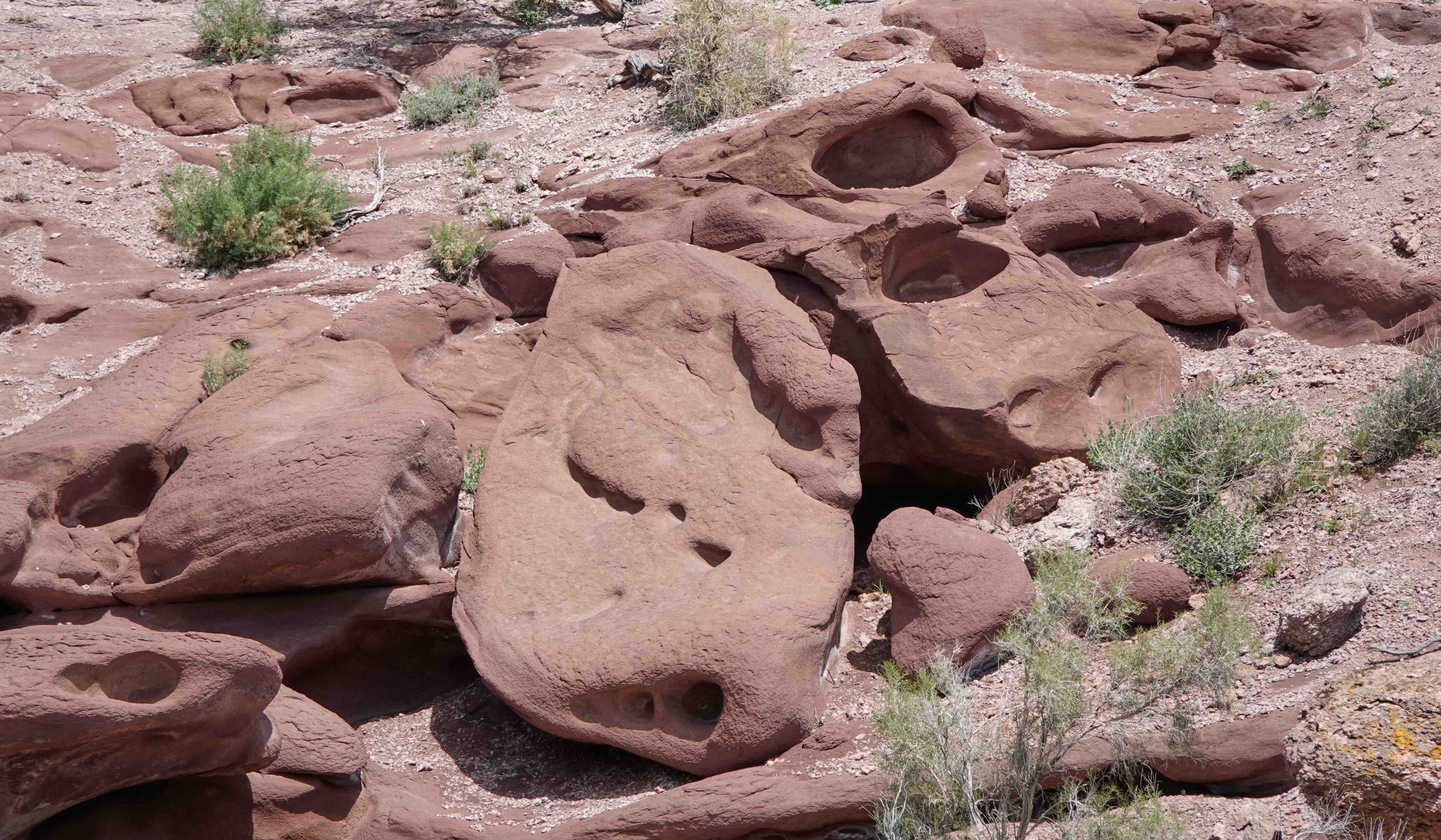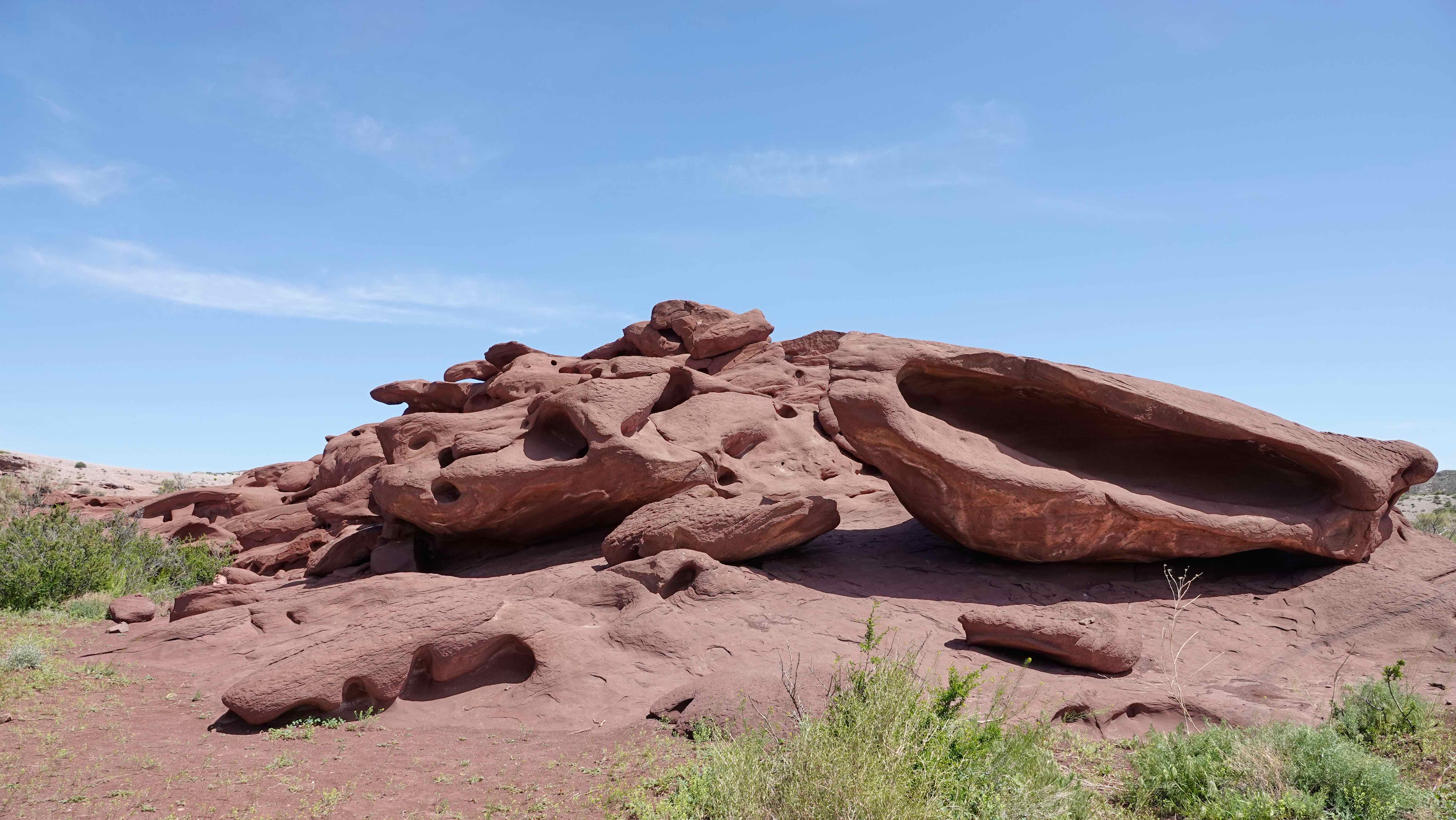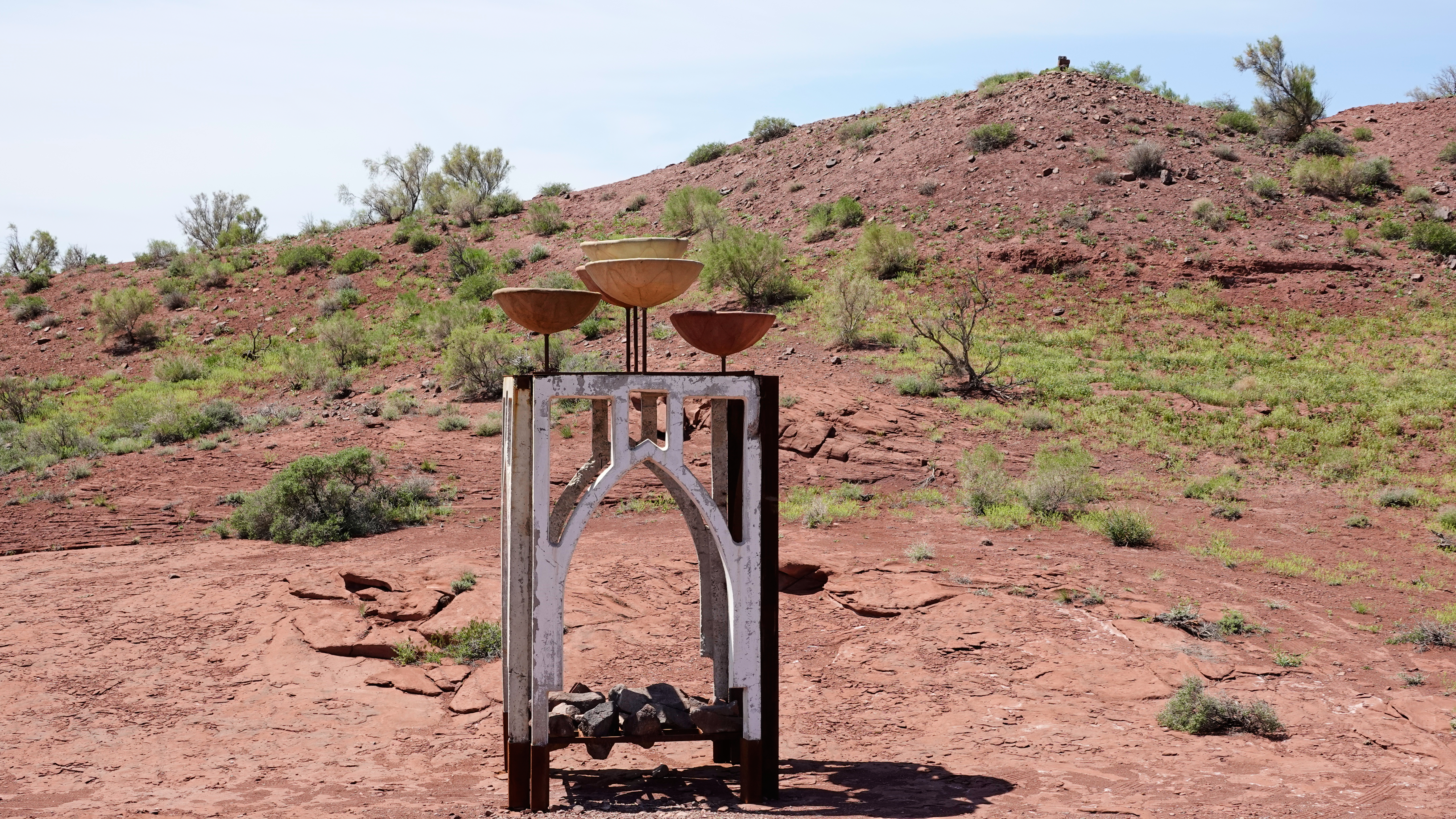 Die Katutau Berge bestehen hauptsächlich aus Lavagestein, das im Laufe der Zeit erodiert und ausgewaschen wurde. Besonders das zu bizarren Gebilden geformte rote Gestein ist bemerkenswert, der Phantasie sind hier keine Grenzen gesetzt. Ein seltsames Gebilde steht in der Gegend herum und gibt Rätsel auf…