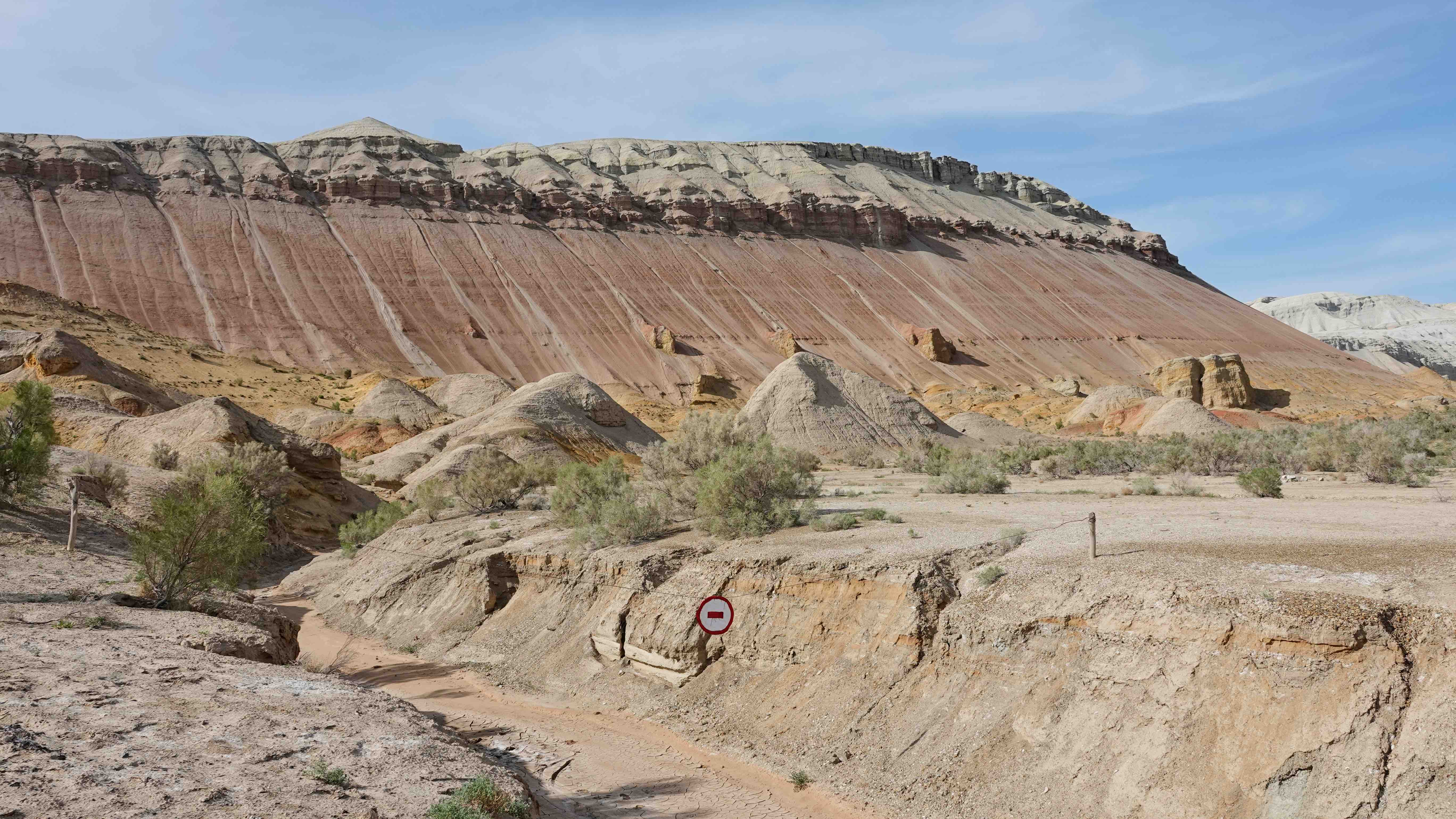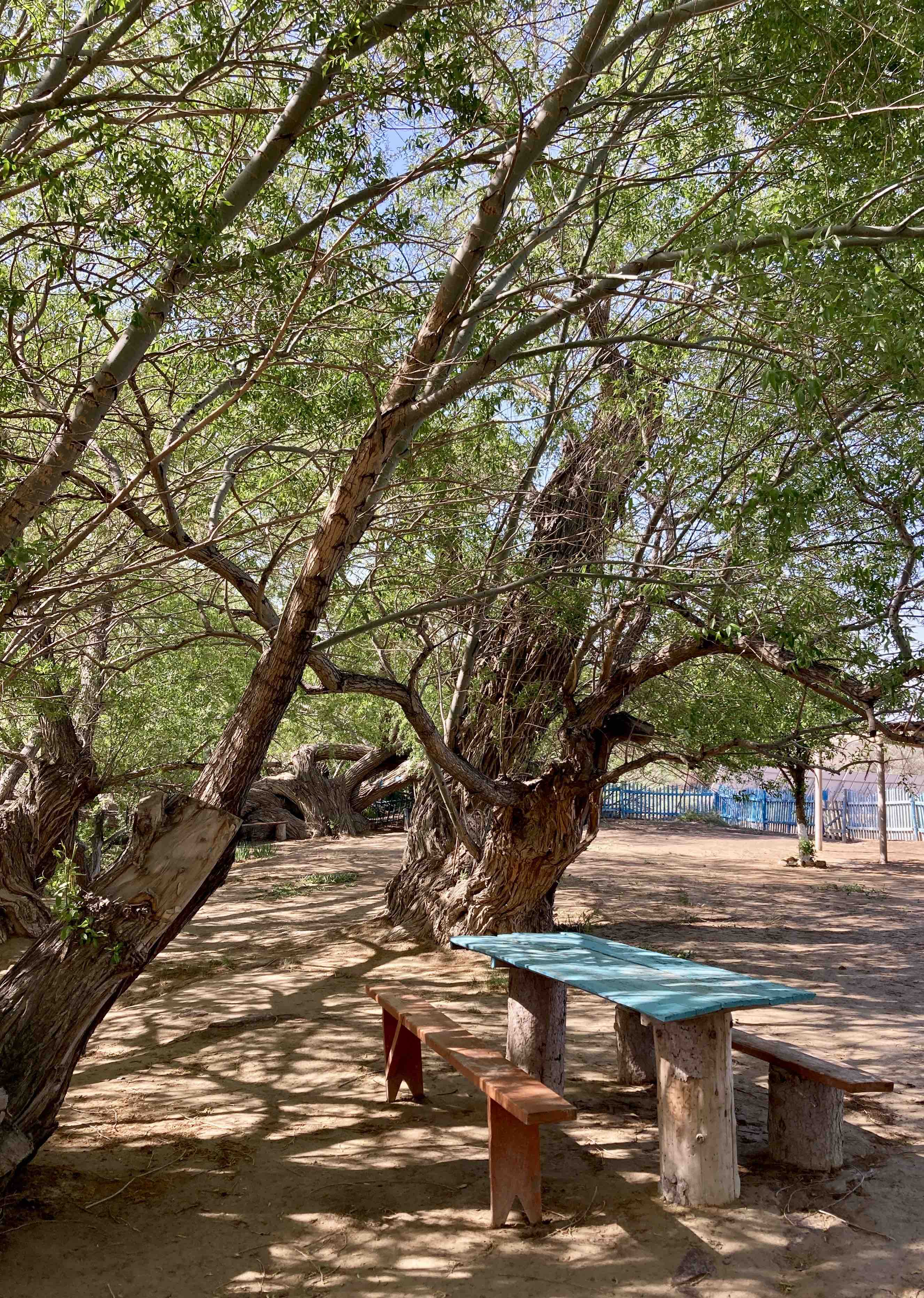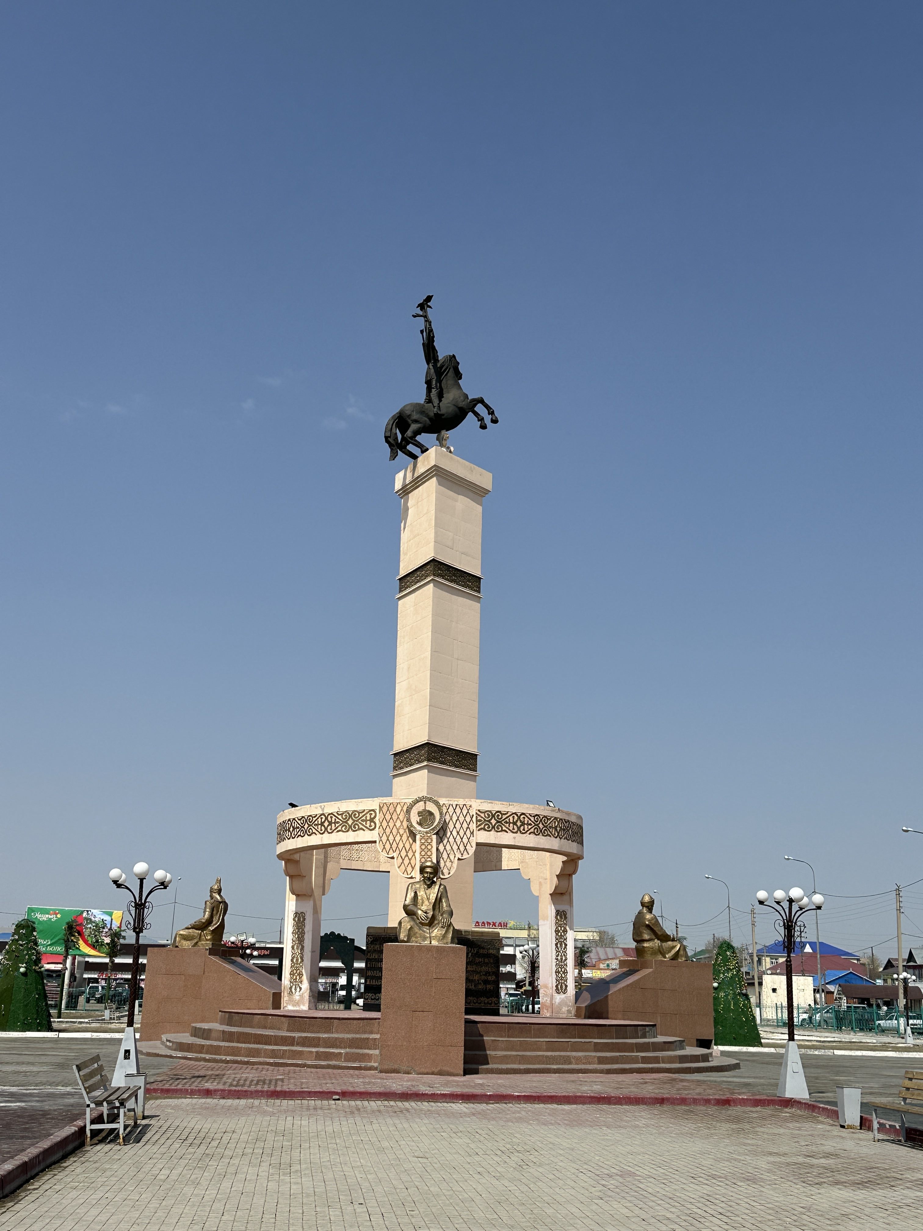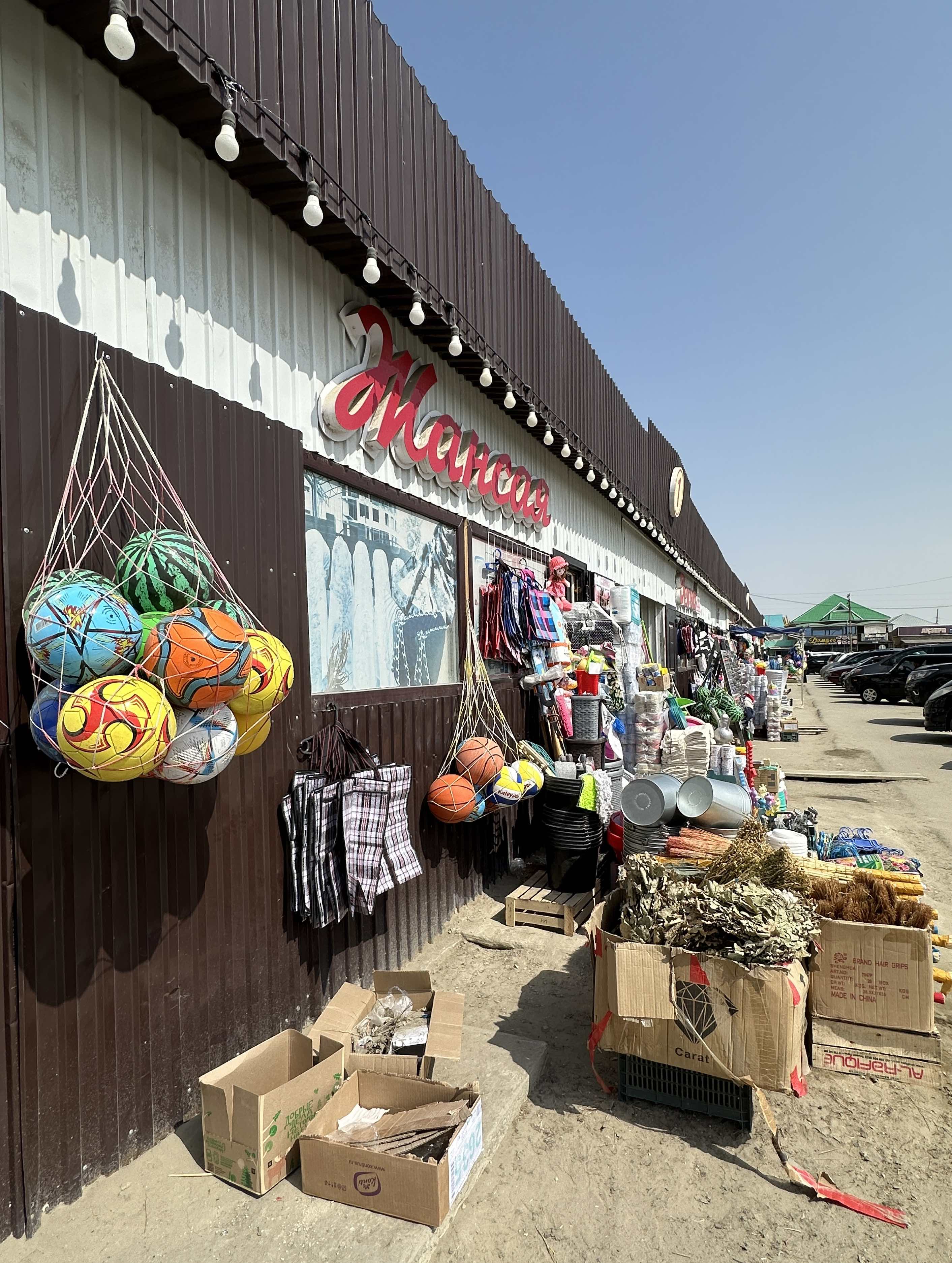 Als die E38 nach Süden abbiegt, wird die Straße deutlich besser, wir lassen das Hochwassergebiet hinter uns und erreichen zügig Aral. Wir bummeln ein wenig durch die Stadt und frischen unsere Vorräte auf. Aral war früher eine Hafenstadt und lag am Ufer des bis dahin 4.größten Binnensees der Welt. Zu sowjetischen Zeiten wurde das Wasser der beiden Flüsse, die den Aralsee speisten, hauptsächlich für die Bewässerung der Baumwollfelder und der Versorgung wachsender Großstädte verbraucht. Bis auf einen kleinen Teil im Norden, der durch einen Damm geschützt wurde, ist von dem See nichts mehr zu sehen. Sogar die Schiffswracks, die jahrzehntelang auf dem ausgetrockneten Grund lagen, sind verschwunden. Sie wurden als Schrott an die Chinesen verkauft.
