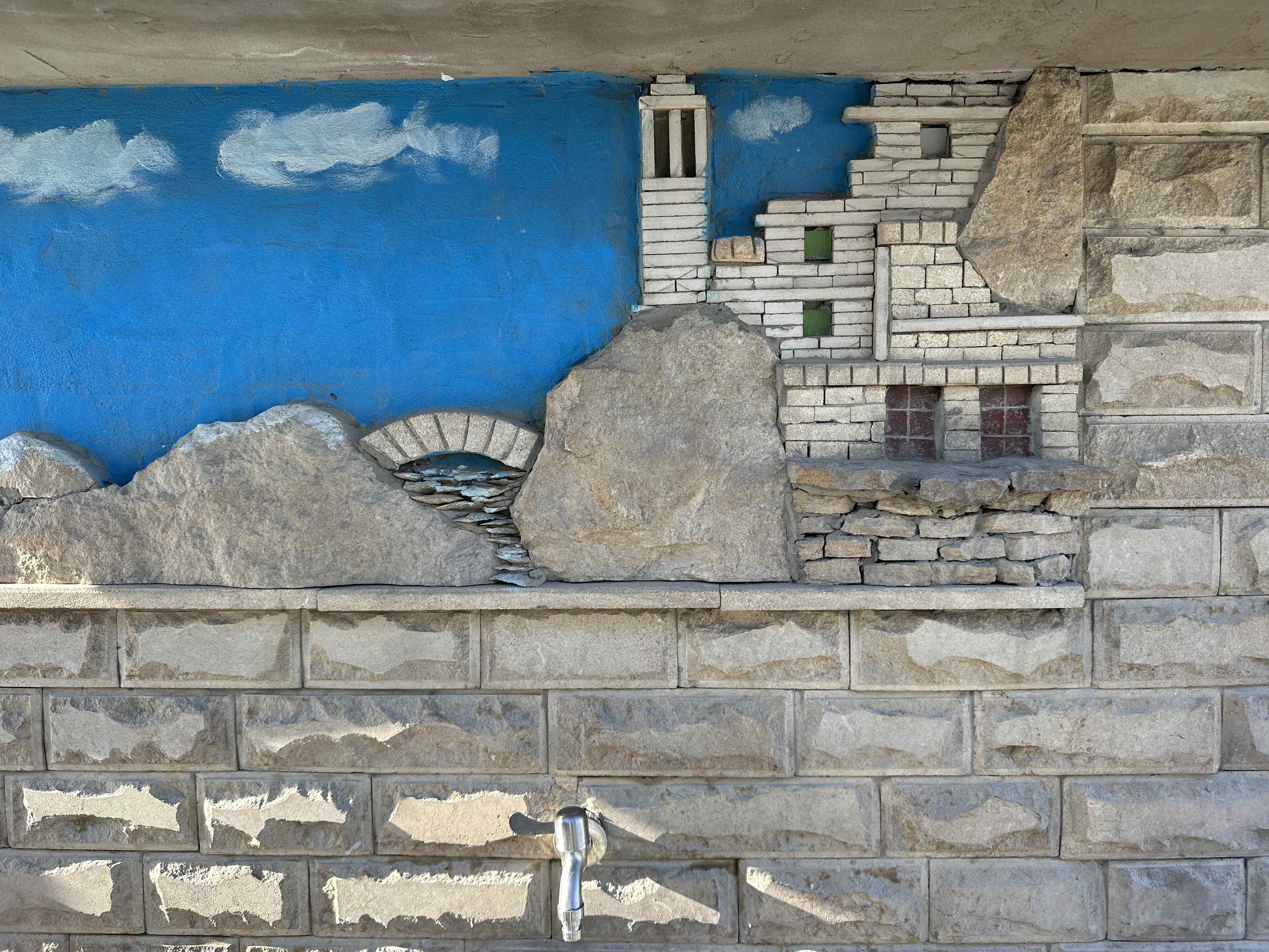 Unser Wassertank ist fast leer und nirgends eine Zapfstelle in Sicht, zur Not müssen eben Trinkwasserkanister umgefüllt werden. Auf einem hübschen Parkplatz werden wir erinnert, dass die Autobahn einst Teil der alten Seidenstraße war.