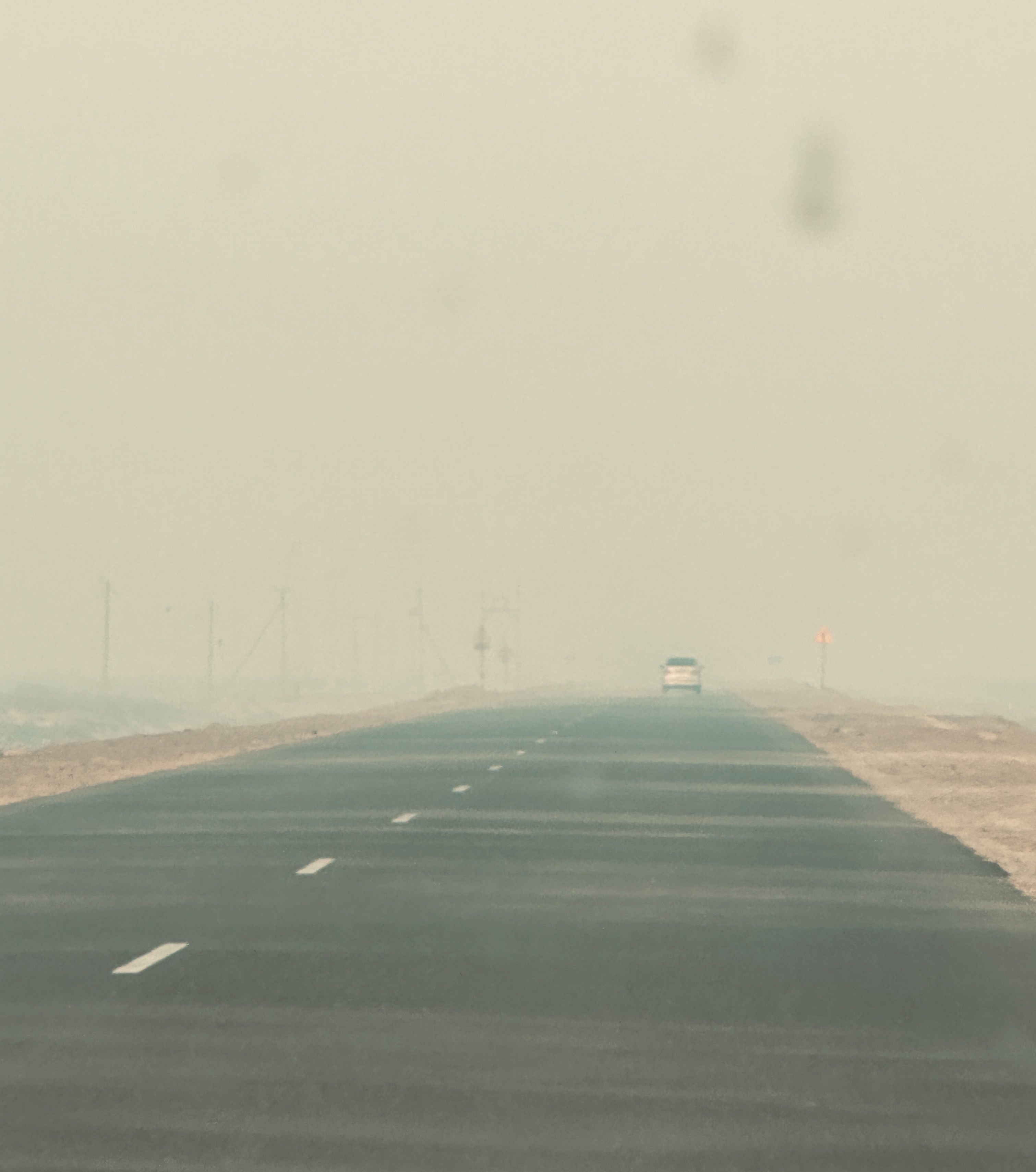 Auf der Weiterfahrt haben wir mit mächtig viel Wind zu kämpfen, teilweise kann man die Straße kaum erkennen.