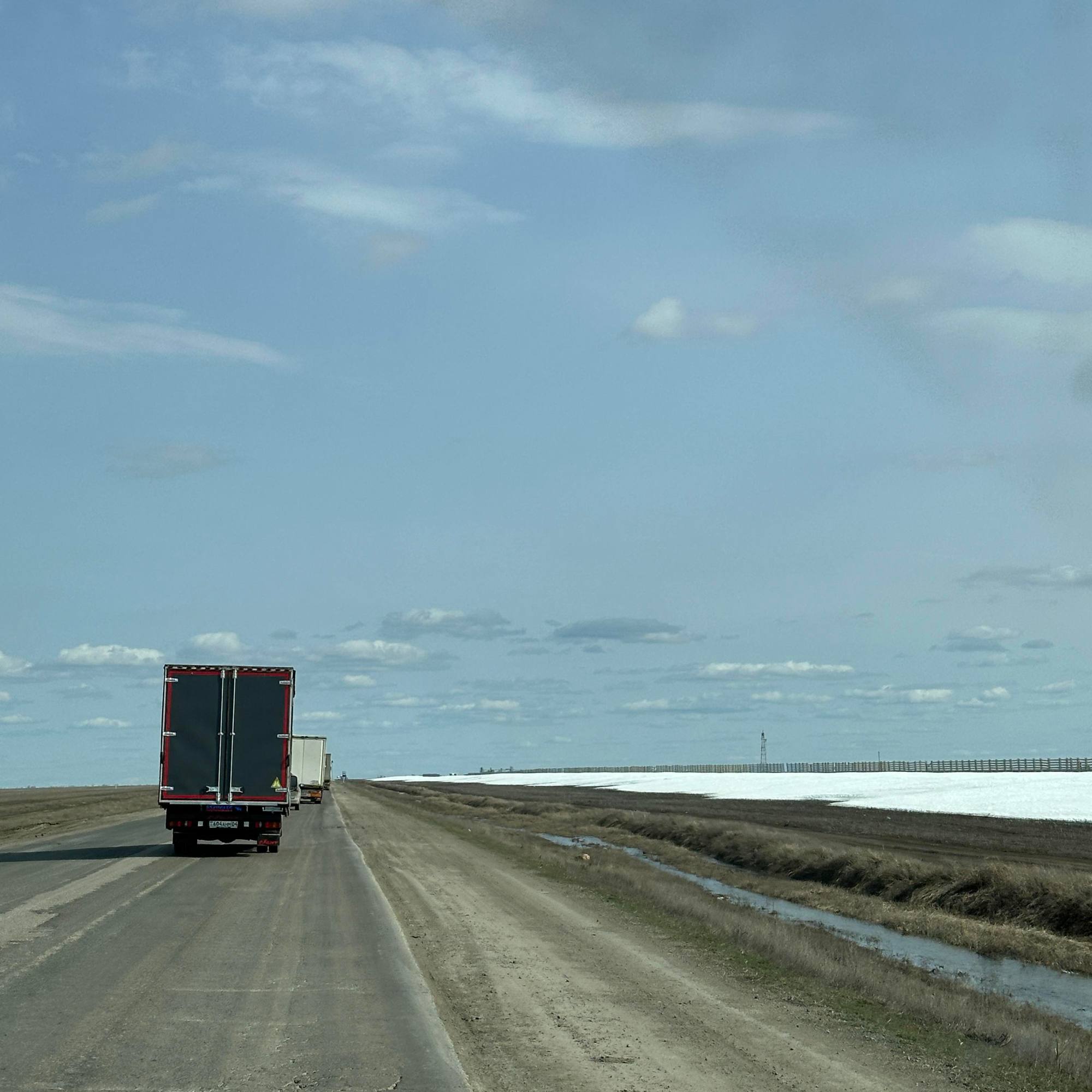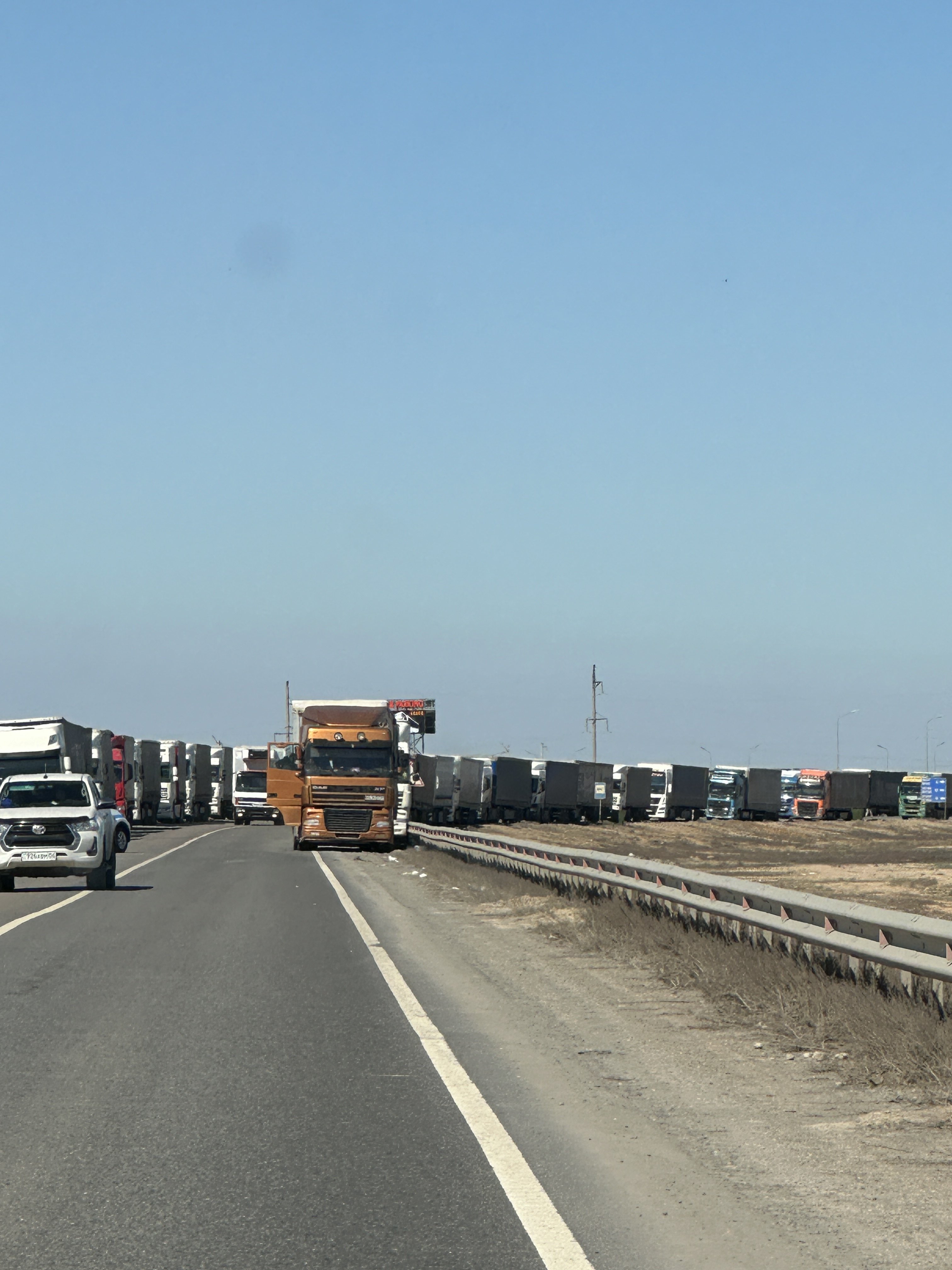 Wir fahren weiter durch Dagestan, Kalmückien und in Astrachan, einer sehr modernen Großstadt überqueren wir die Wolga. Die Straße von Astrachan bis Atyrau ist übrigens auch ein Teilstück der alten Seidenstraße.