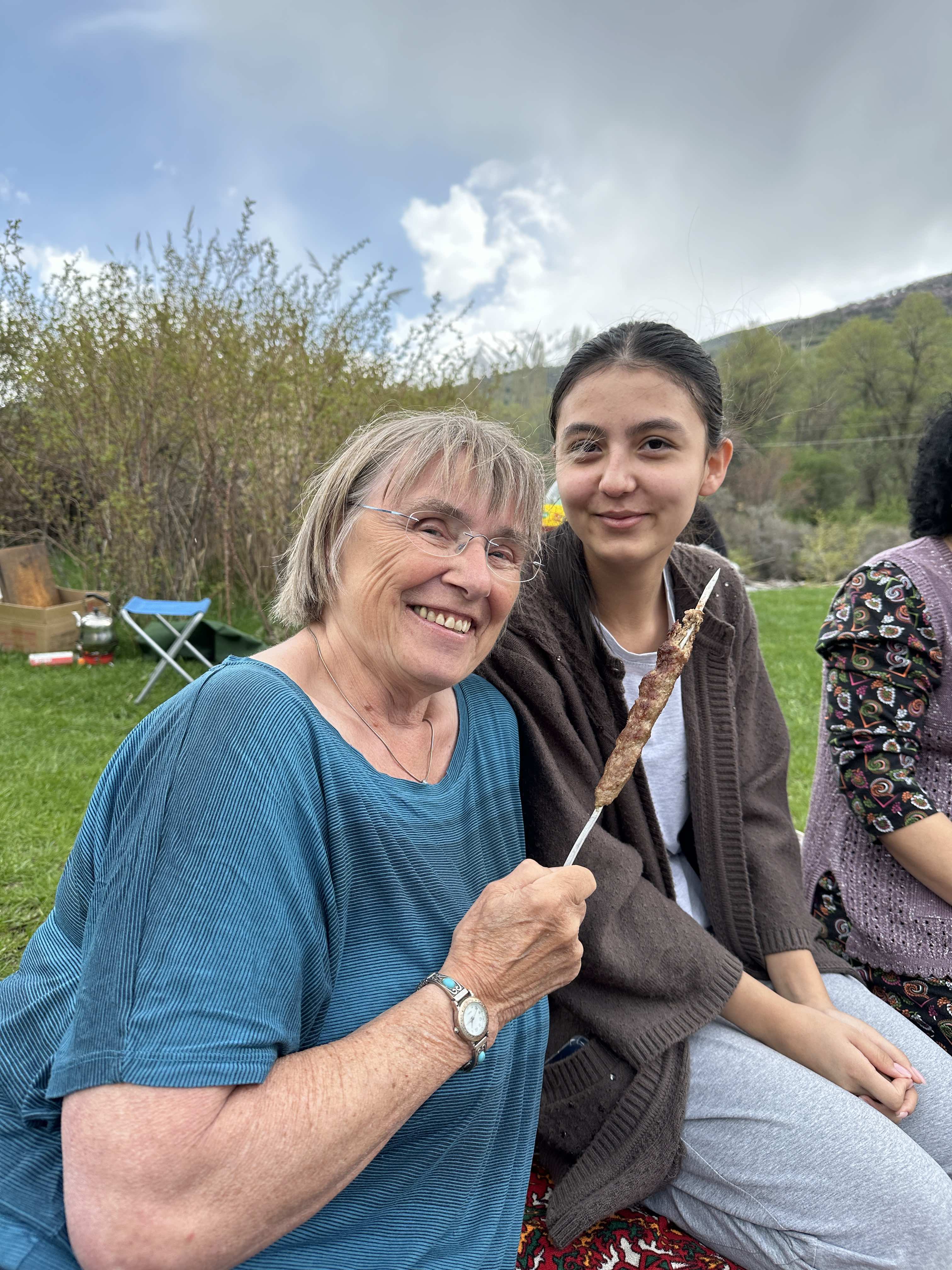 Ich freue mich über ein Schaschlik, dass Walter kein Fleisch isst, wird etwas belustigt zur Kenntnis genommen. Ein sehr schöner Nachmittag mit supernetten Menschen!