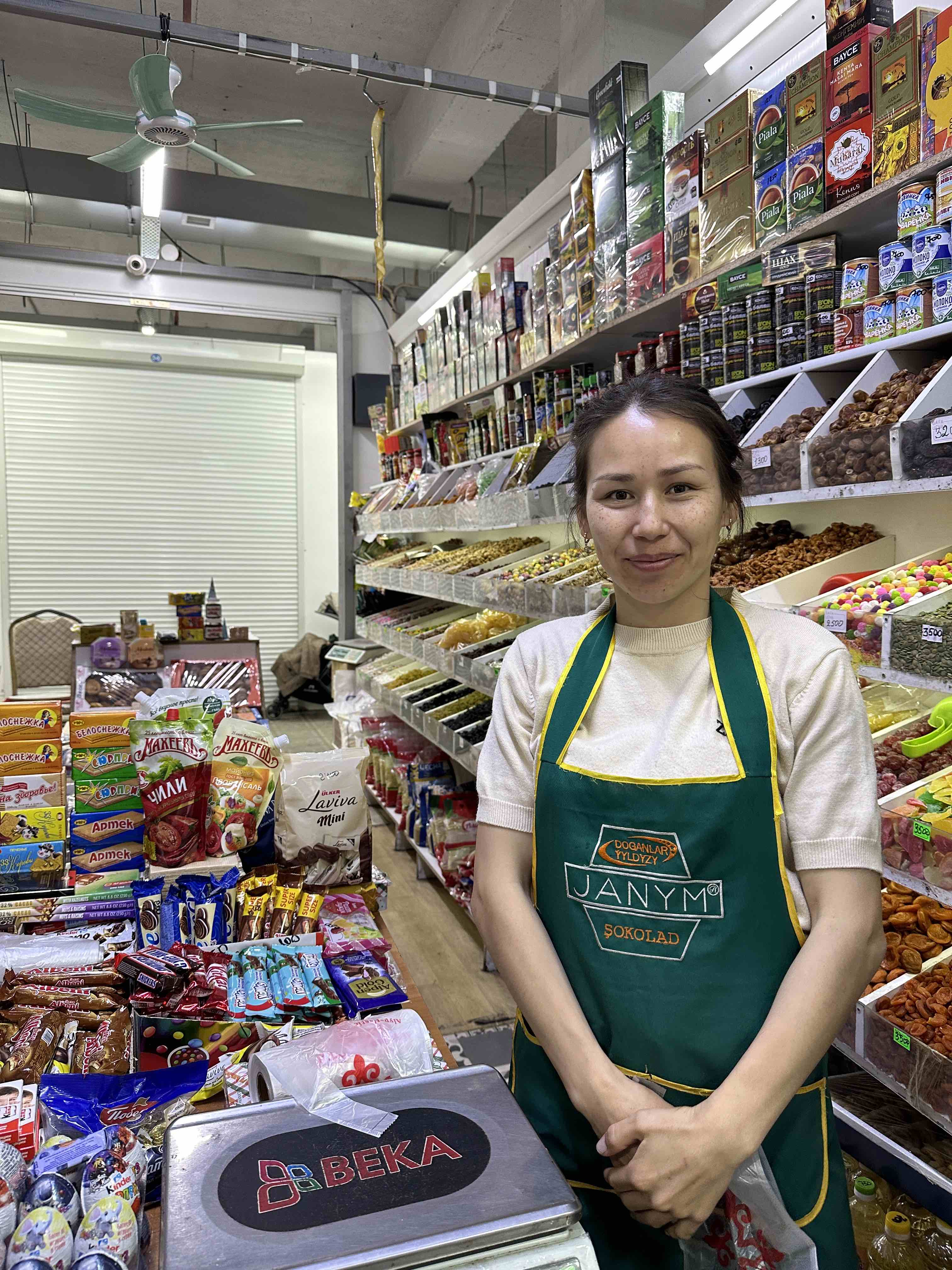 Auf dem Parkplatz gibt es eine nette Begegnung mit einer Kasachin, die in Deutschland arbeitet und hier auf Familienbesuch ist.
