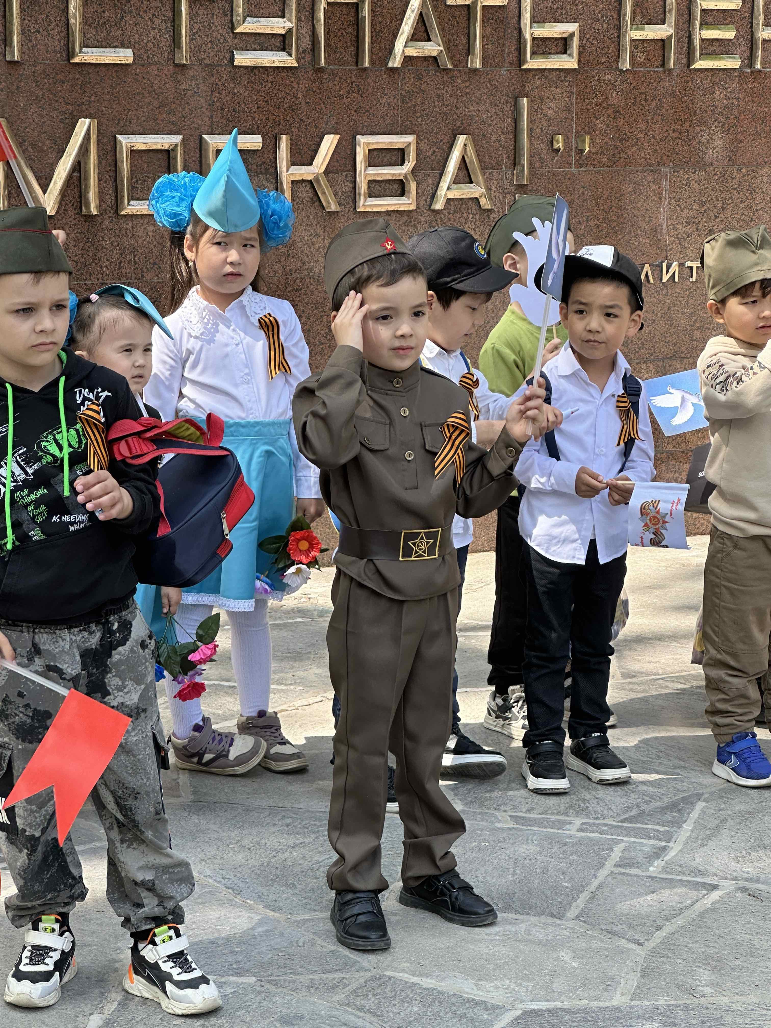 An der Gedenkstätte hat sich zufälligerweise eine Gruppe mit Kindern eingefunden, die Lieder und Gedichte vortragen. Wir verstehen natürlich nichts, die Friedenstauben schwenkenden Kinder stehen erst mal im Gegensatz zu den uniformierten Jungen. Aber wer weiß, welche Geschichte da erzählt wird…