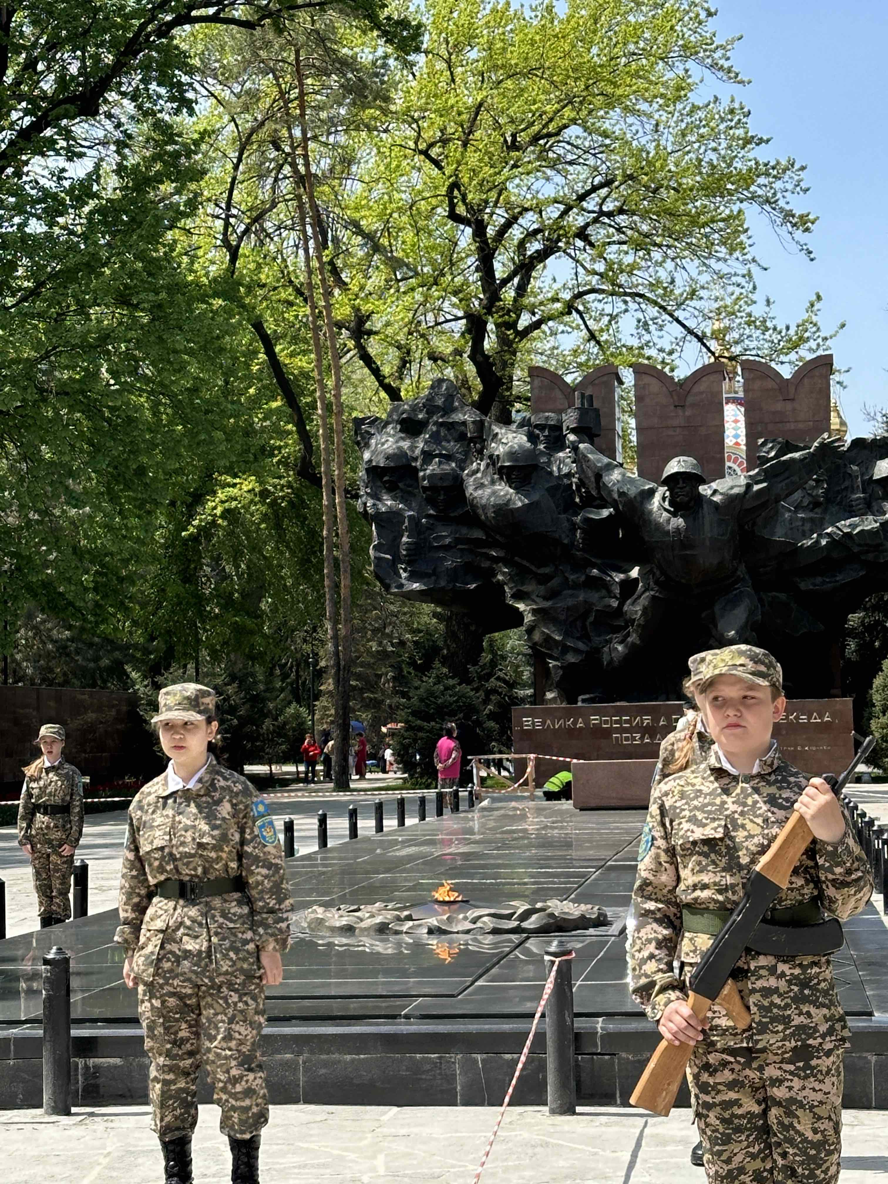 Anschließend bummeln wir durch den Panfilow-Park, in dem sich unter anderem eine Gedenkstätte für die gefallenen Soldaten des 2. Weltkrieges befindet.