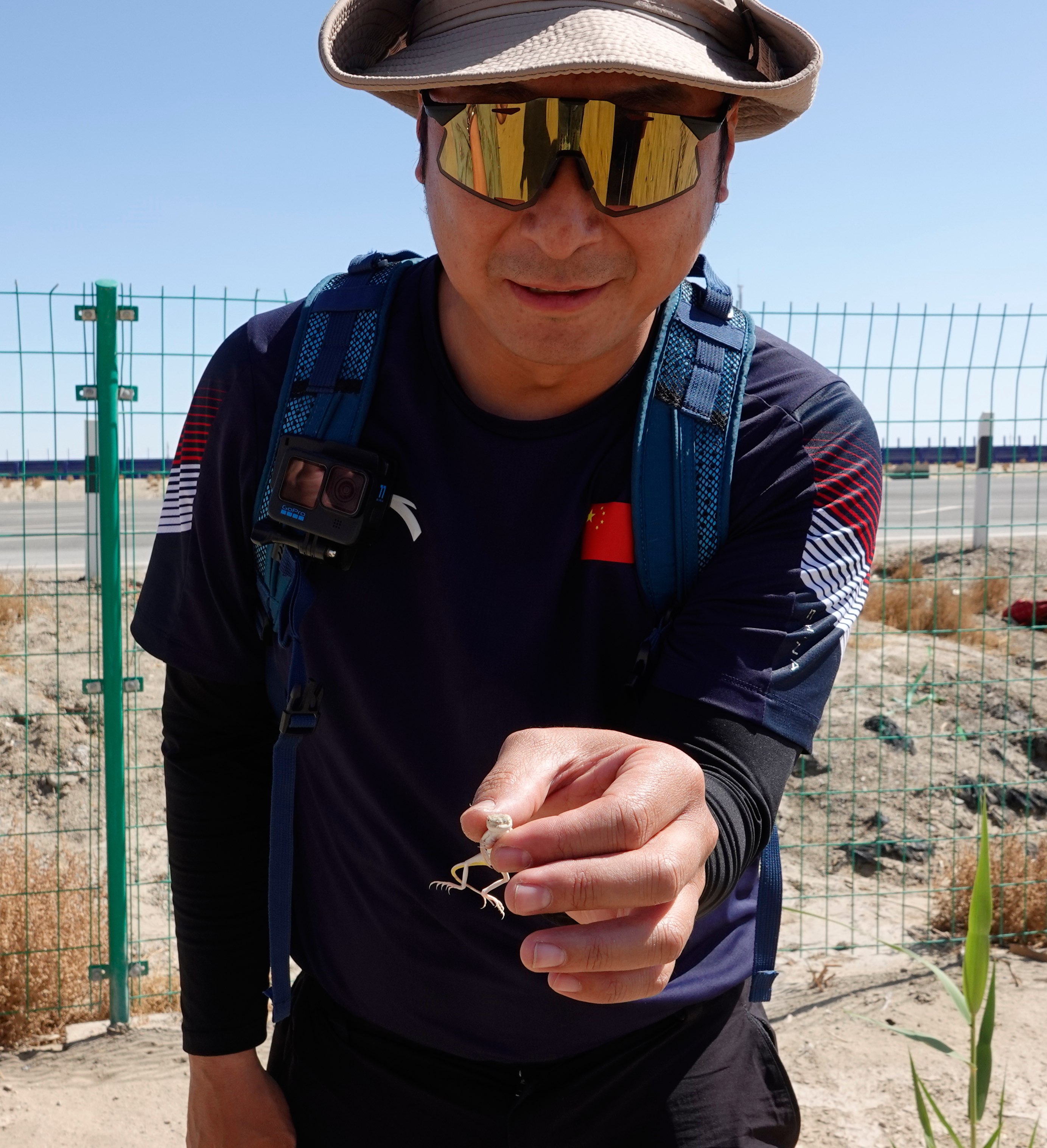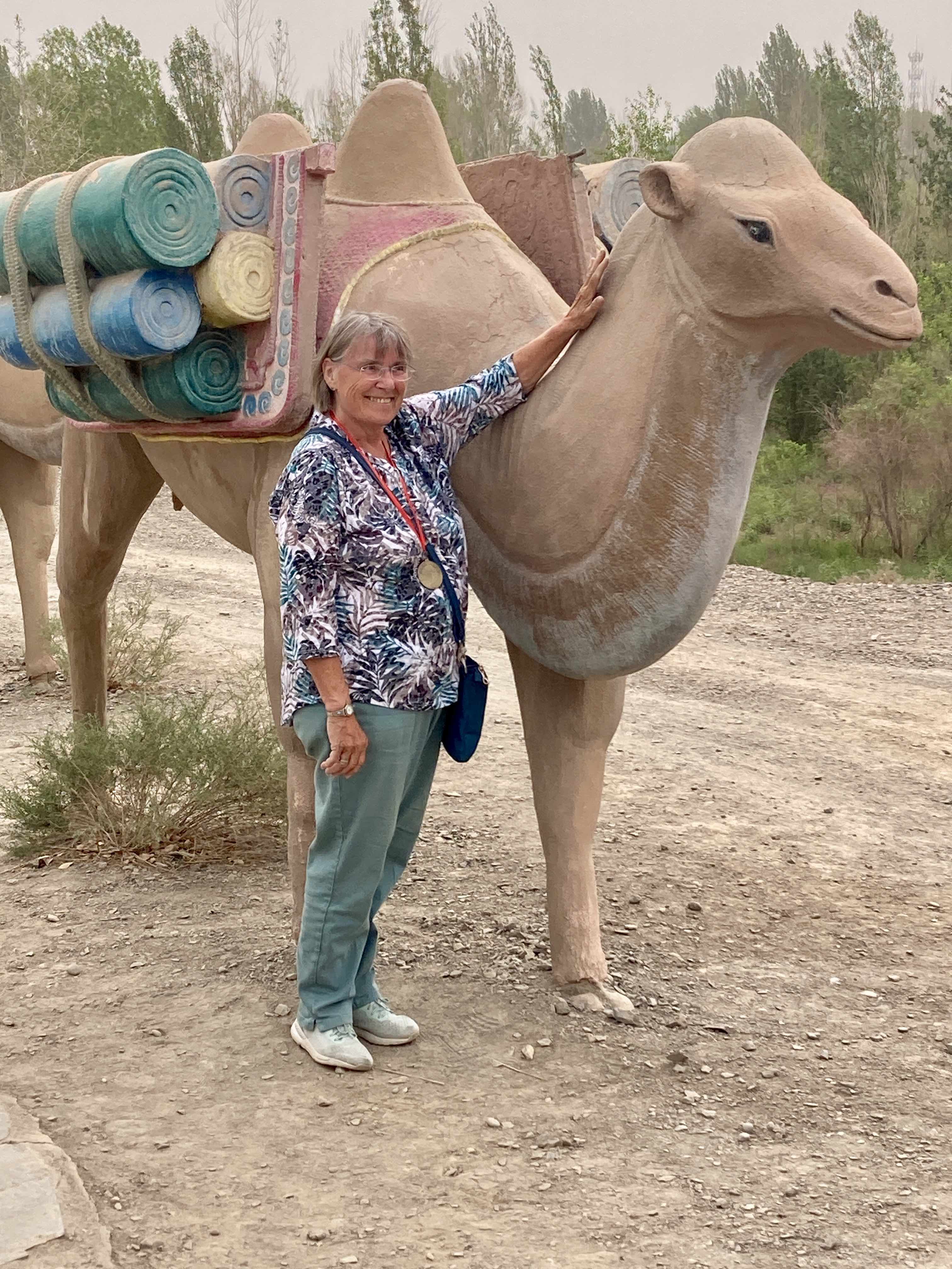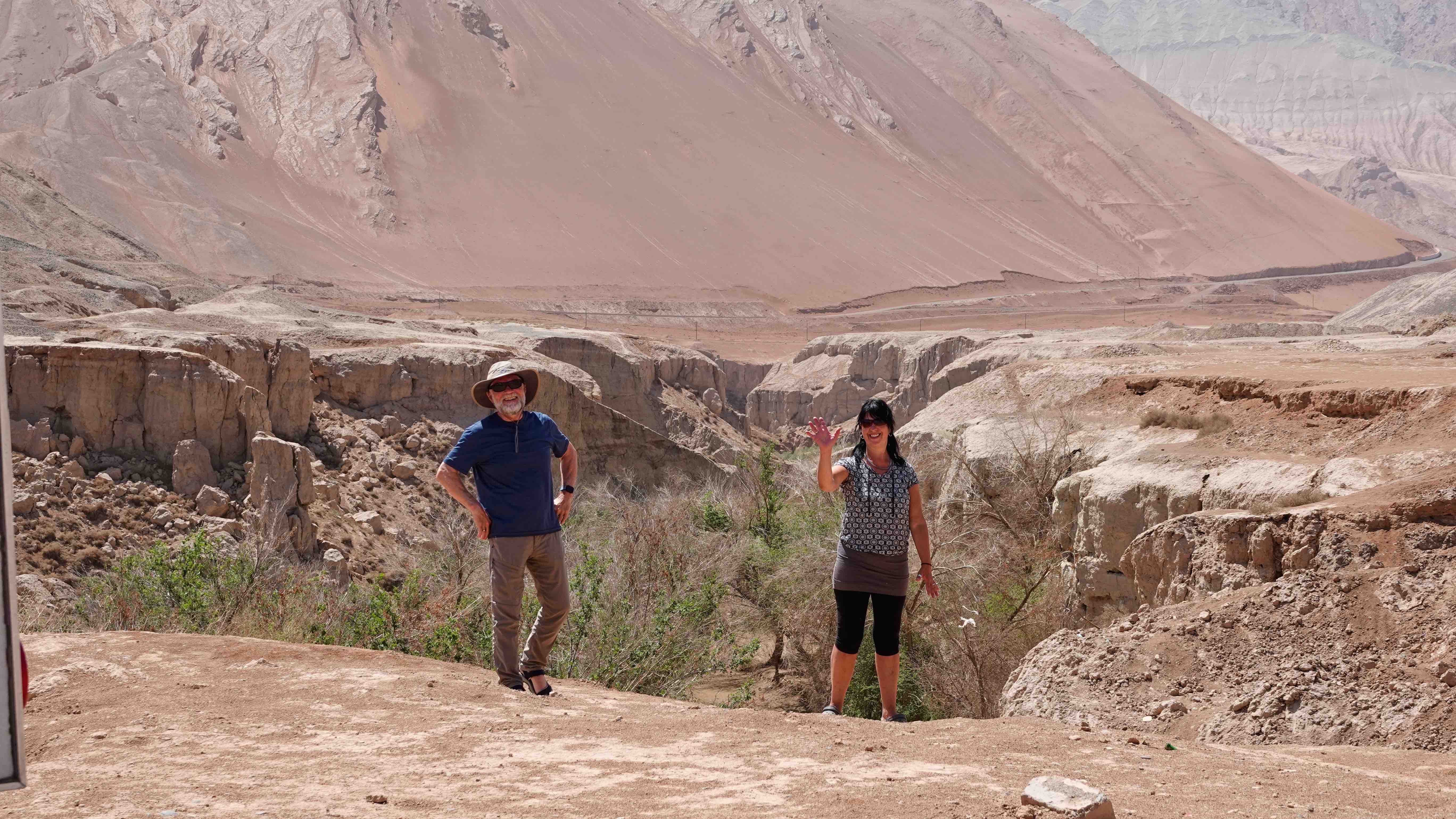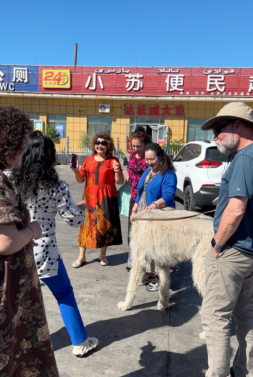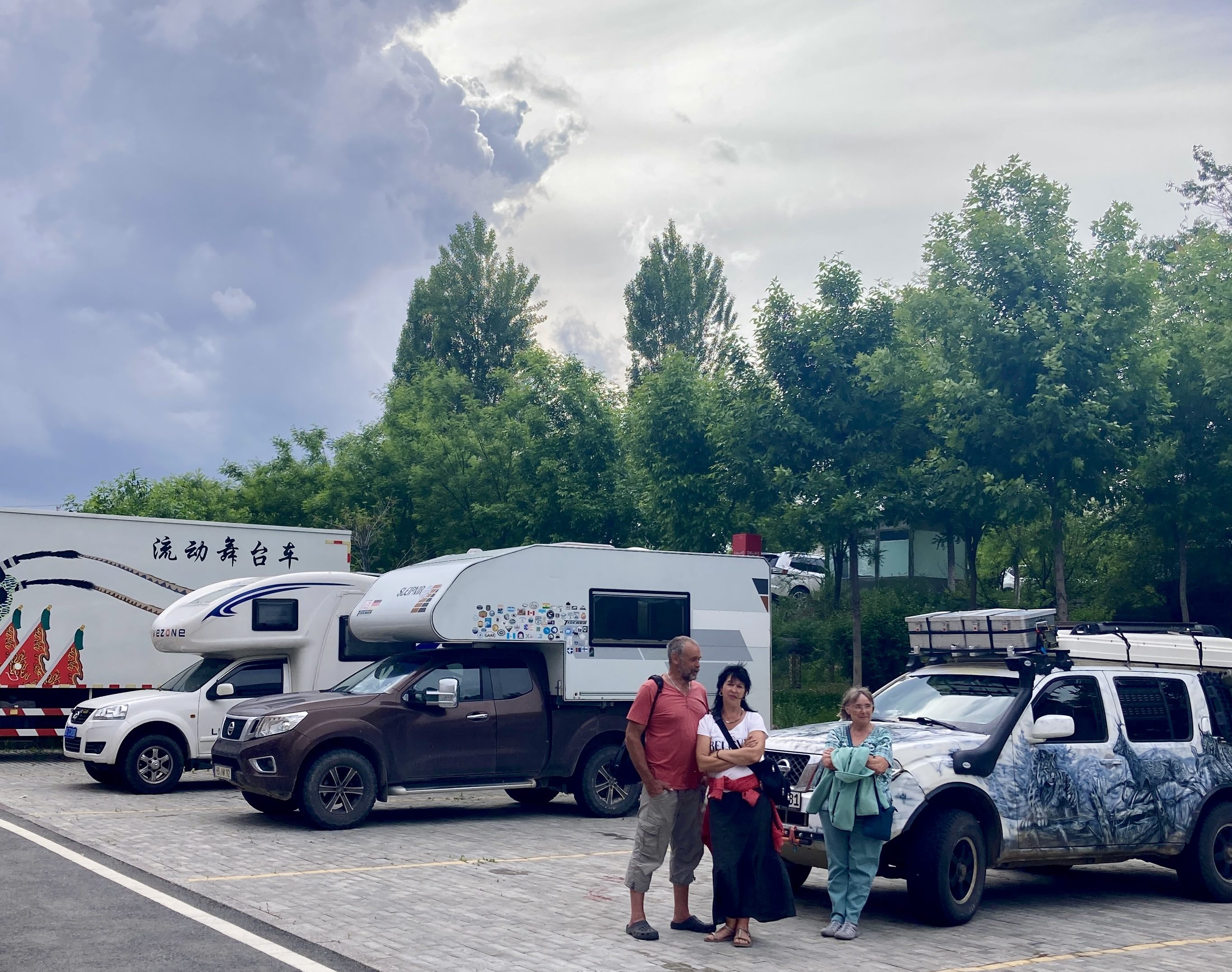 Weiter geht es am nächsten Morgen Richtung Osten entlang der nördlichen Seite des Tianshan Gebirges. Wann immer wir eine Rast einlegen, sind wir von Chines*innen umringt. Struppi ist die Sensation, viele wollen ihn streicheln und ein Foto machen. Aber auch wir mit unseren Autos erregen die Aufmerksamkeit und werden ebenso gebeten, für Fotos zu posieren. Wir müssen uns erst daran gewöhnen, dass es für Chines*innen völlig normal ist, uns unbefangen und neugierig „auf die Pelle zu rücken“. Aber andererseits kommt man auf diese weise schnell unkompliziert mit ihnen ins Gespräch. Meistens mit Händen und Füßen, englisch sprechen nur wenige und wir kein chinesisch. Manchmal hilft auch Google aus.