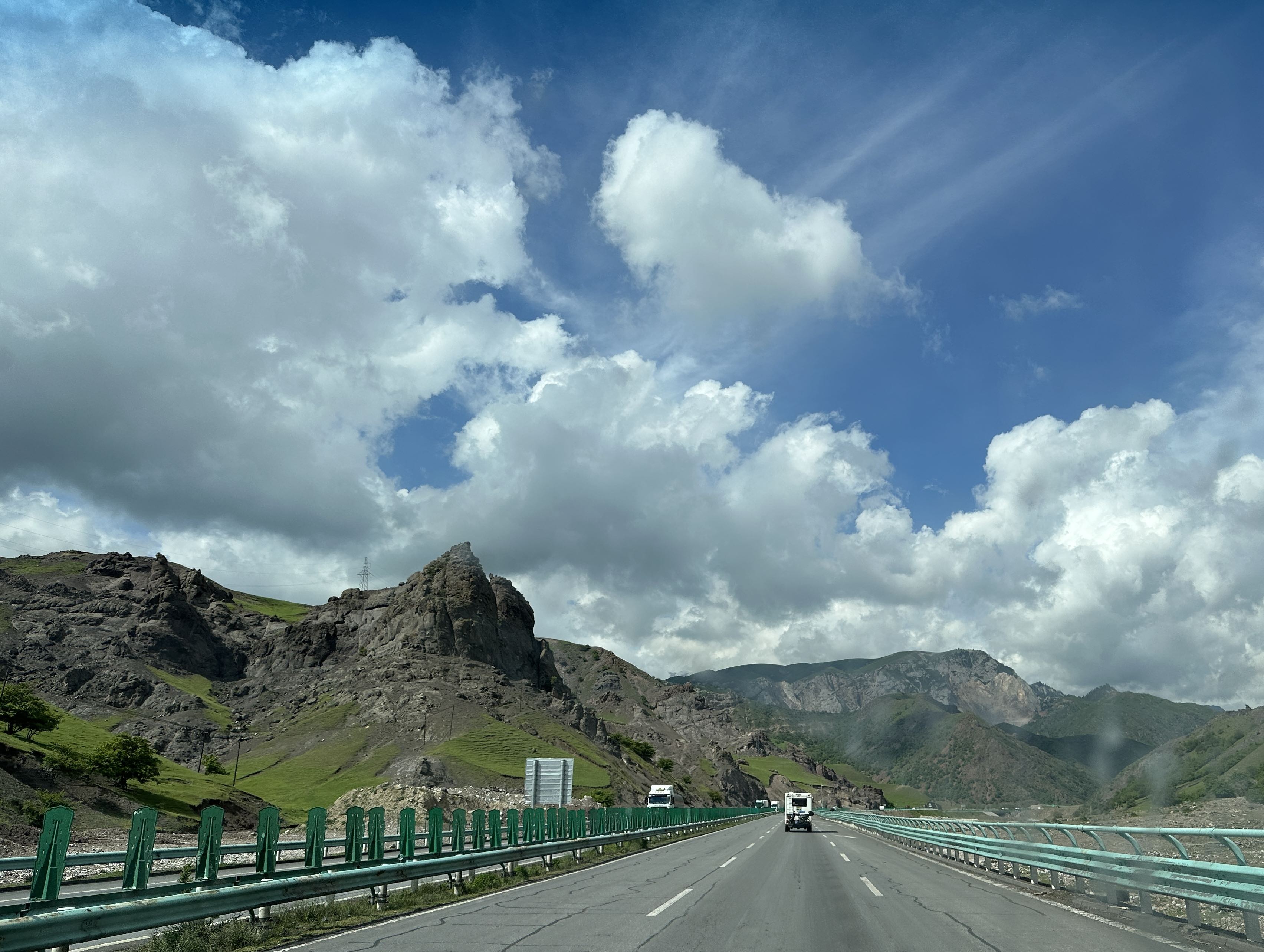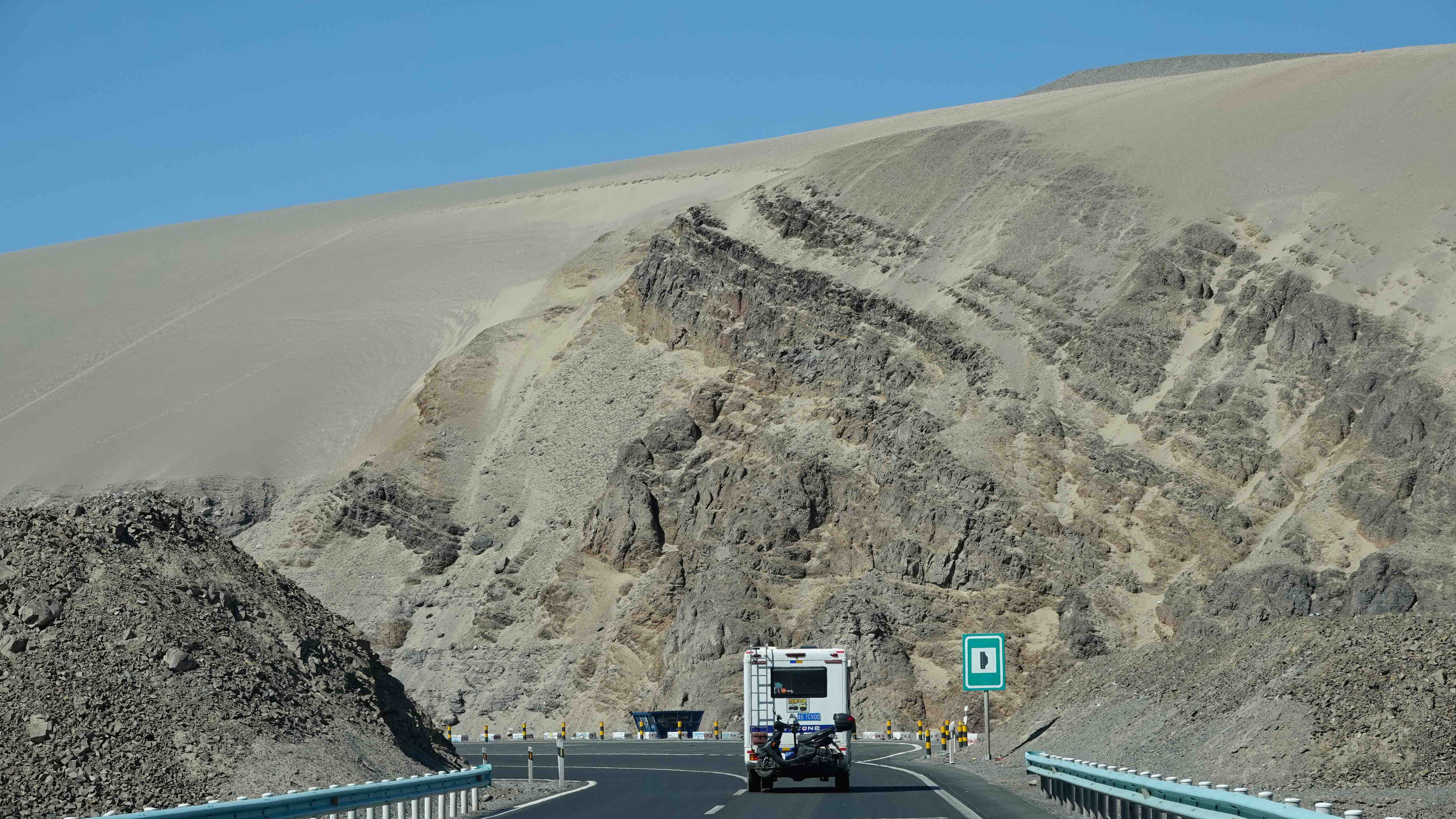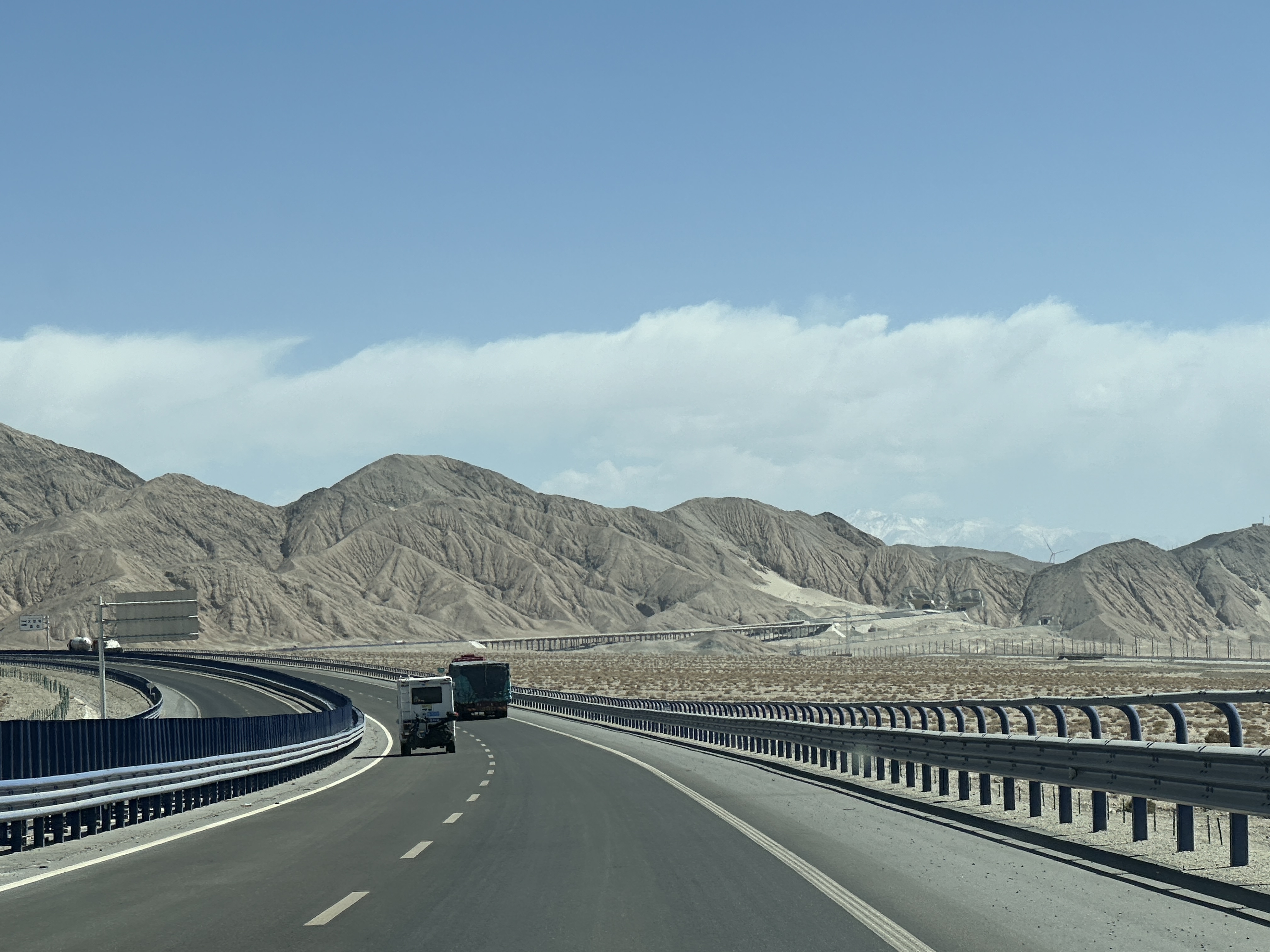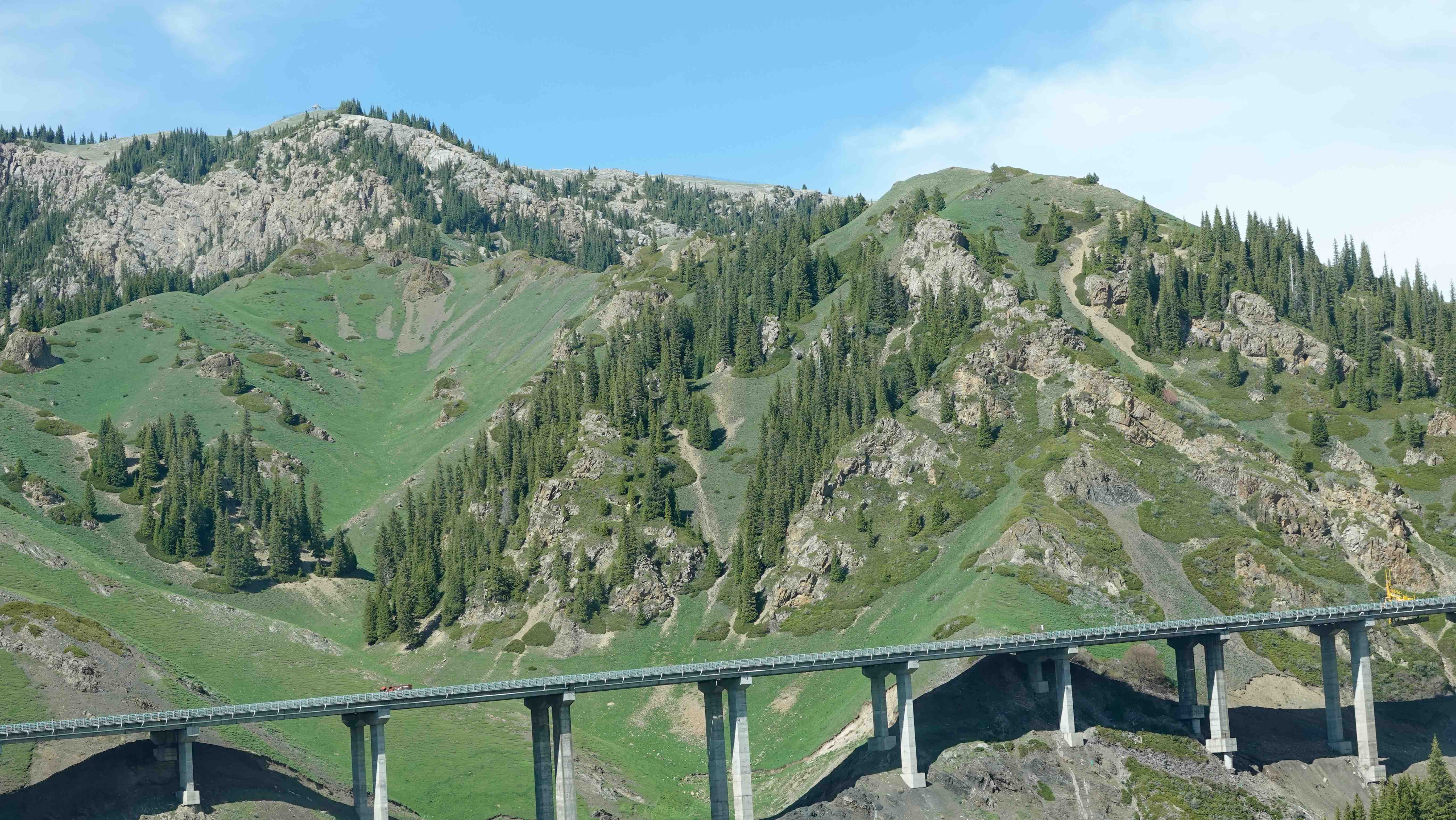 Wir starten in der größten Provinz Chinas, in der autonomen Region Xinjiang und fahren noch ein Stück durch eine tolle Berglandschaft mit unglaublichen Brückenkonstruktionen über einen Pass auf 3000 m Höhe.