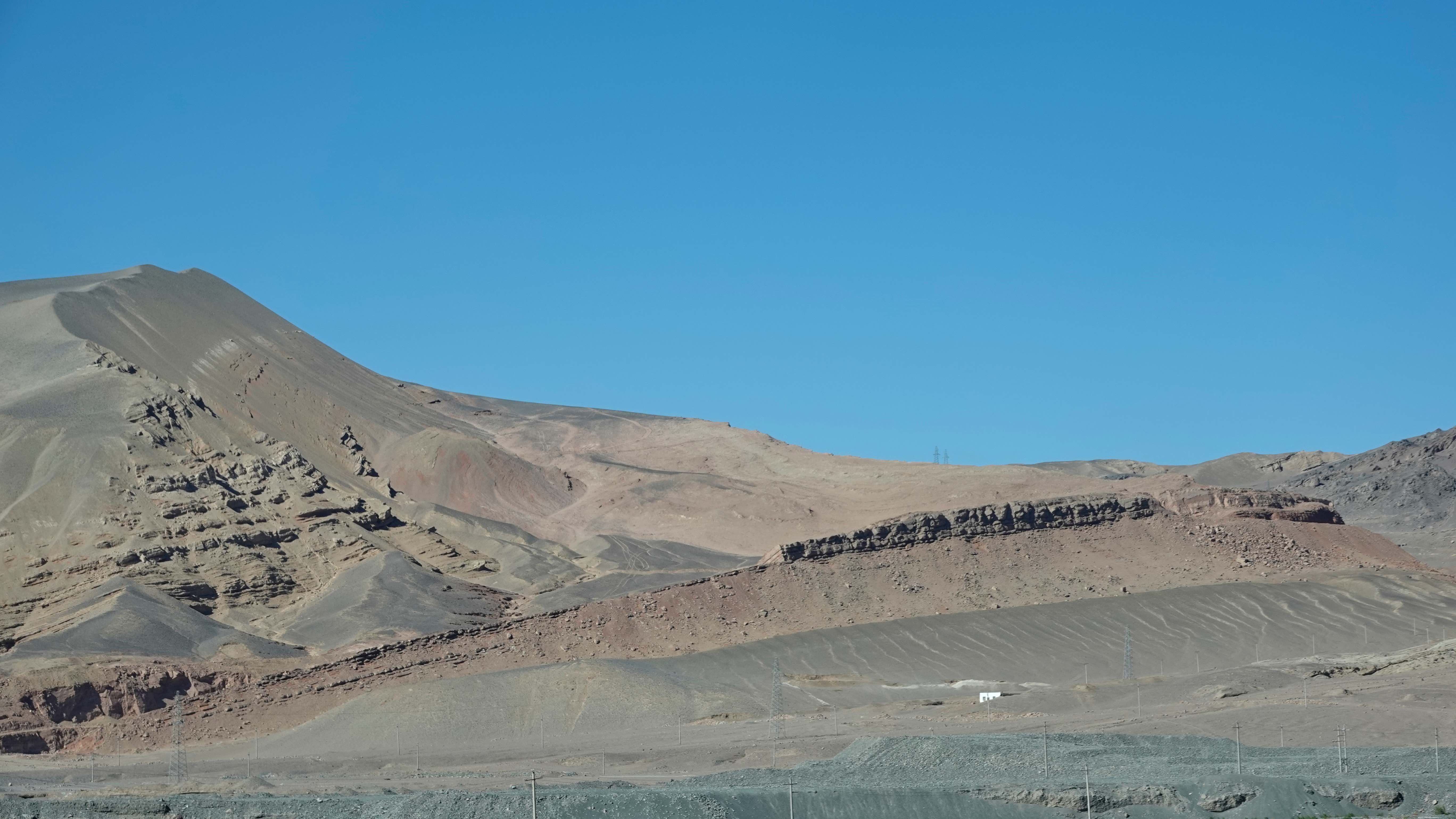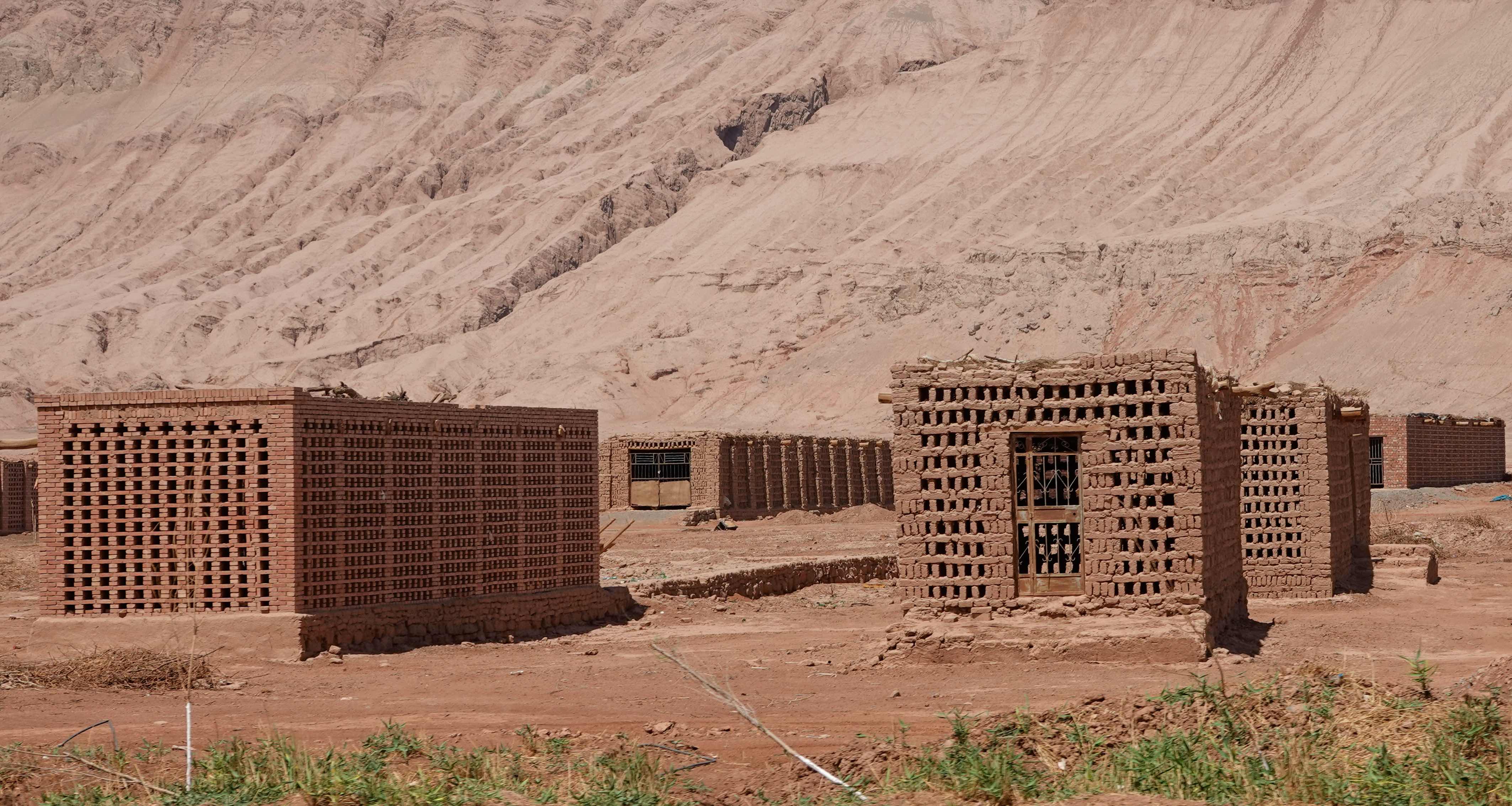 Auf unserem Weg sehen wir in der Ferne ein riesiges eingezäuntes Gebiet. Unsere Reiseleiter*innen wissen nicht, was sich dahinter verbirgt, aber wir vermuten, dass es die Teststrecke von VW ist, die hier bei Turpan betrieben wird. Auf Satellitenaufnahmen ist es auch deutlich zu erkennen.