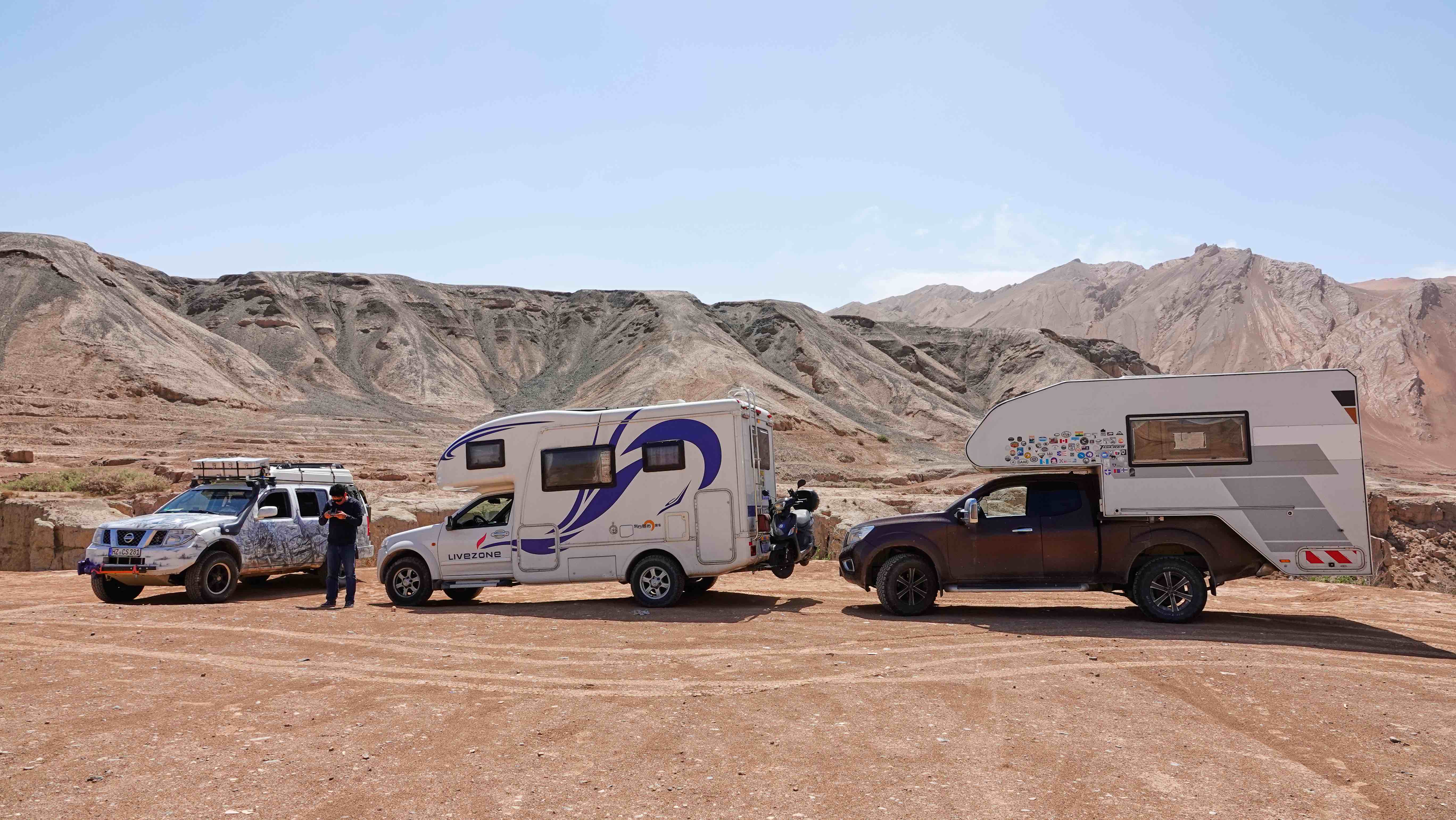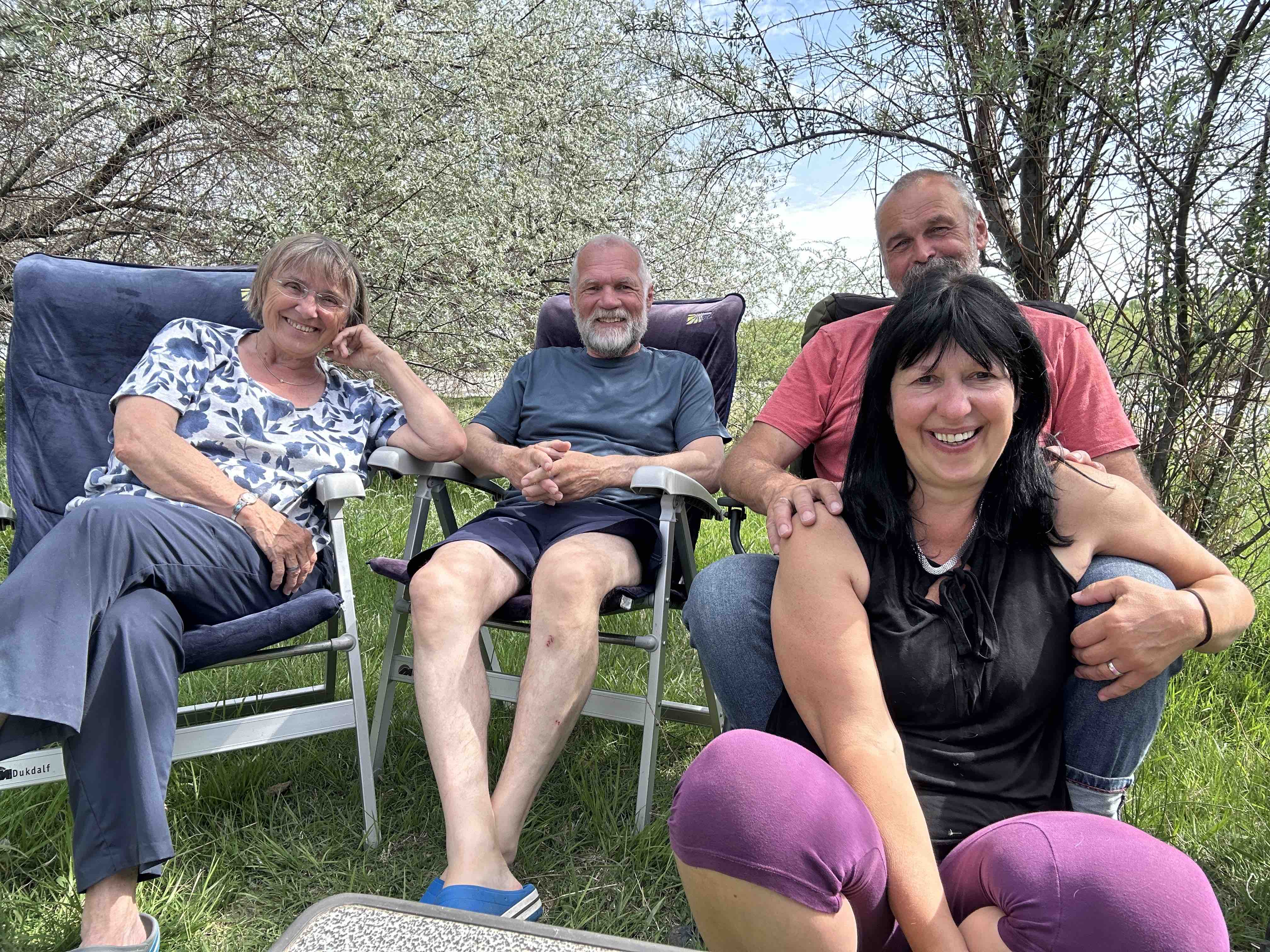 Unser Erstaunen ist riesig, als wir ihr Wohnmobil entdecken, mit dem sie uns auf unserer Tour begleiten werden. Alle Gedanken, die wir uns gemacht haben, wie unser Wunsch organisatorisch zu lösen sei, möglichst oft fernab von Ortschaften in der Natur übernachten zu wollen, lösen sich in dem Augenblick in Wohlgefallen auf! Super, besser hätte es nicht kommen können!