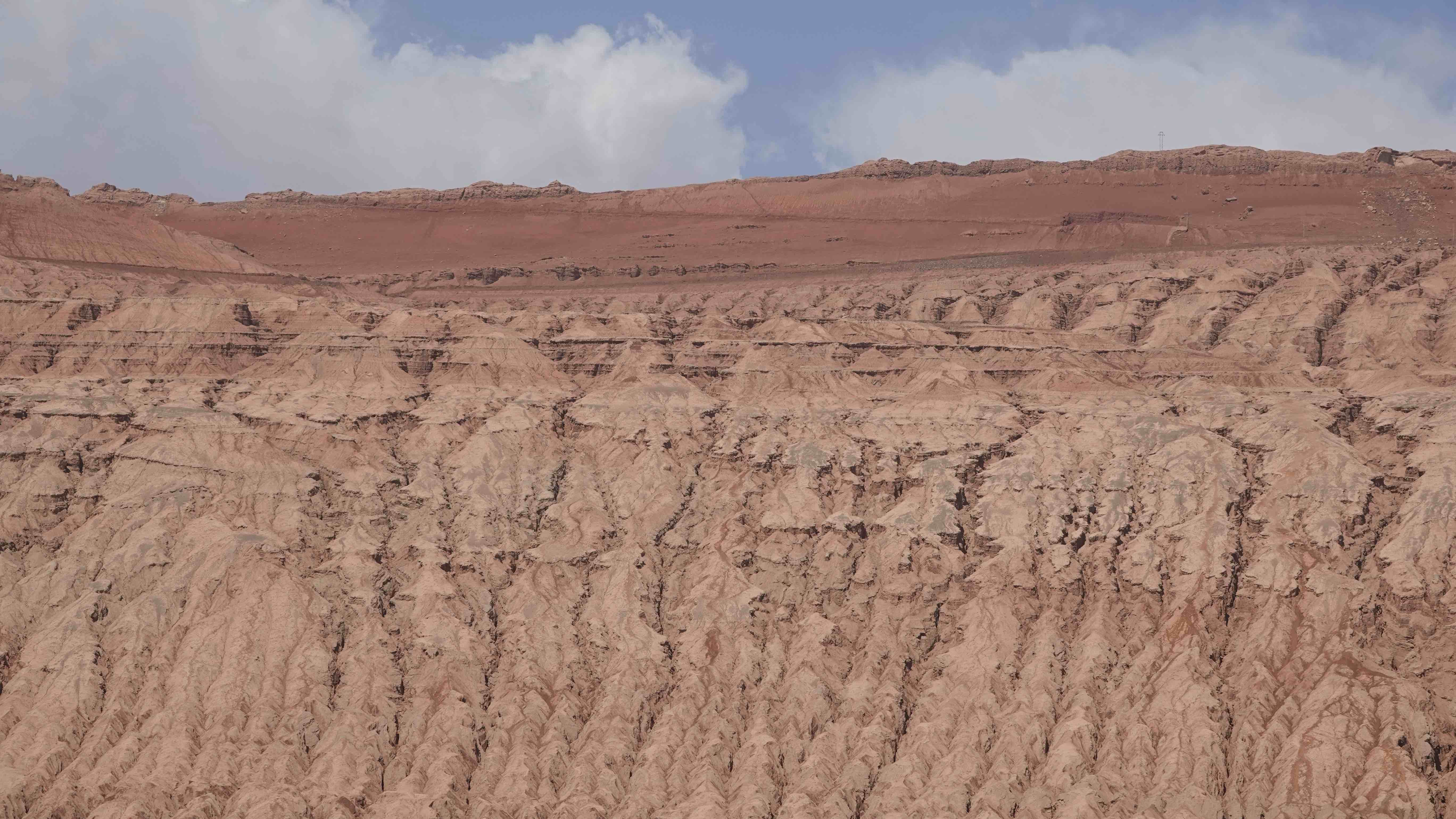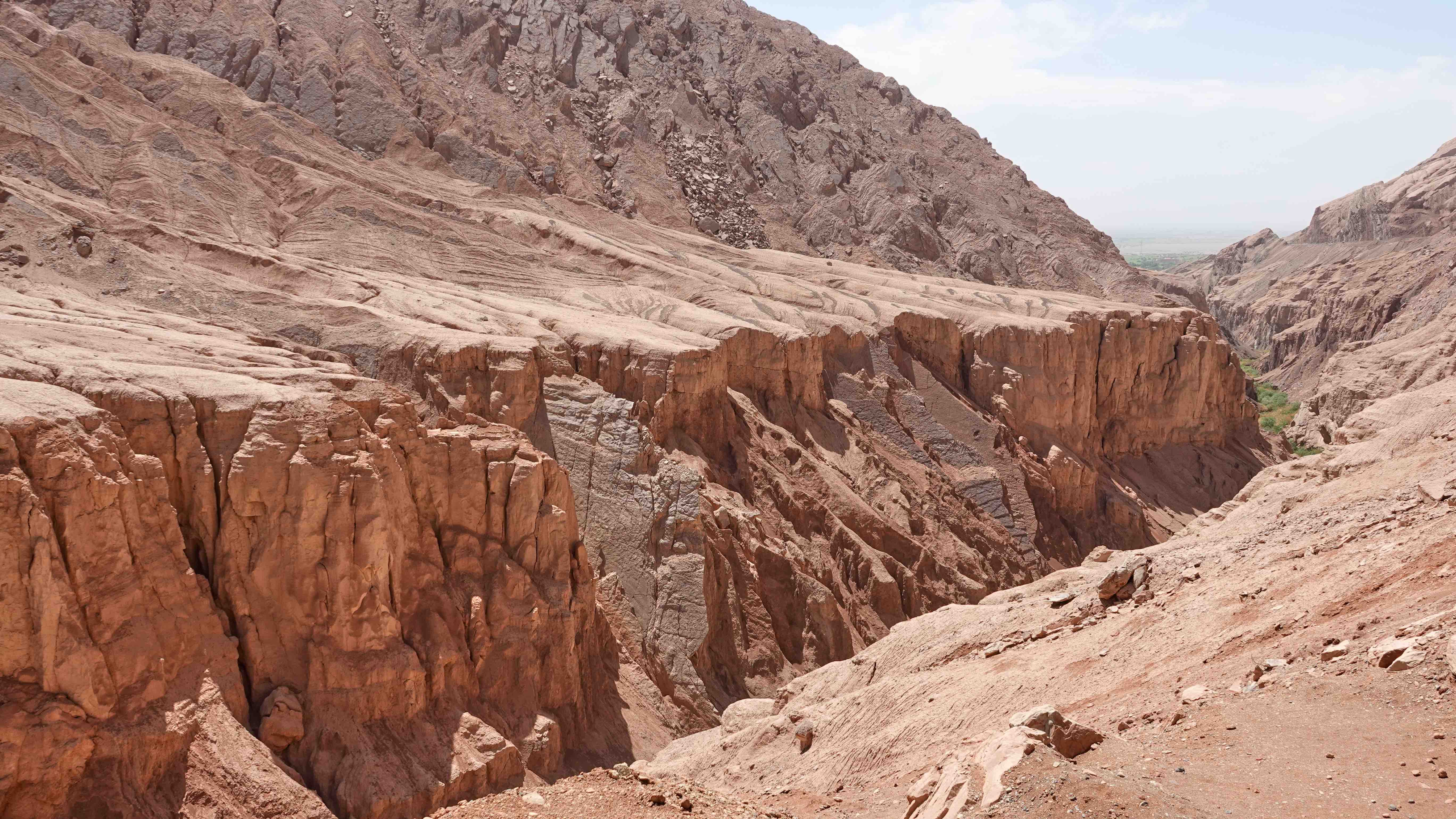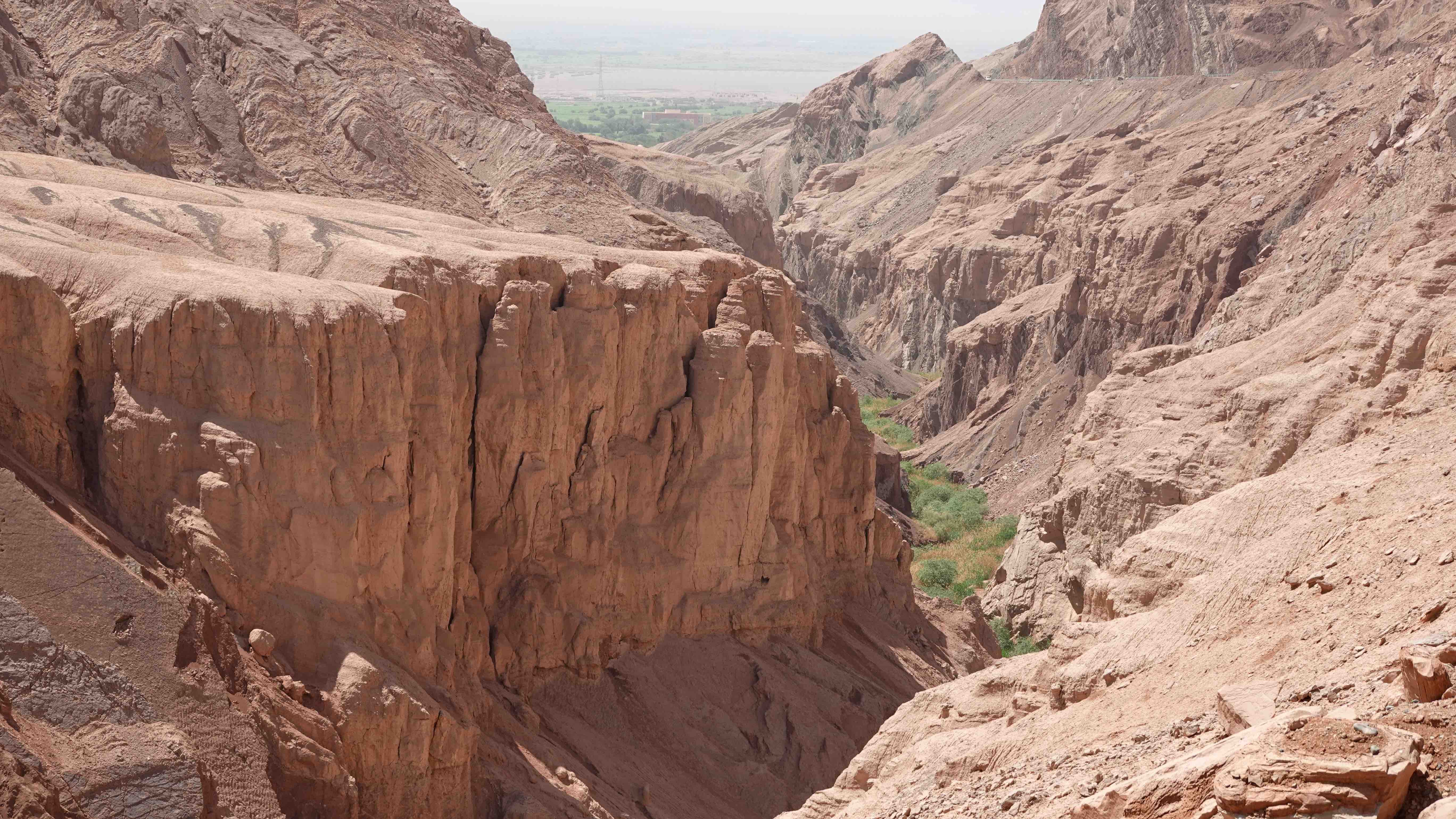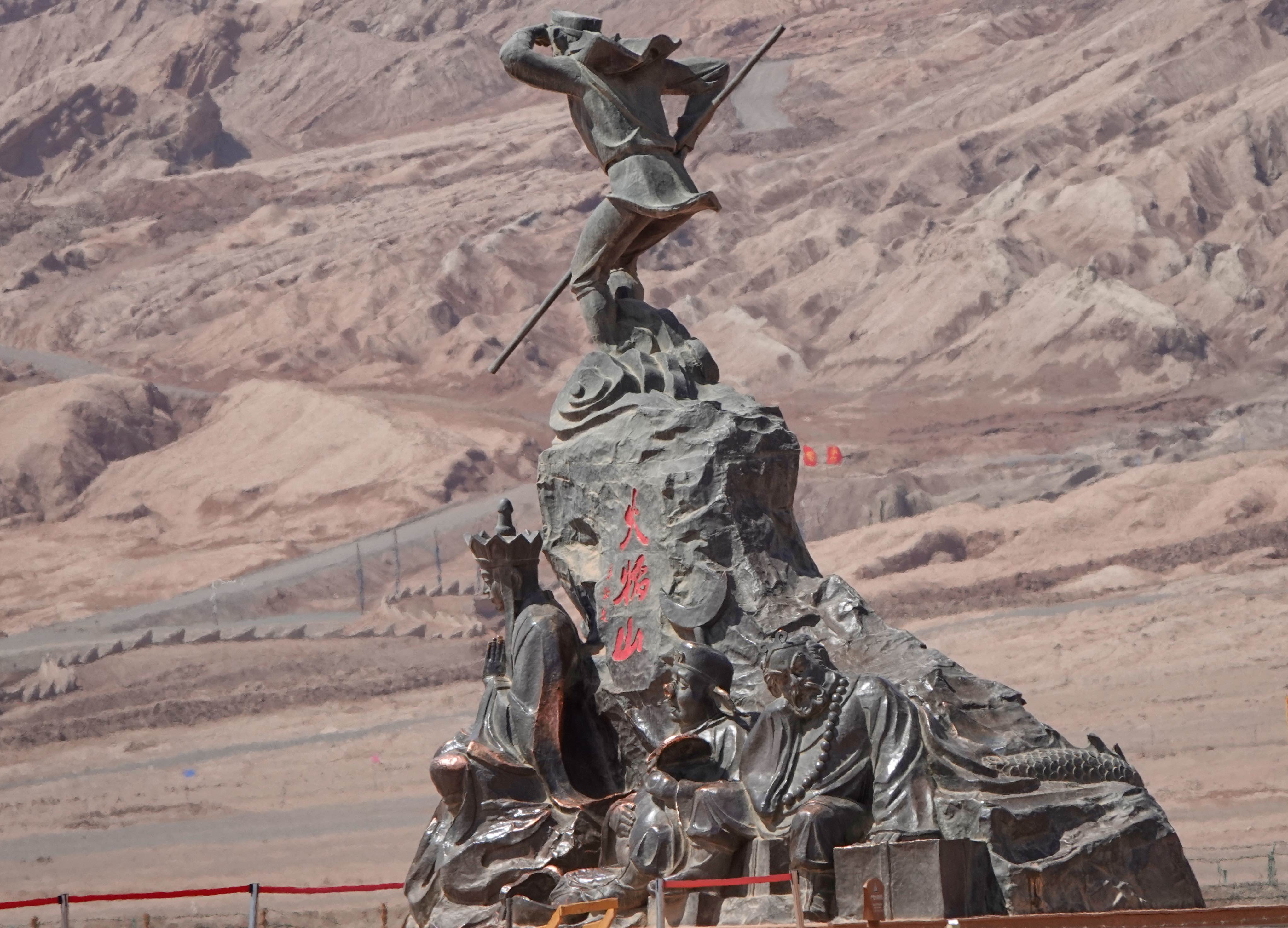 Nächster Stopp ist an den „Flaming Mountains“ , eine Bergformation mit tief gefurchten Längsrillen, die besonders bei Sonnenuntergang wie ein gewaltiges Feuer wirken. Eine Episode der Geschichte vom Monkey King spielt hier, dass erklärt die riesige Skulptur auf dem Gelände.
