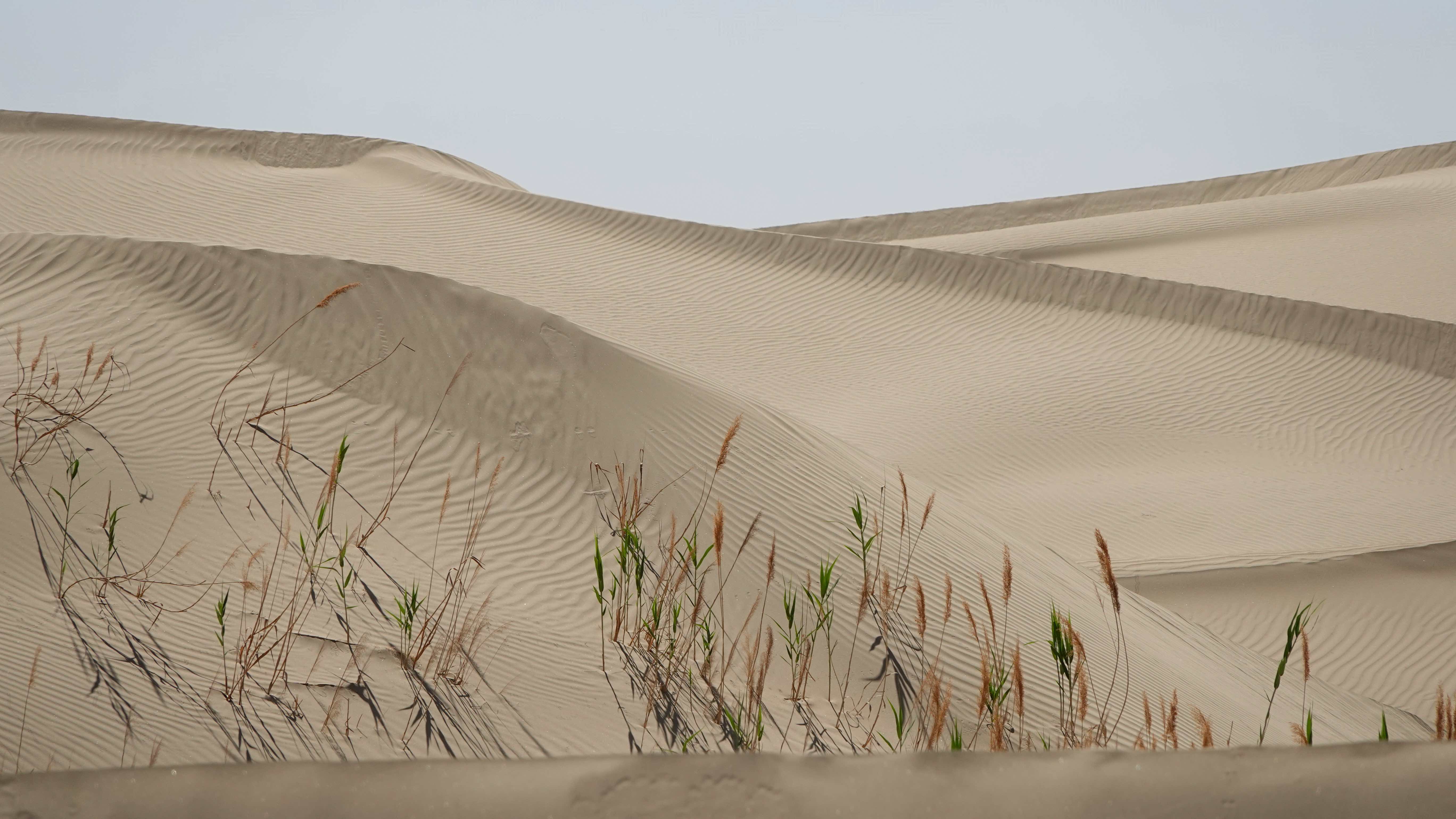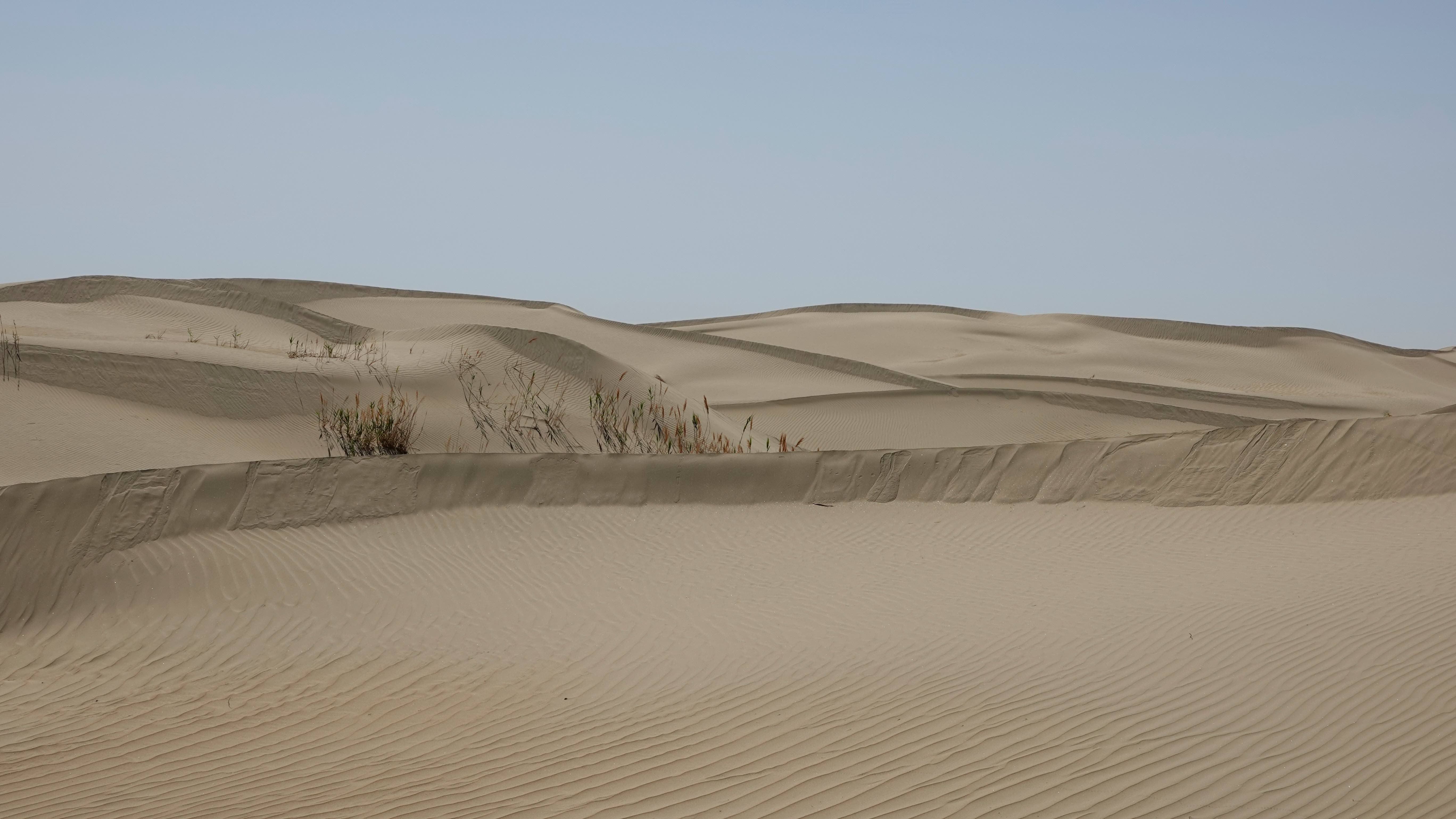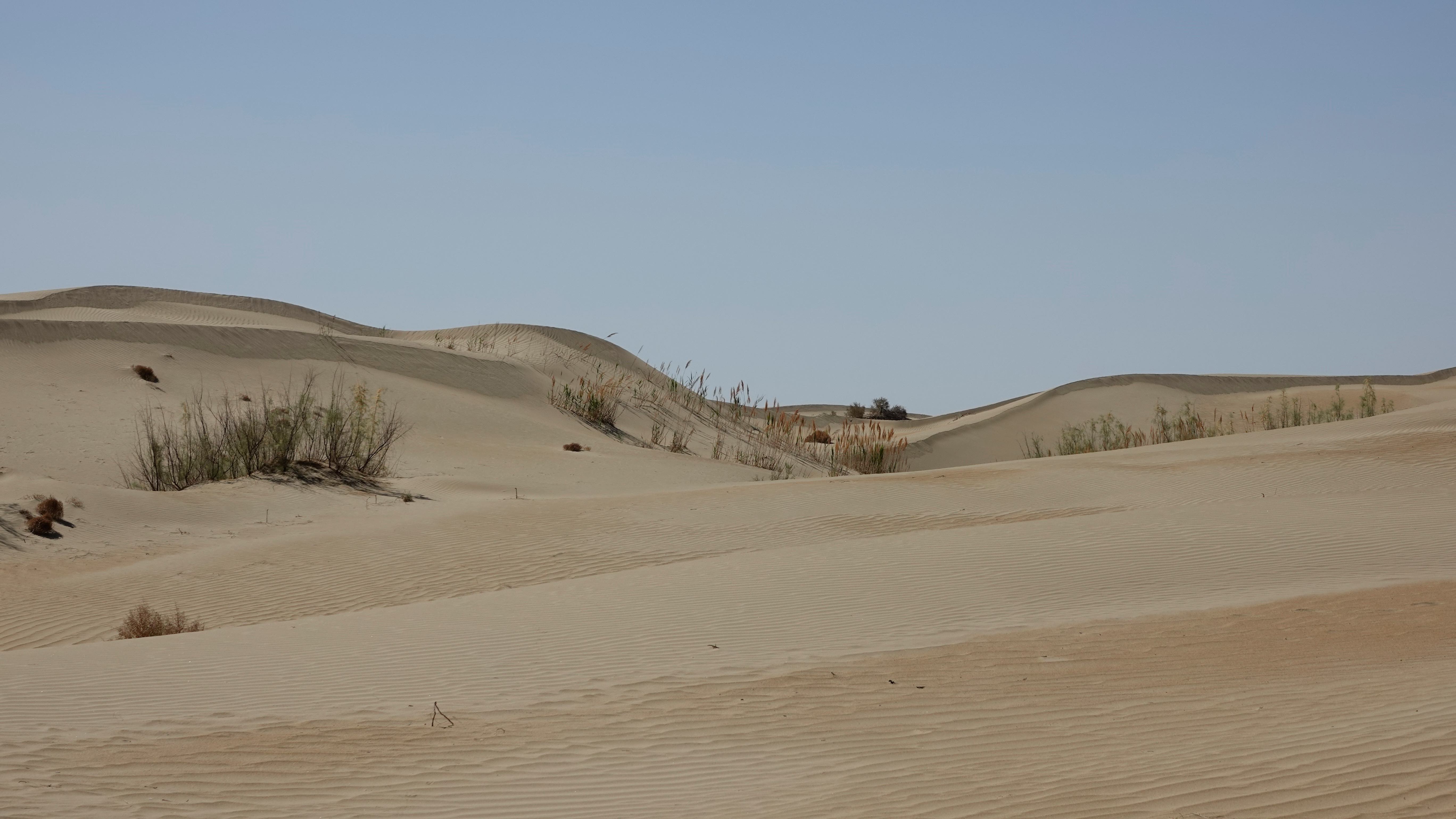 Von Korla aus fahren wir südwärts durch die Wüste Taklamakan und natürlich müssen wir mal kurz die Sanddünen hinauf laufen- mühsam bei 40 Grad!