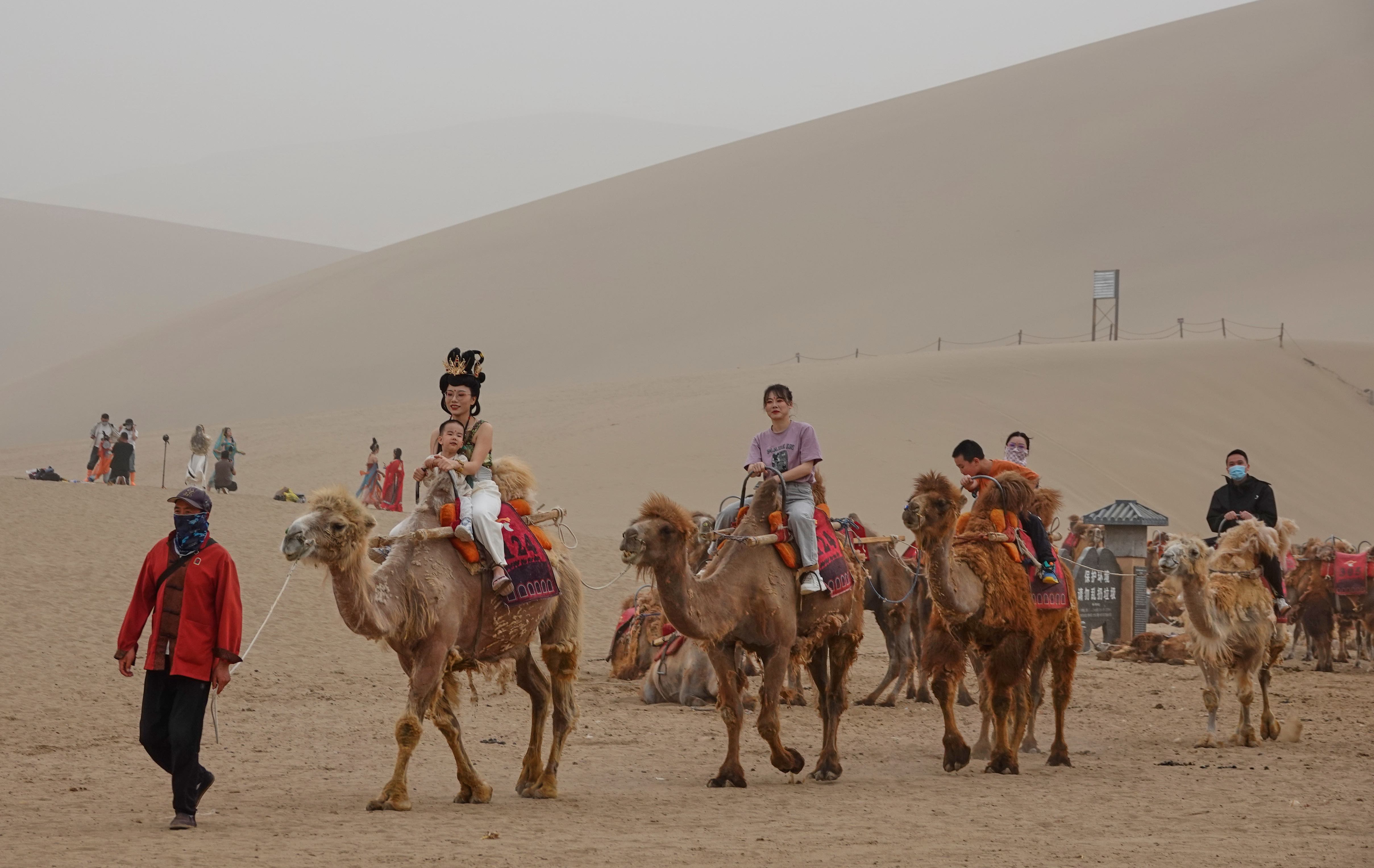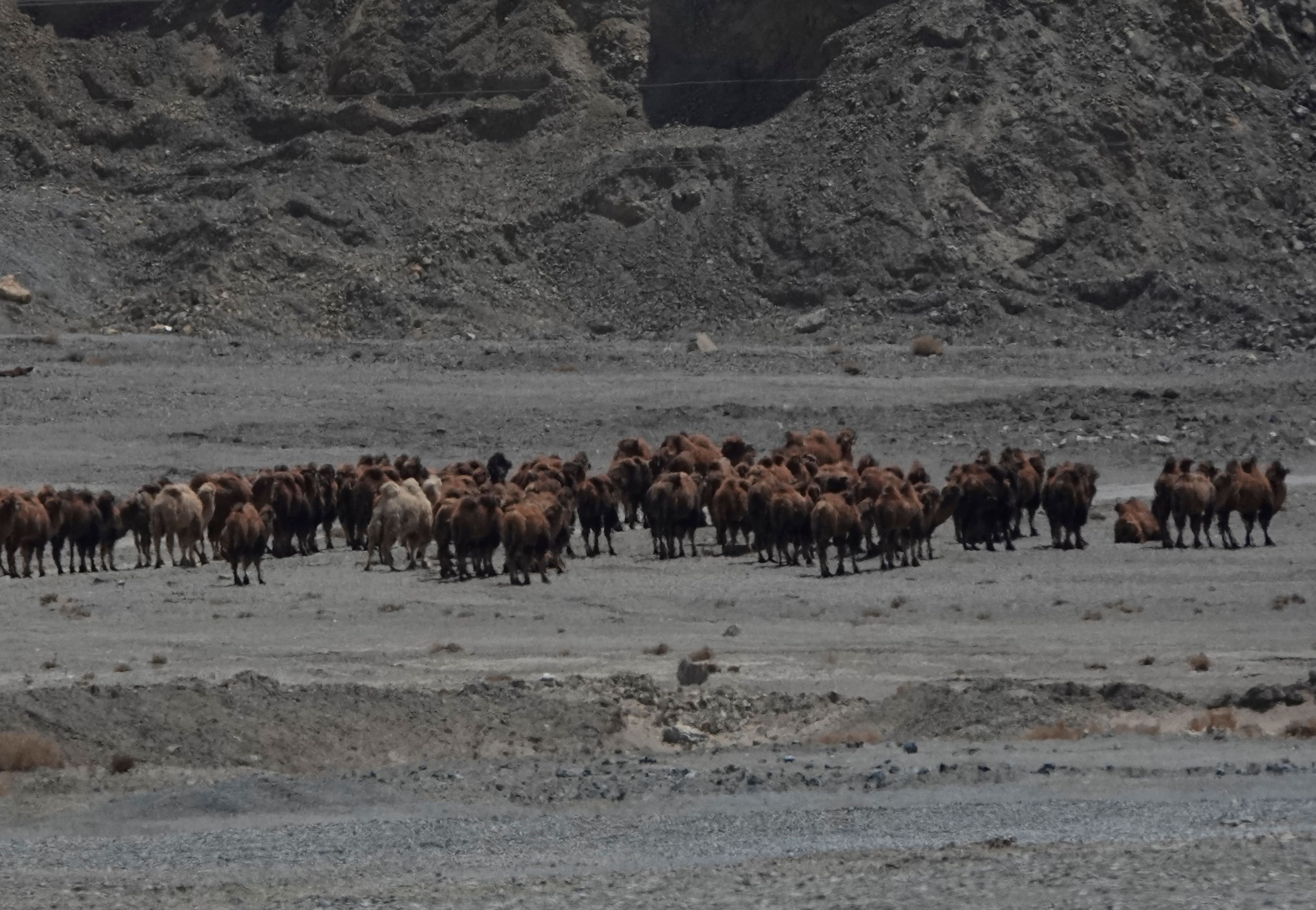 Eine 550 km lange Autobahnfahrt führt uns durch beeindruckende Landschaft nach Dunhuang und damit in die Provinz Gansu. Unterwegs können wir eine der seltenen wilden Kamelherden beobachten. Ein kurzer Abstecher in die Wüste mit etwas Pistenfahrt ist eine willkommene Abwechslung.