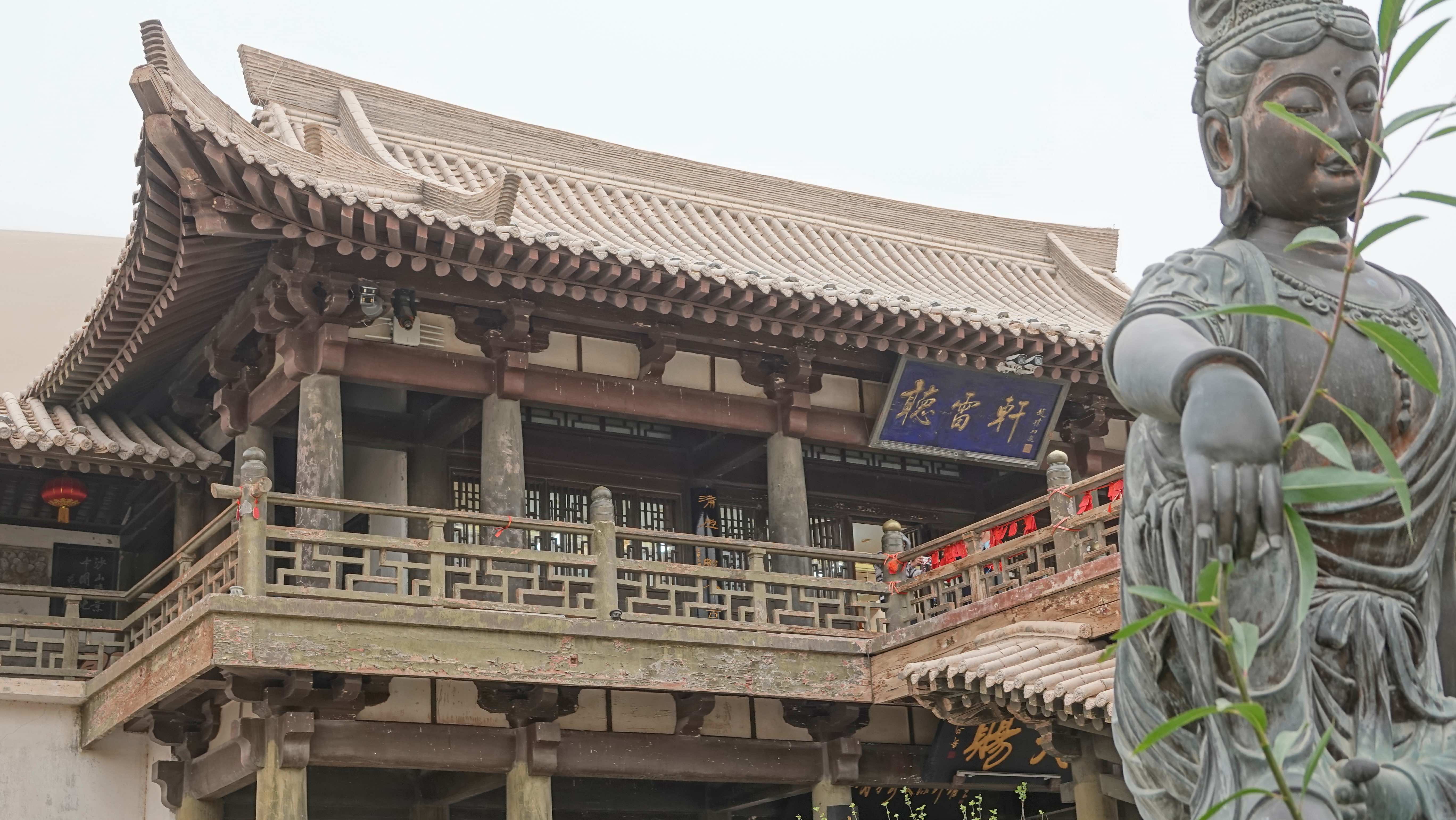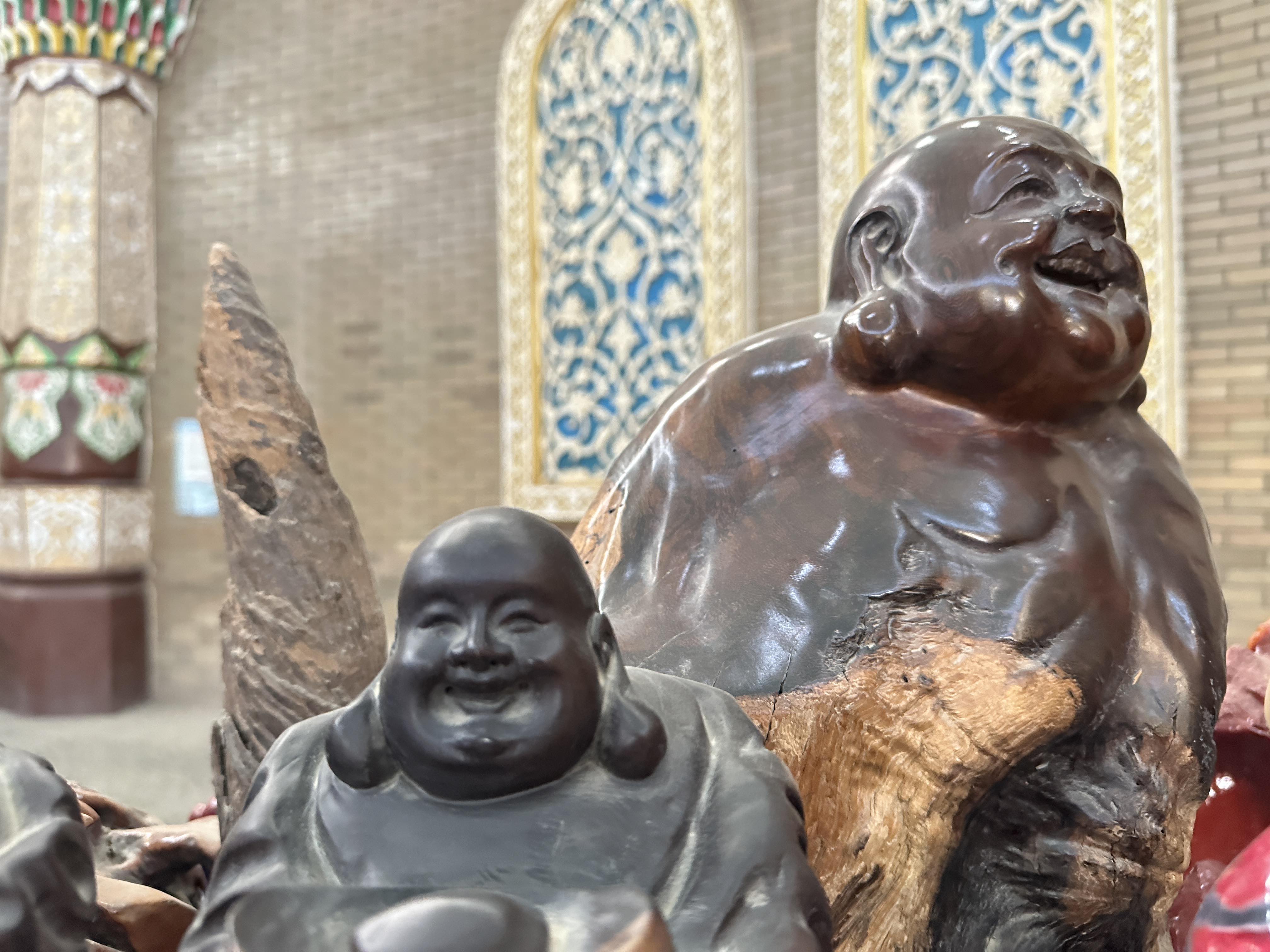 Heute ist ein besonderer buddhistischer Feiertag, deshalb ist vor dem Tempel mit einer riesigen Buddha Statue eine große Anzahl von Menschen zu sehen, die Opfergaben bringen und Räucherstäbchen anzünden.