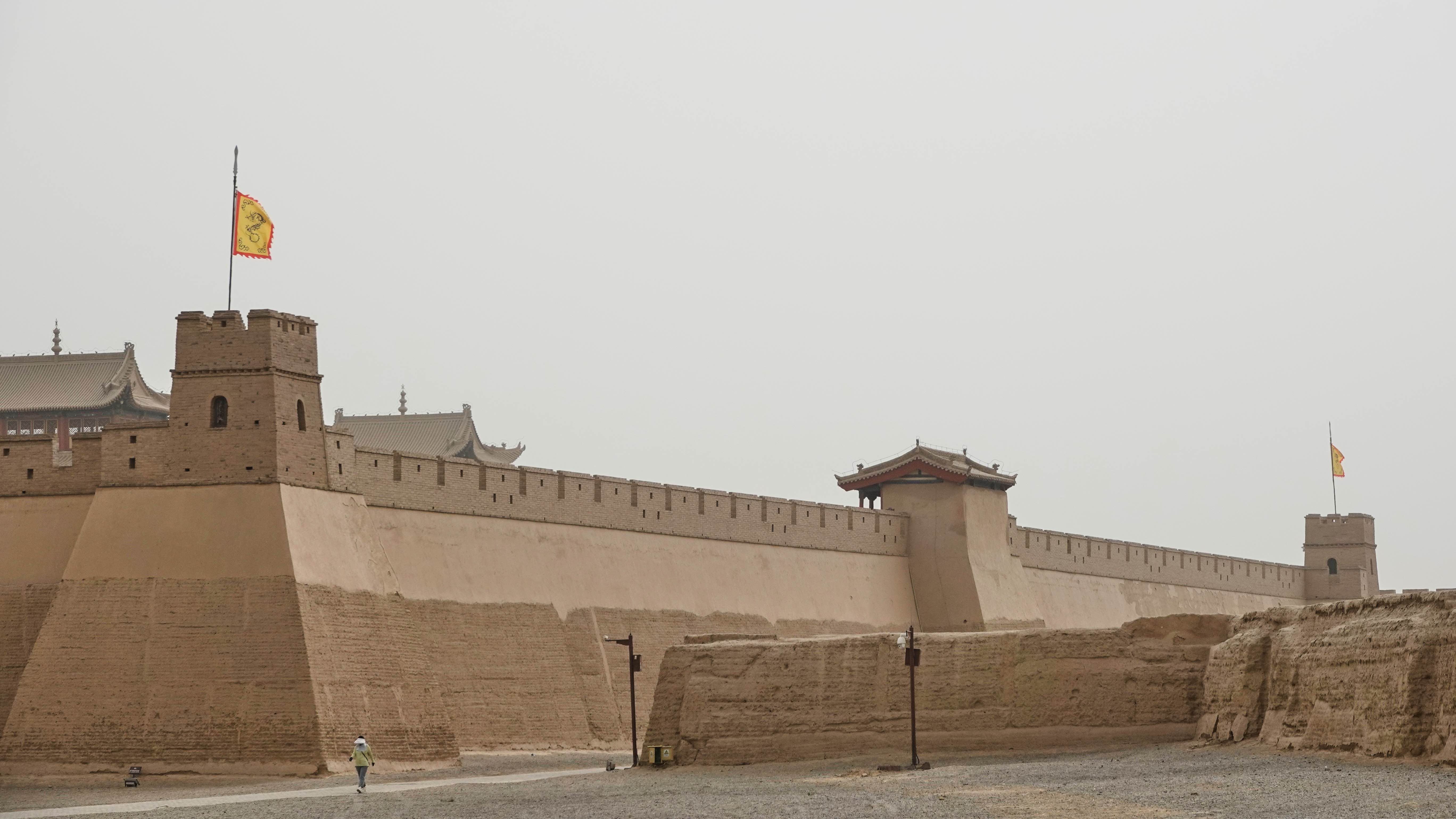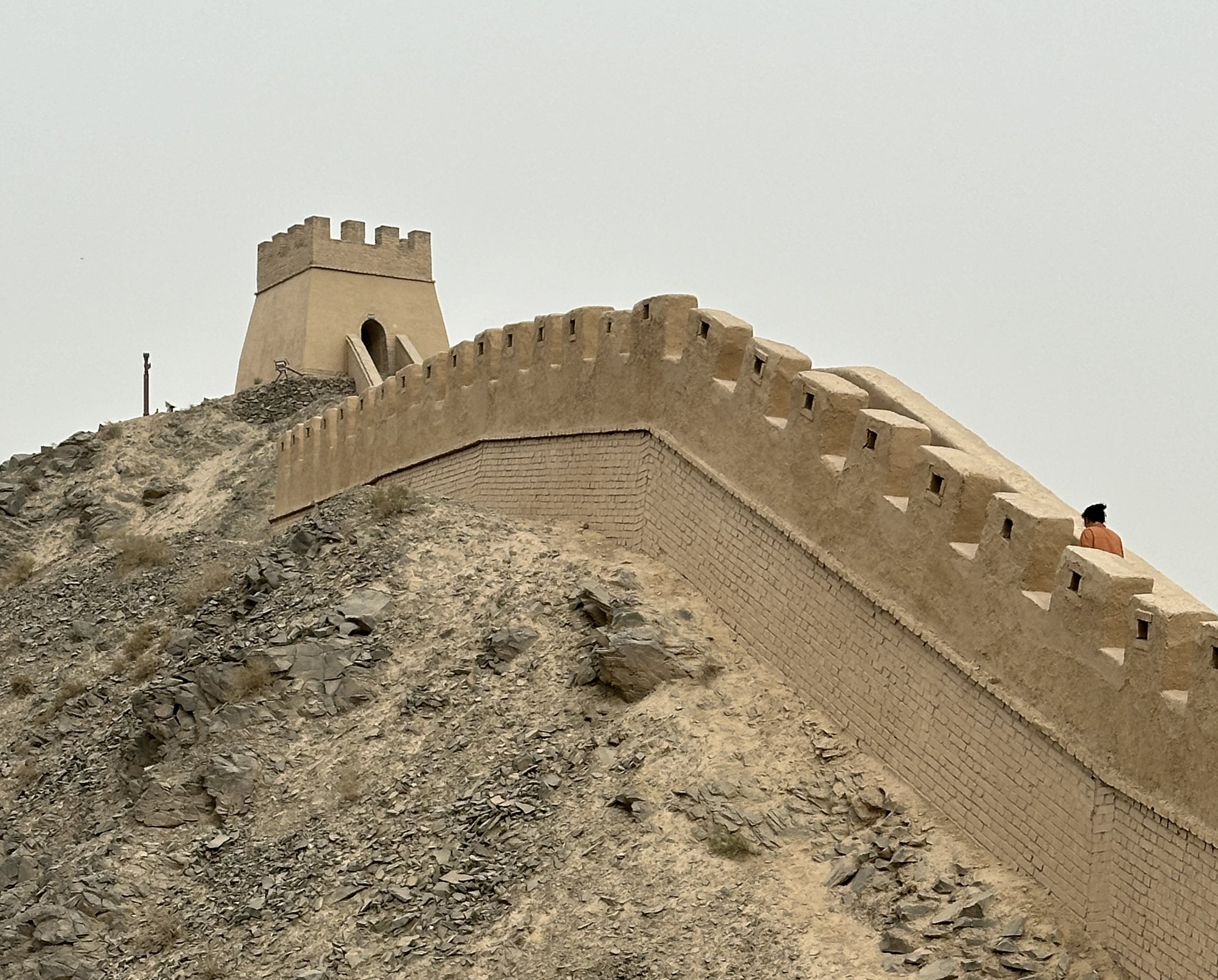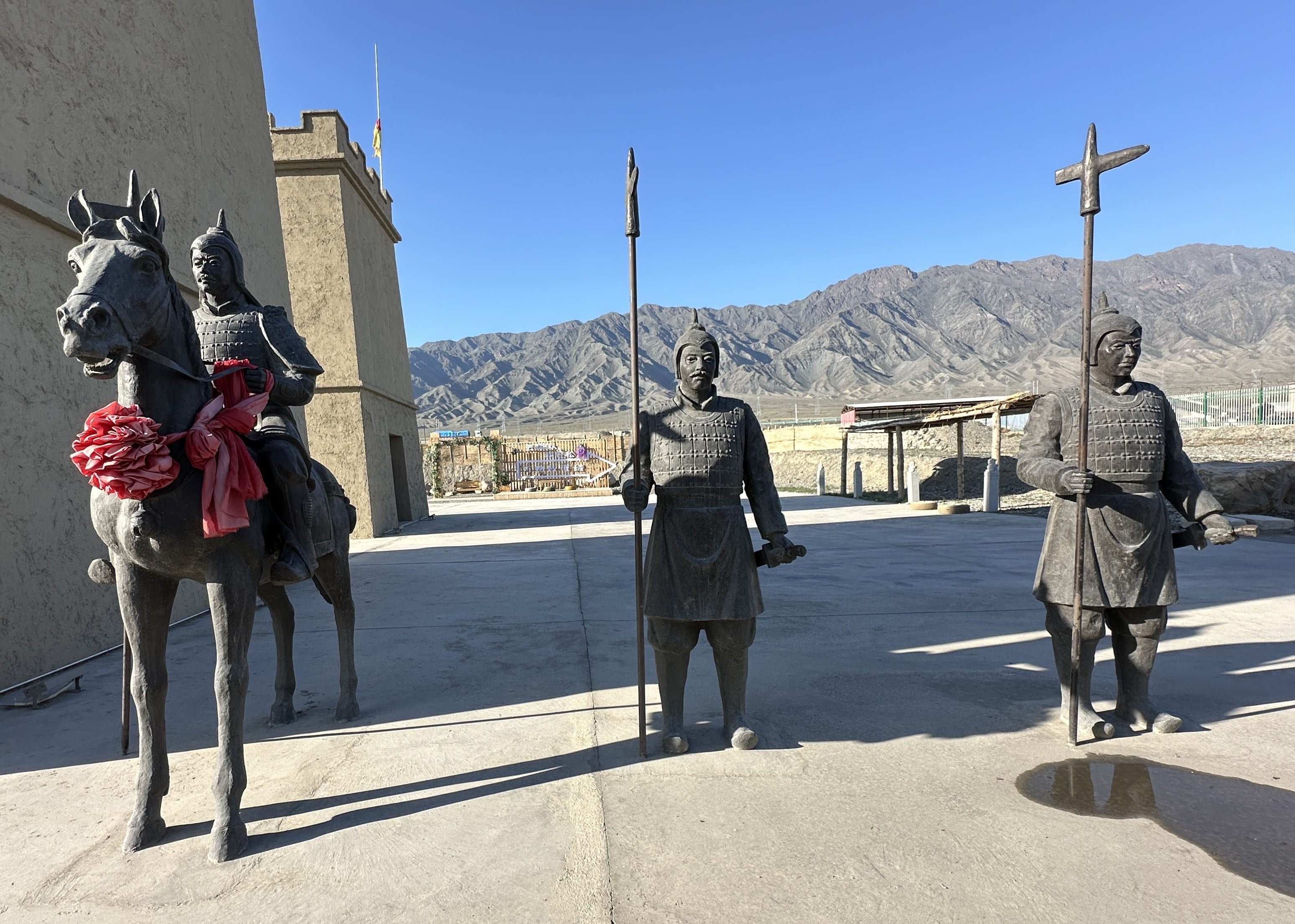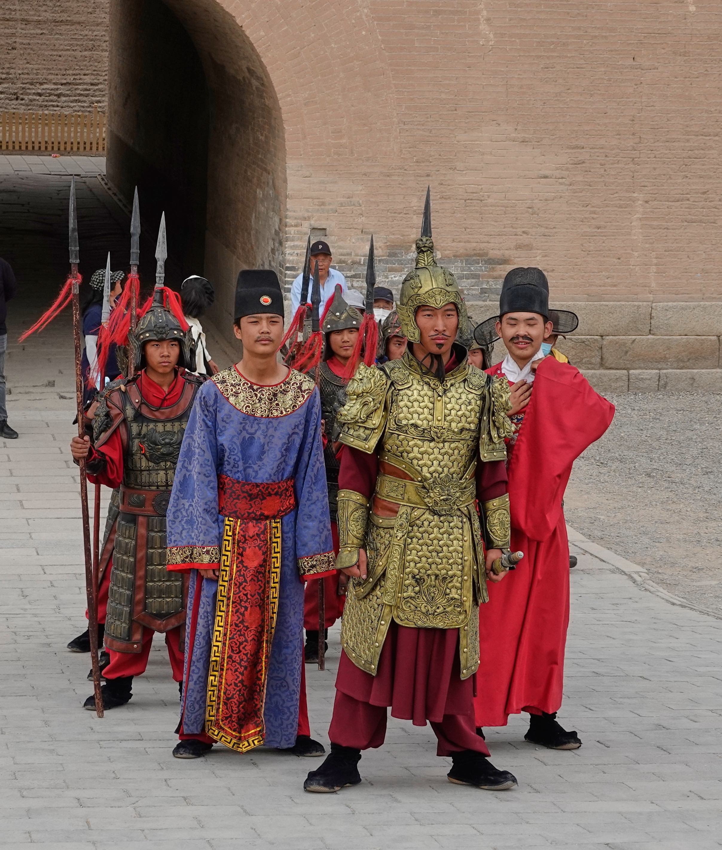 Weiter gehts Richtung Osten nach Jiajuguan. Zuerst besichtigen wir das Fort mit dem westlichsten Punkt der großen Mauer. Die strategisch günstige Lage zwischen zwei Gebirgszügen war eine gute Gelegenheit, von den Händlern Zoll einzufordern. Eine nette Showeinlage von kostümierten Darstellern veranschaulicht das historische Geschehen für die zahlreichen Touristen.