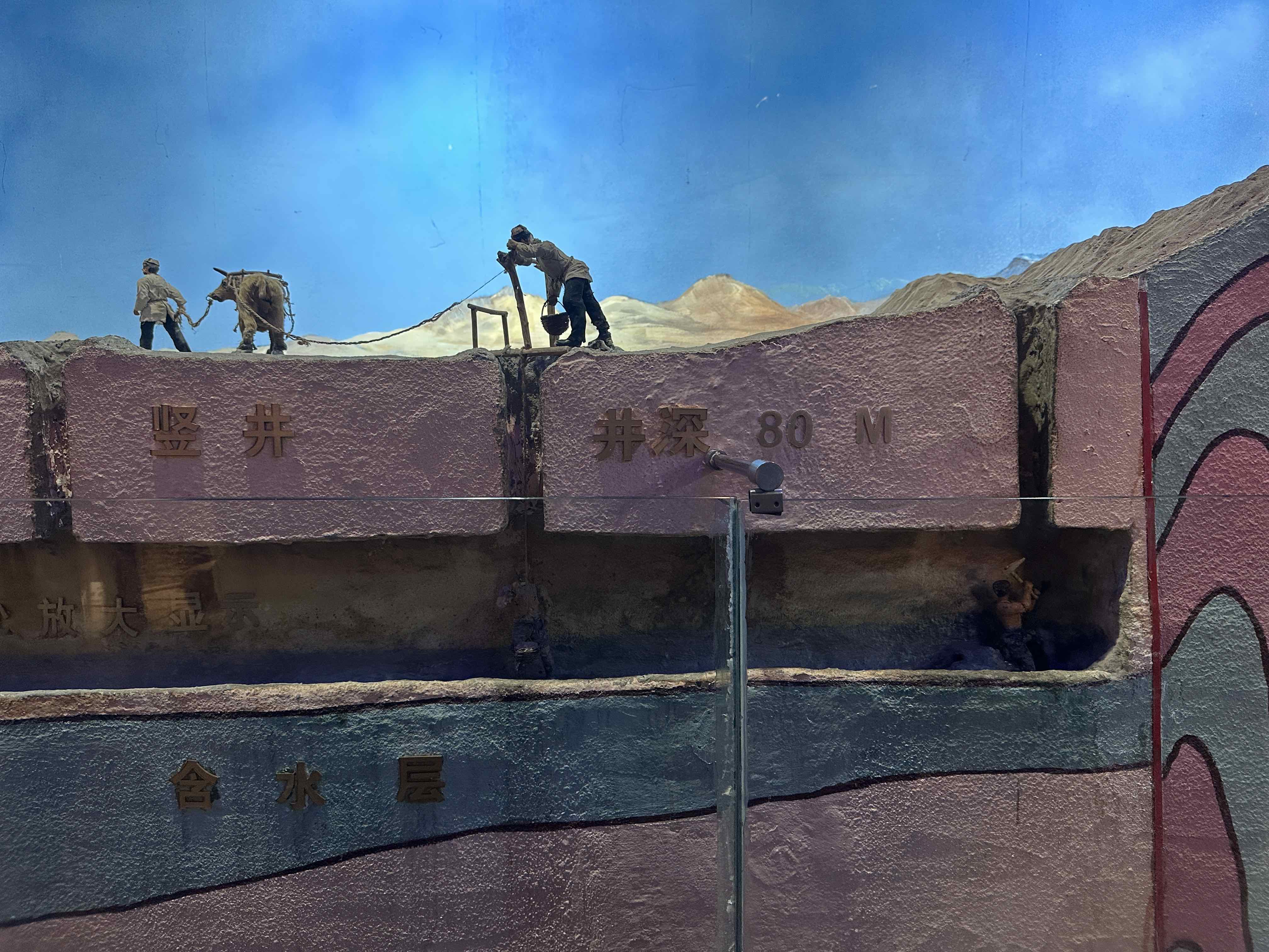 Anschließend besichtigen wir noch in Turpan das Museum, in welchem das ausgeklügelte Bewässerungssystem der Umgebung anschaulich erklärt wird, mit dem seit über 300 Jahren die Weinstöcke und auch die Stadt mit Wasser aus dem Gebirge bis heute versorgt wird. Und einen tollen Souveniershop gibts auch noch!