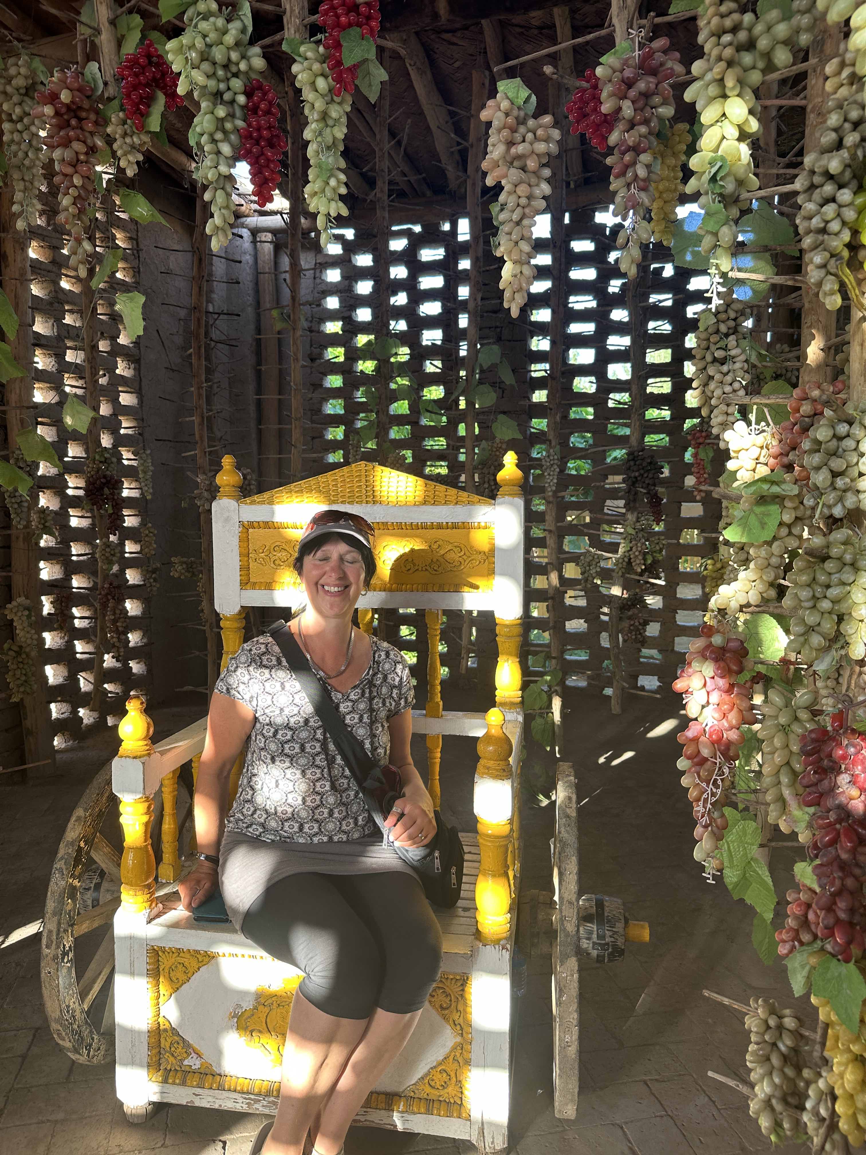 Zum Abschluss dieses ereigniseichen Tages schlendern wir noch kurz in der Stadt über den Markt und werden, wie so oft auch hier um gemeinsame Fotos gebeten. Wir besorgen uns von dem reichlichen Angebot an Streetfood etwas zum Abendbrot, das wir auf unserem Stellplatz, der idyllisch zwischen Weinstöcken liegt einnehmen. Es ist schon halb zehn und wir sind ziemlich geschafft von dem Tagesprogramm- aber für ein kühles Bier nach dem Essen reicht es allemal!