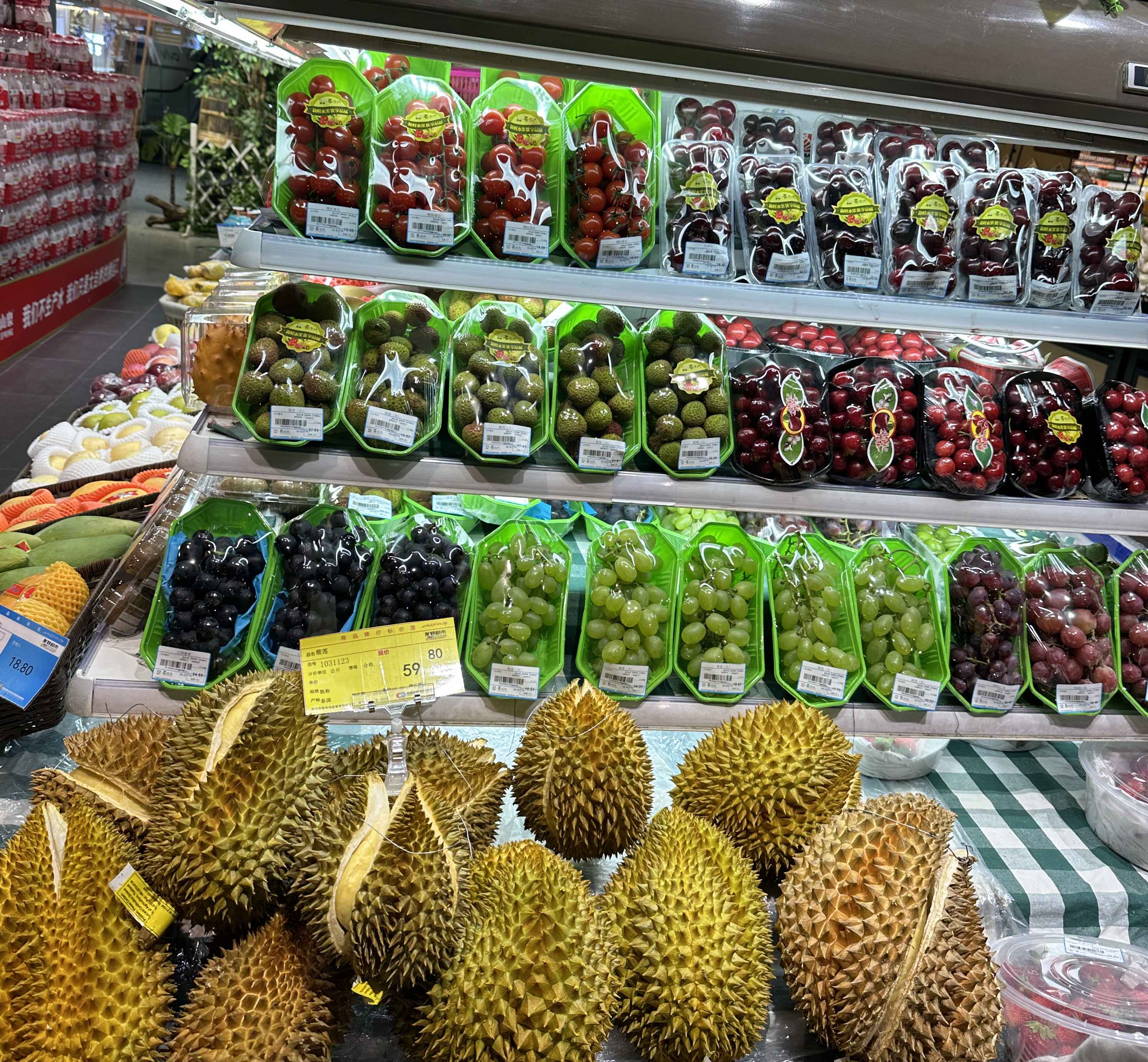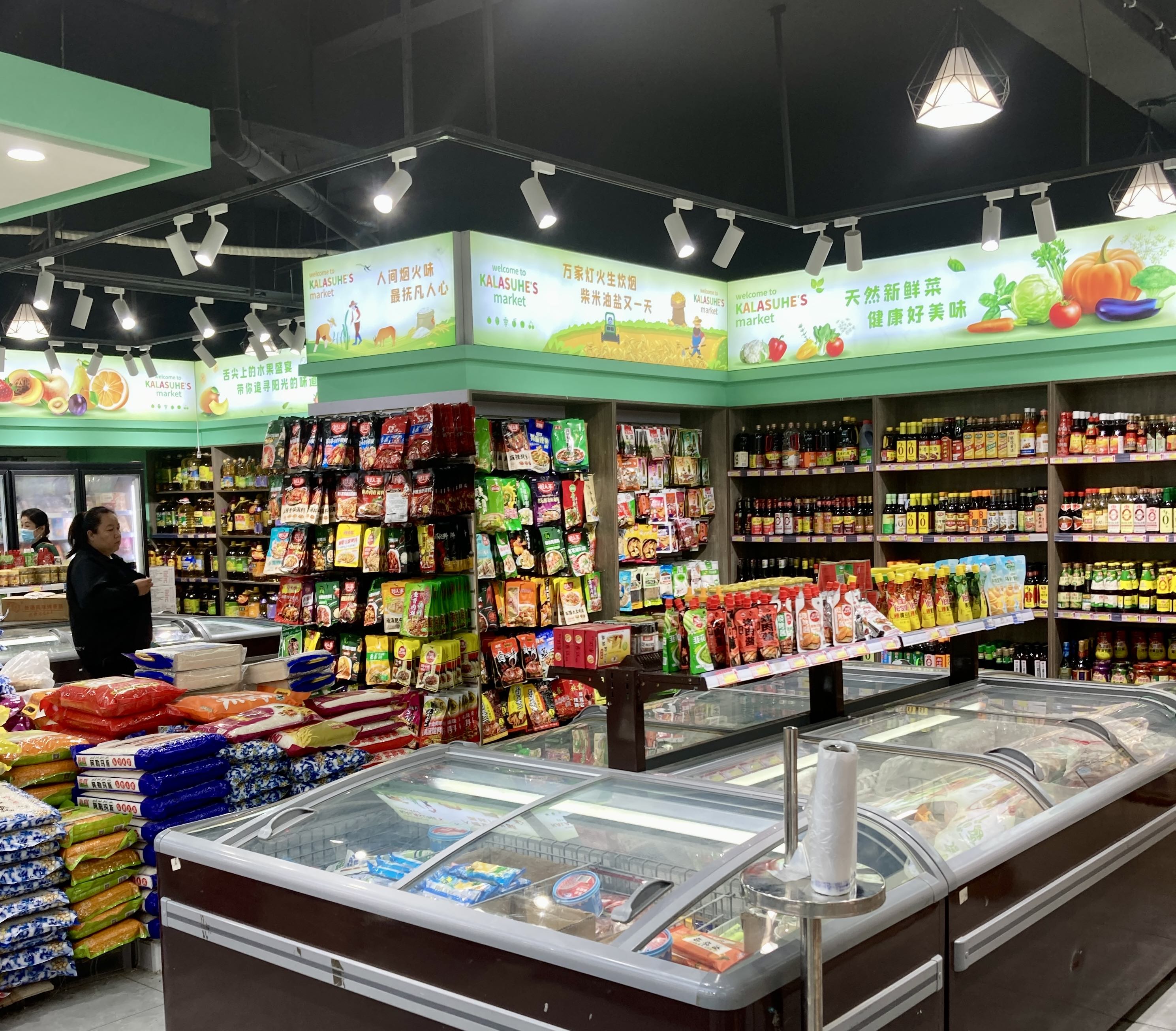 In Korla frischen wir in einem Supermarkt unsere Vorräte auf- die riesige Auswahl an Lebensmitteln aller Art überfordert uns ein wenig. Yinchou ist eine große Hilfe, sie klärt uns geduldig über die für uns exotische Früchte, Gemüsearten und andere Spezialitäten auf. Wir sind neugierig und kaufen viel zu viel ein, finden sogar Käse (leider nur Scheibletten).