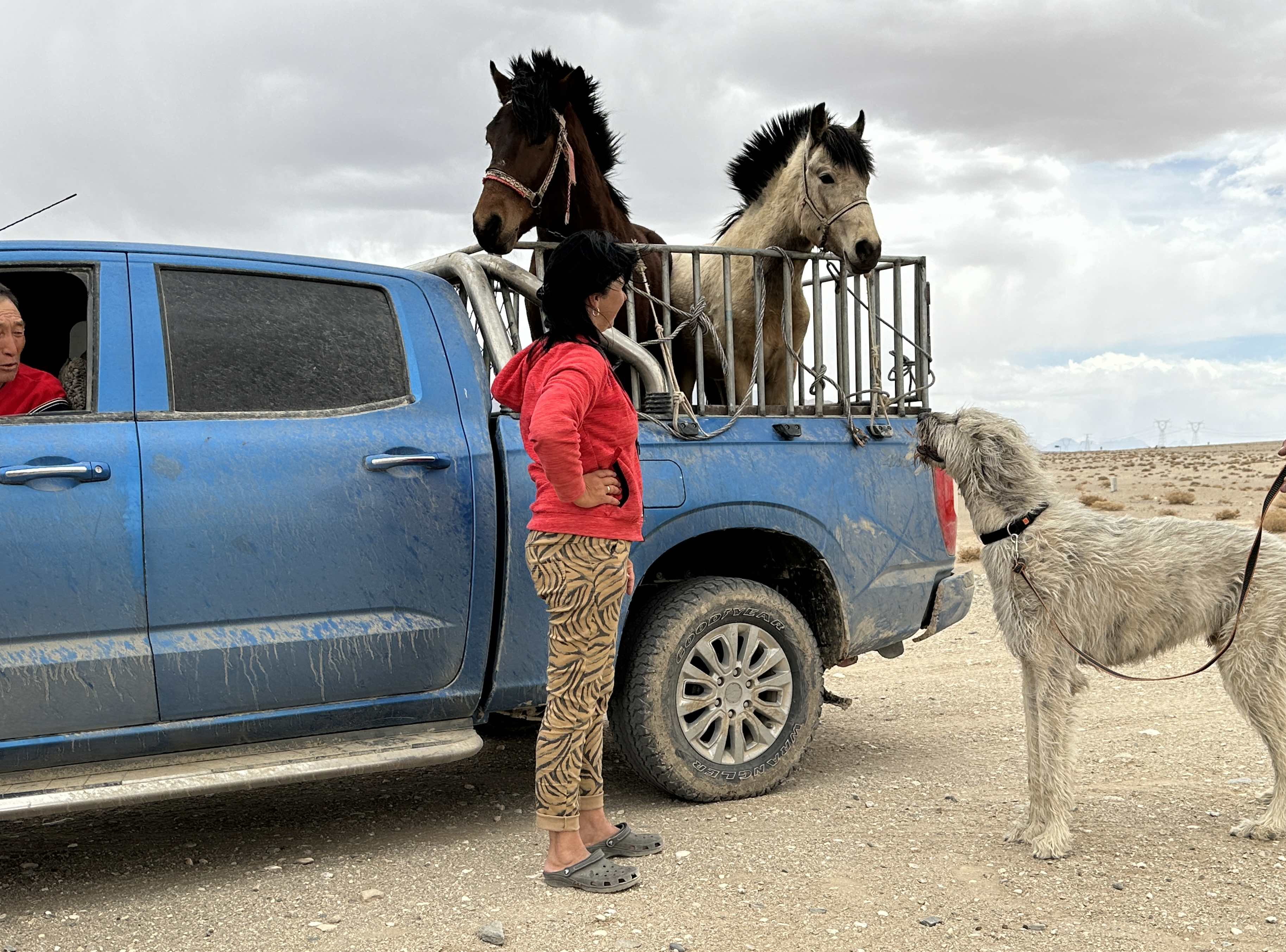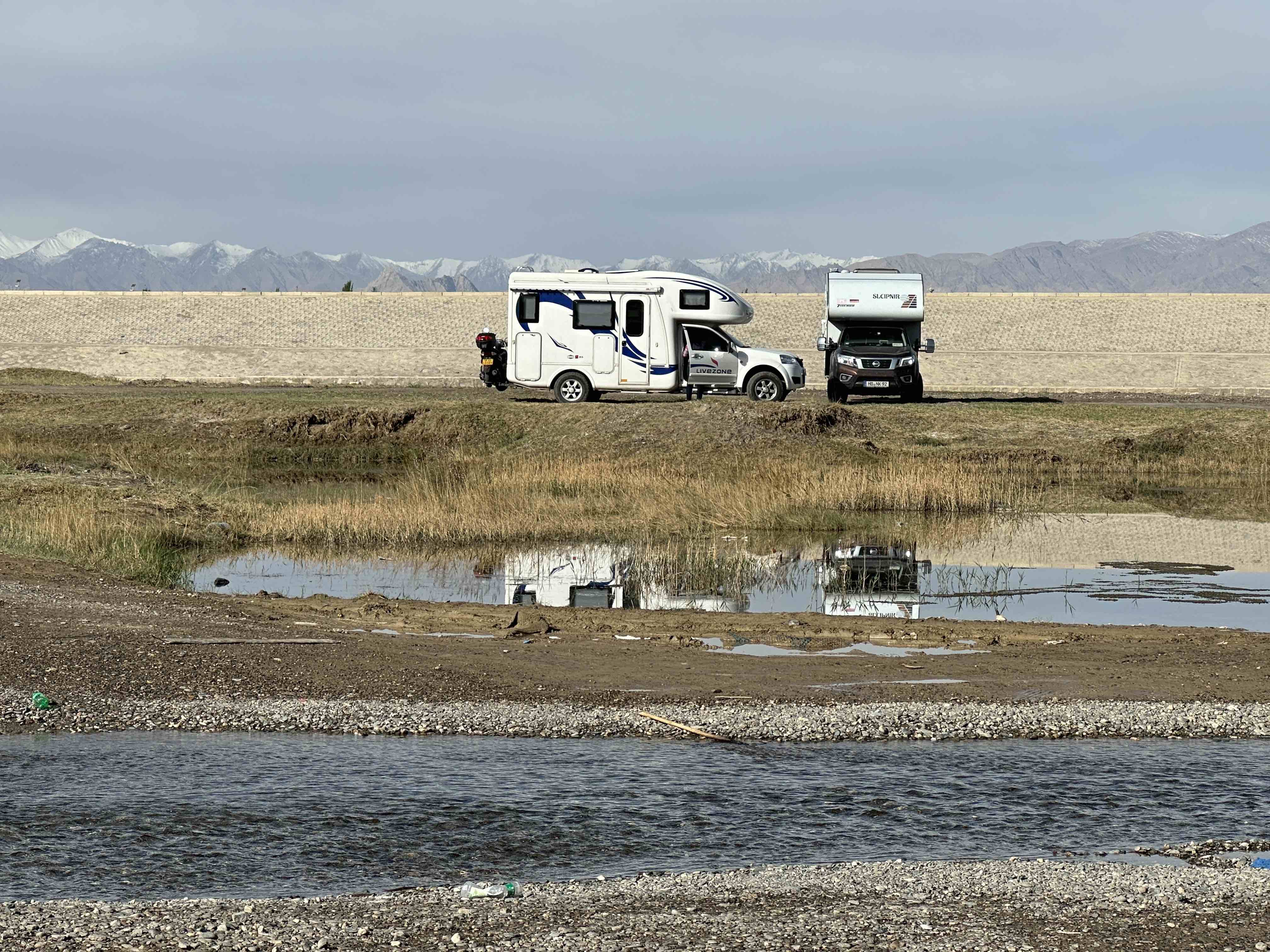 Schon am Vortag haben wir uns mit Manu, René und Struppi (ein irischer Wolfshund) in Kasachstan getroffen.