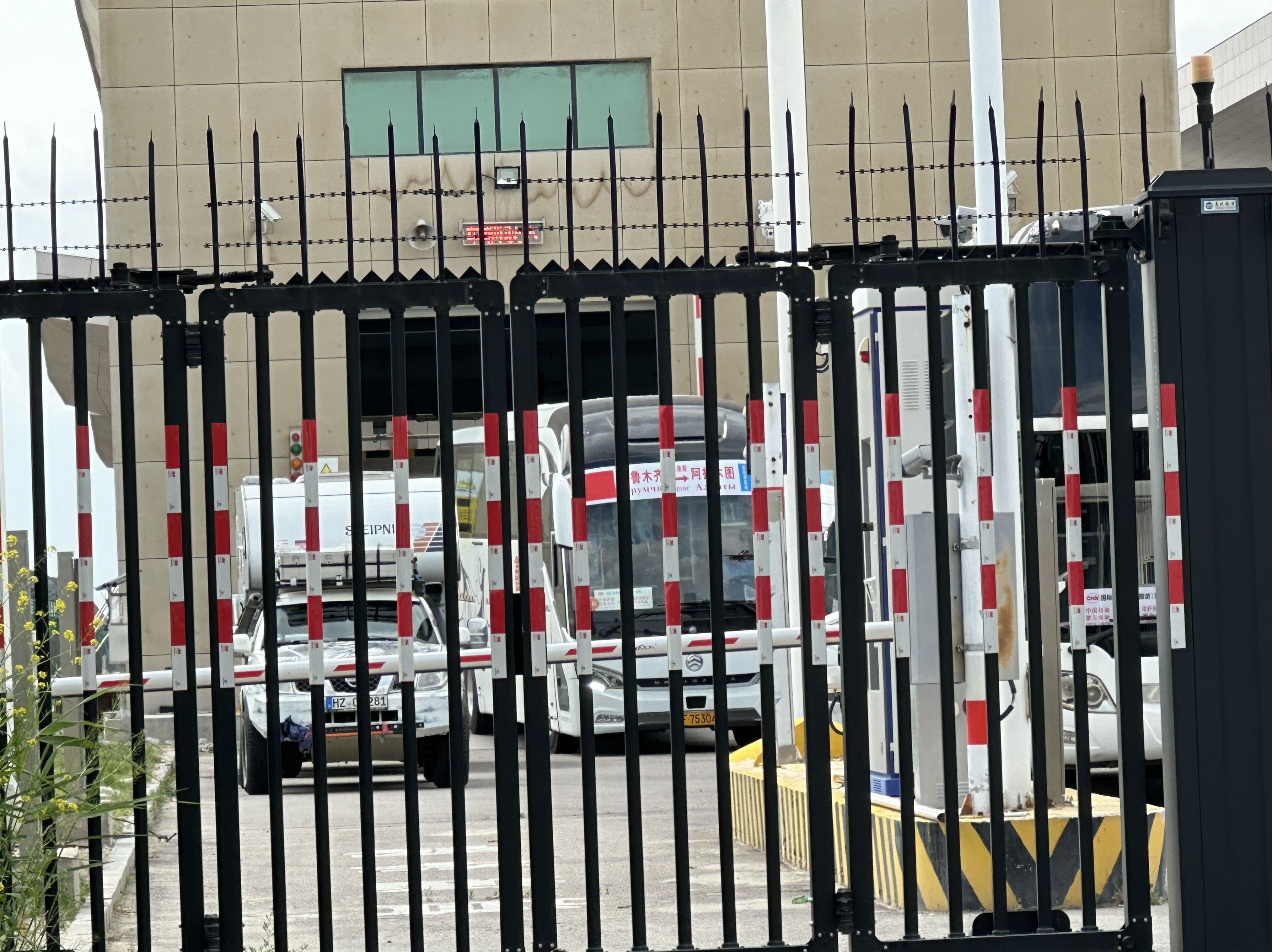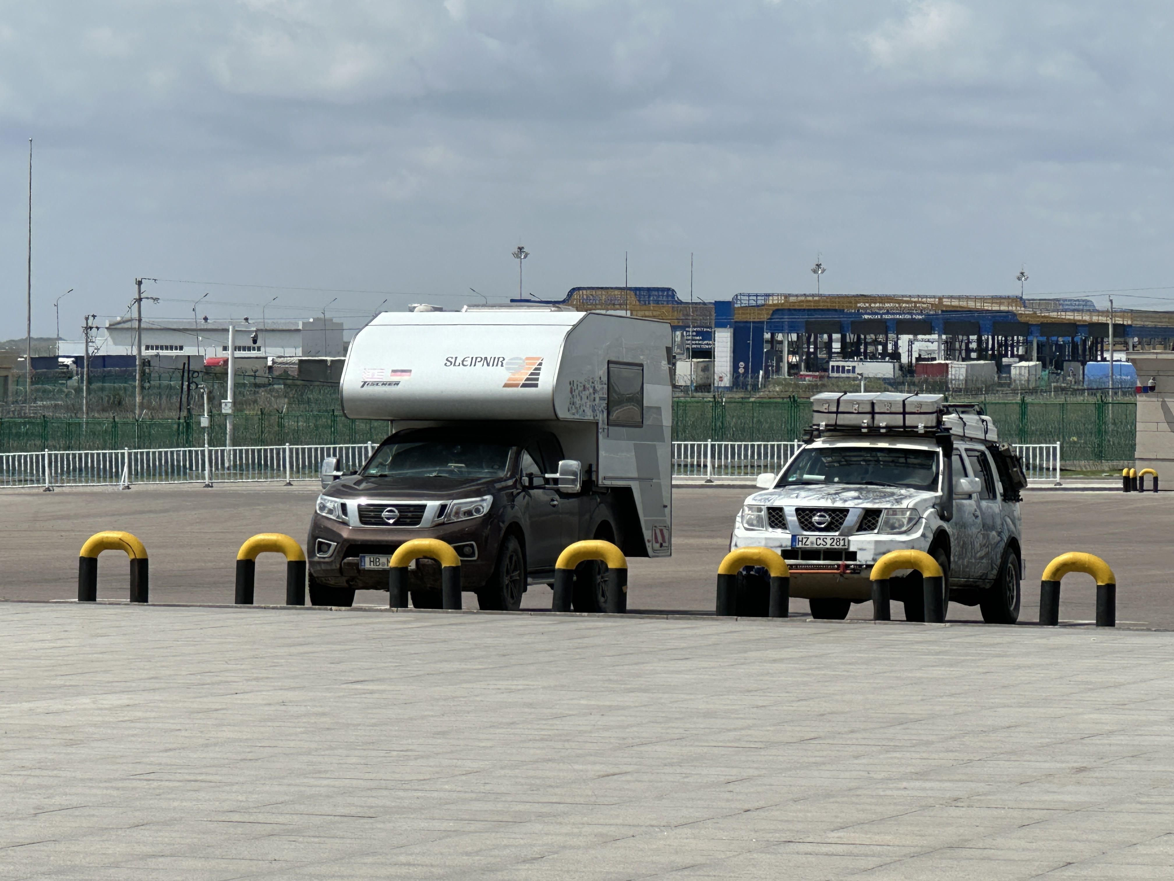 Wir Frauen sind trotz der Verzögerung deutlich schneller und suchen auf dem riesigen Gelände nach der Autoabfertigung. Tatsächlich erspähen wir hinter einem riesigen verschlossenen Tor unsere Männer nebst Autos.