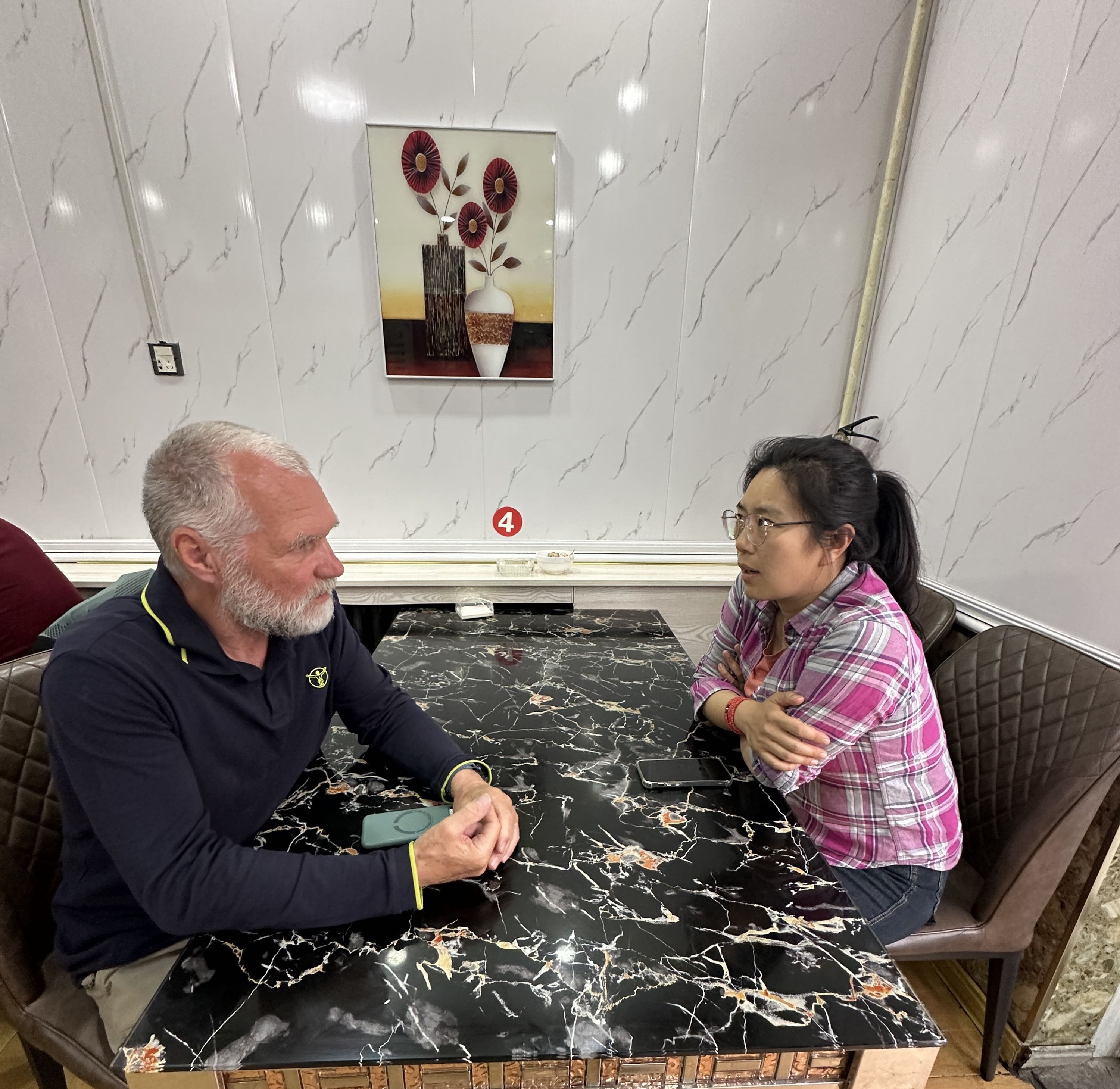 An der Grenze werden wir von Yinchou und Jerry, unseren zwei chinesischen Reiseführern, in Empfang genommen und herzlich begrüßt.