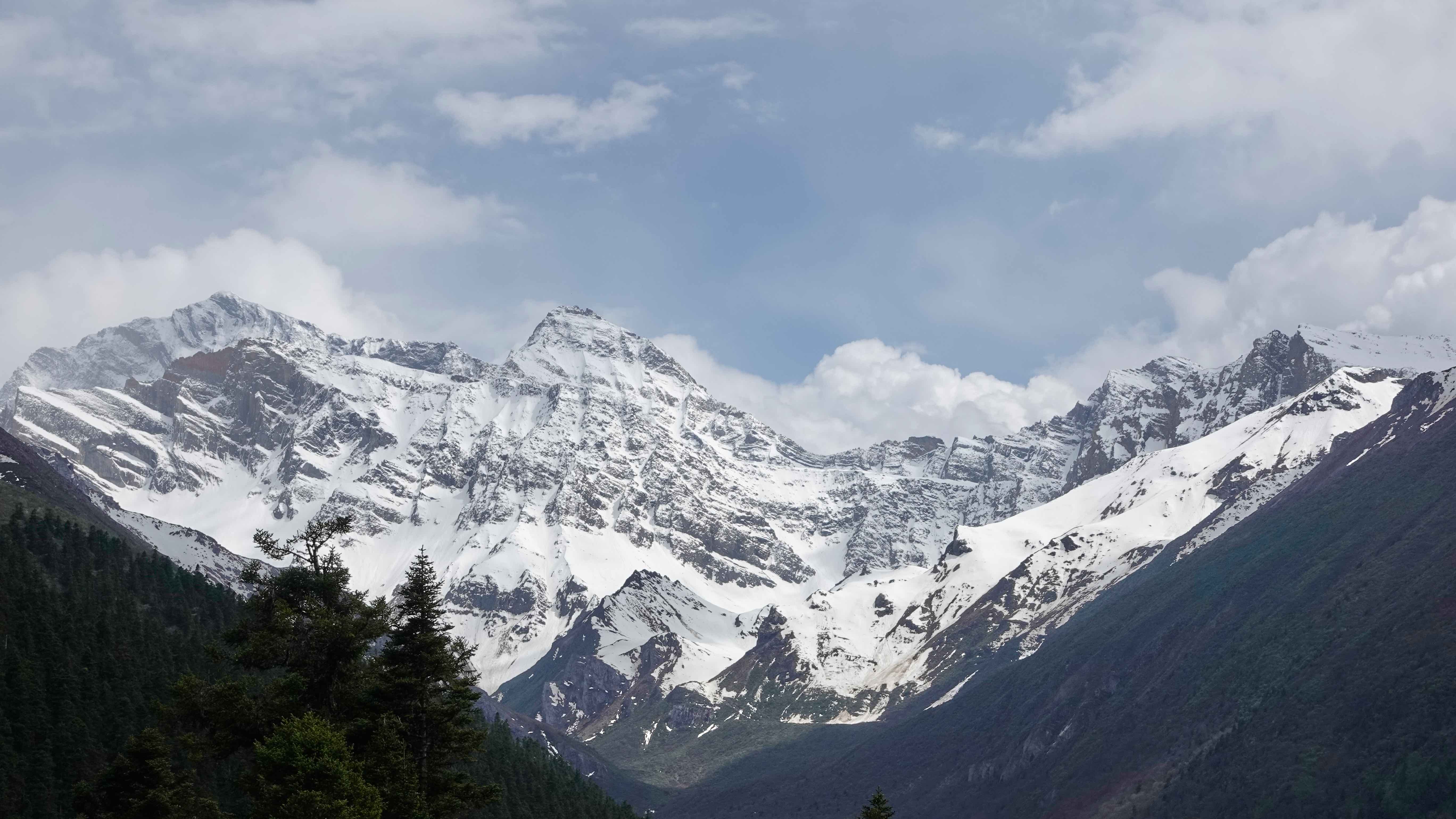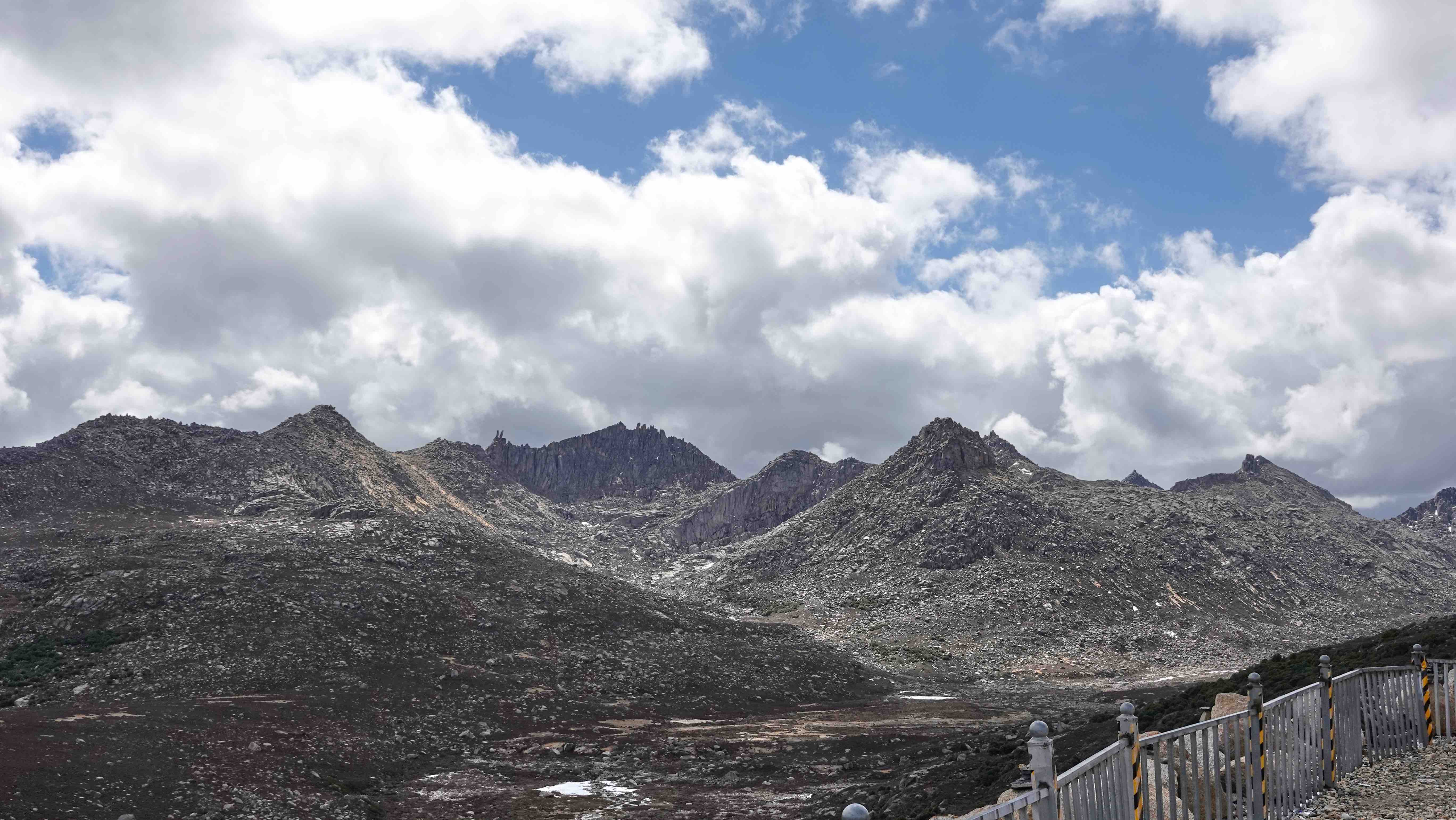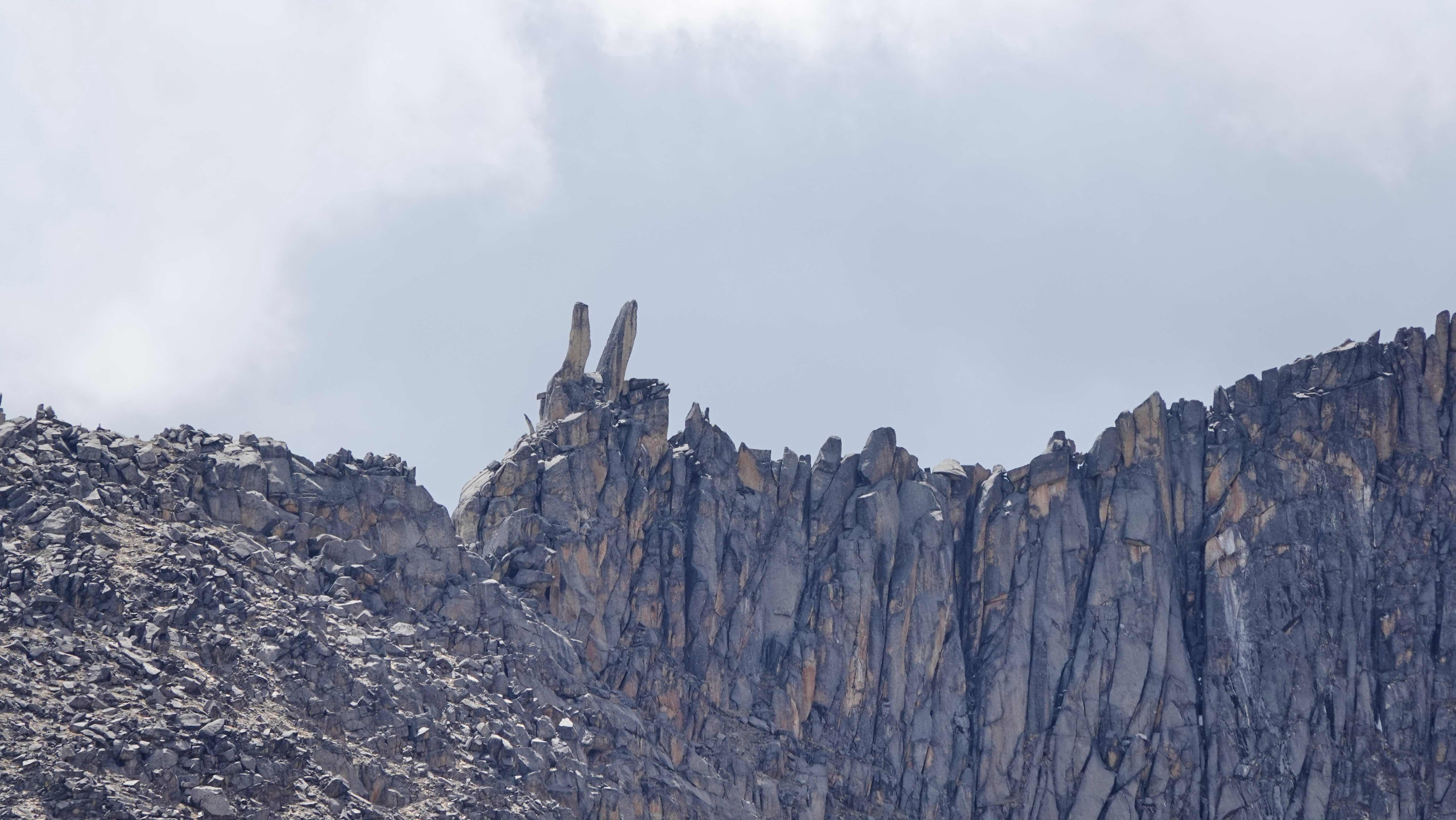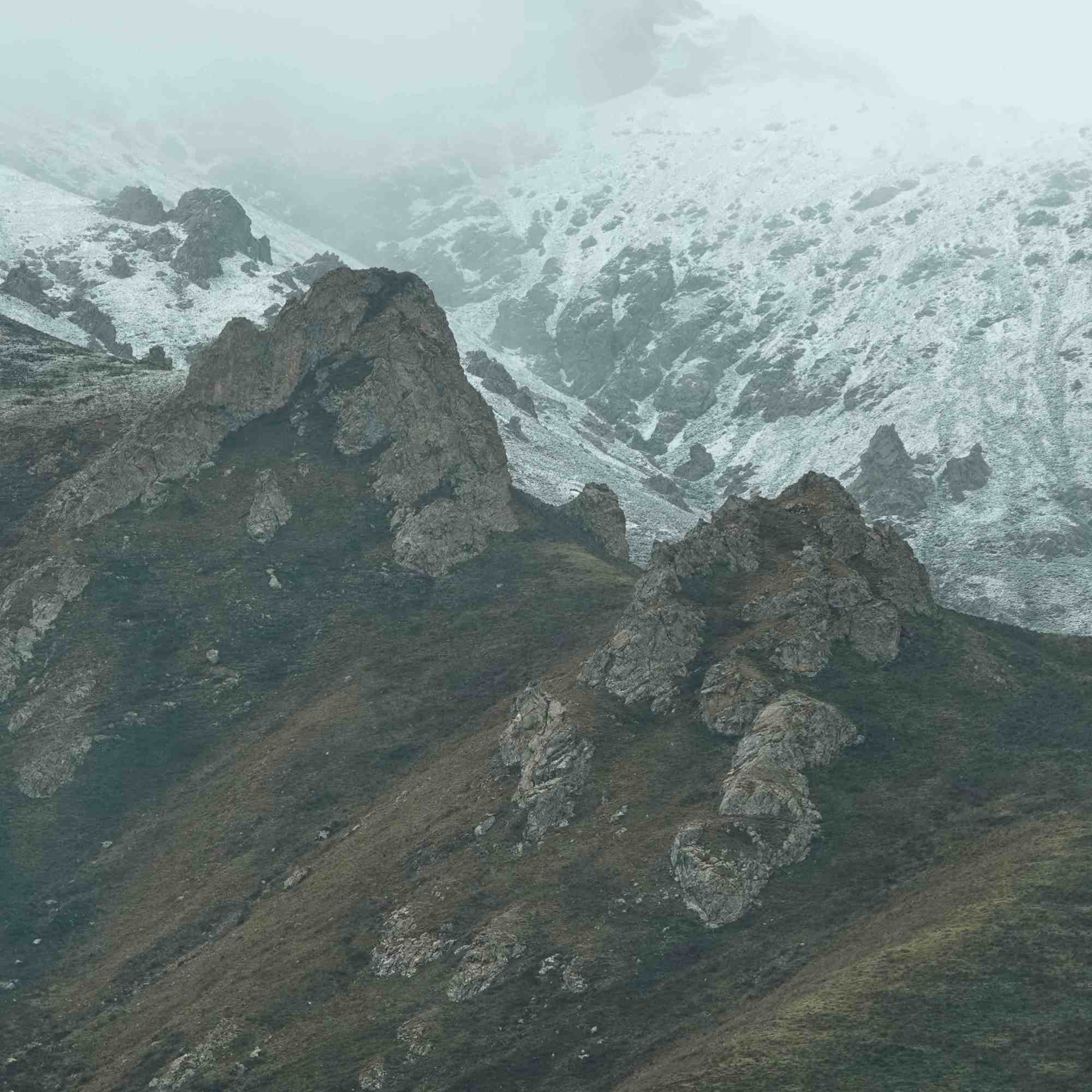 Unterwegs auf dem nächsten Pass (3.800 m) fängt es an zu schneien und hüllt die Berge in grauweißes Licht.