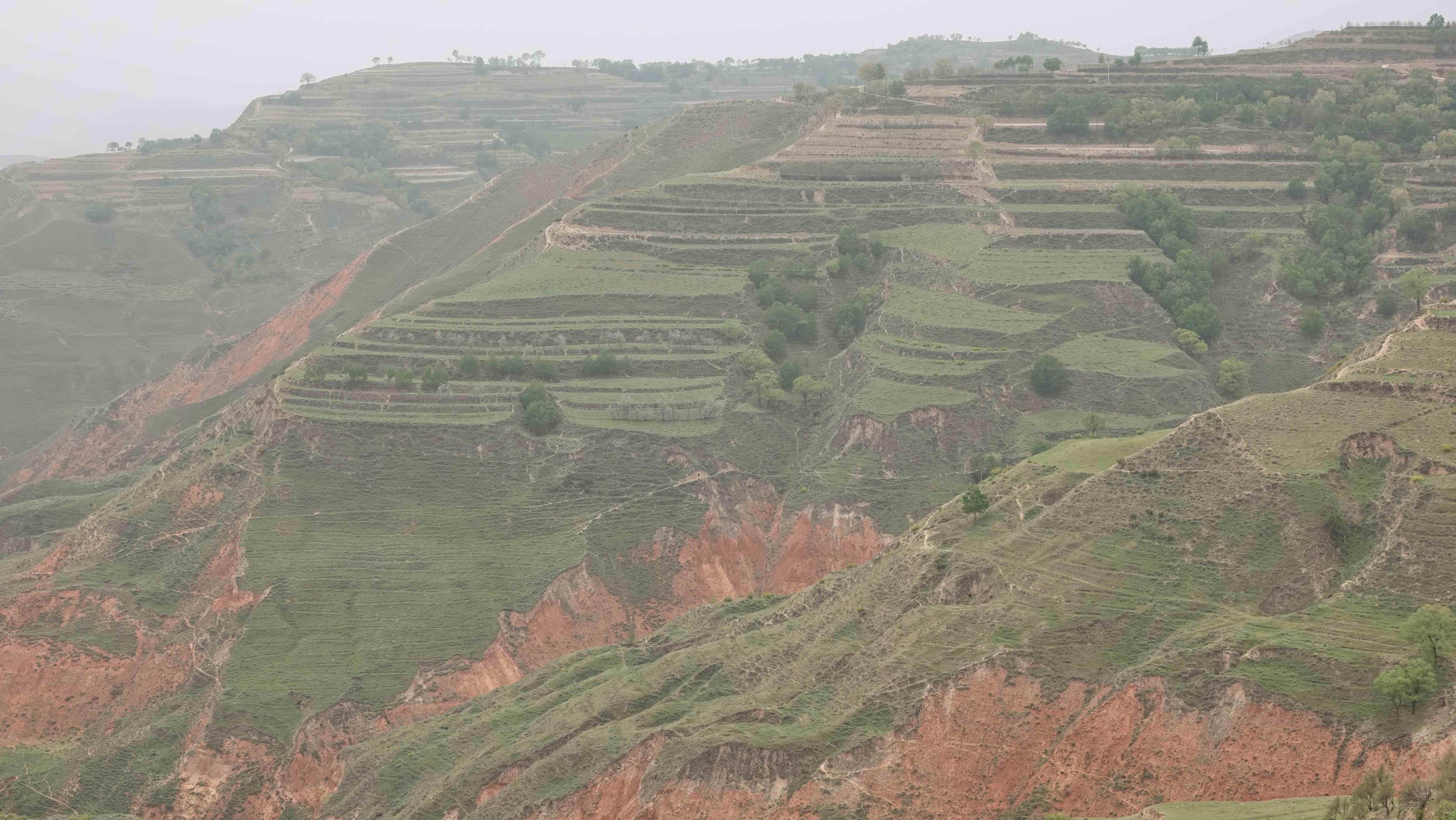 Den Rest der Strecke fahren wir auf Landstraßen zum Teil einspurig durch tolle Landschaft: rote Felsen, mit hunderten von bewirtschafteten Terrassen.