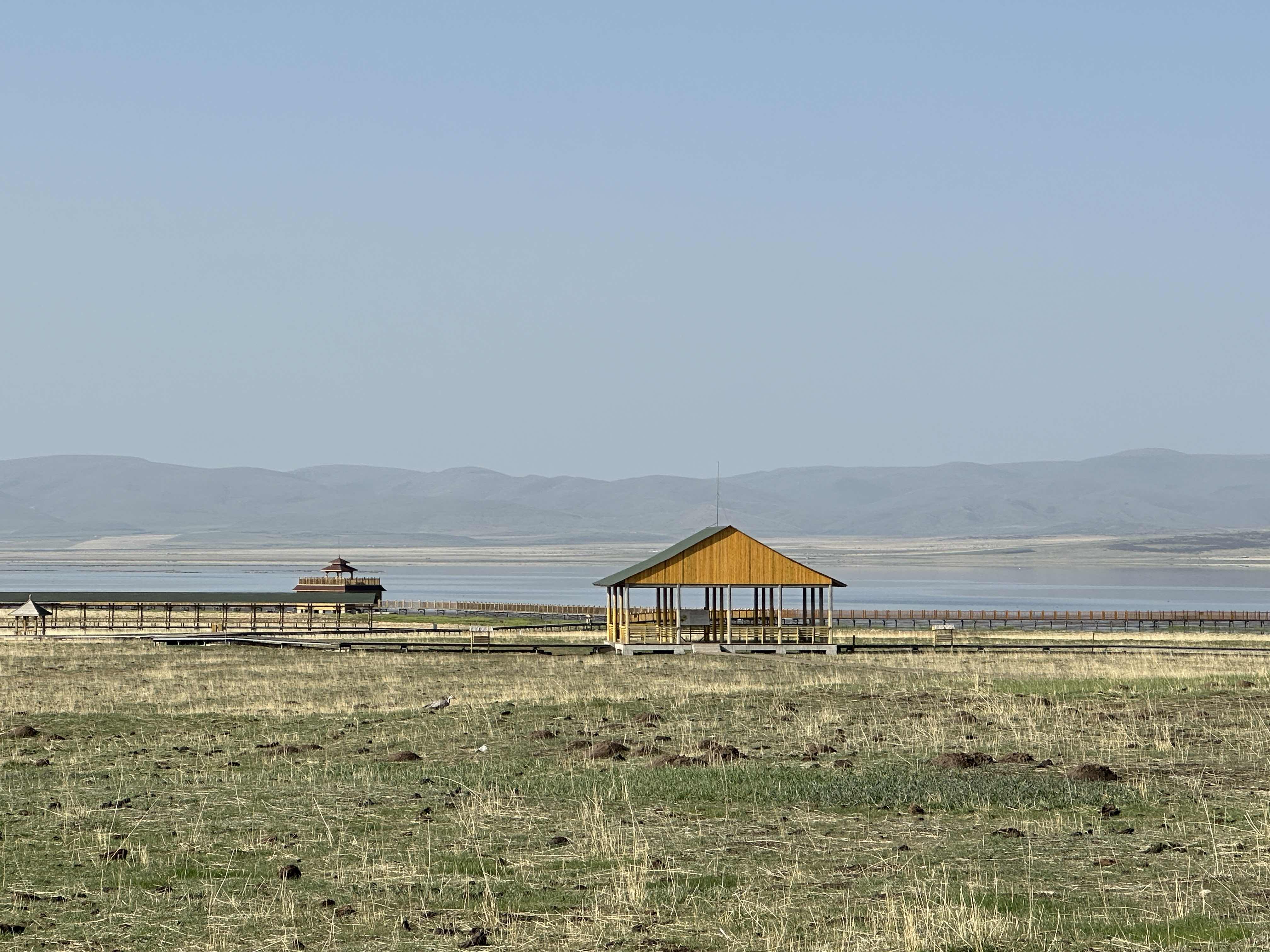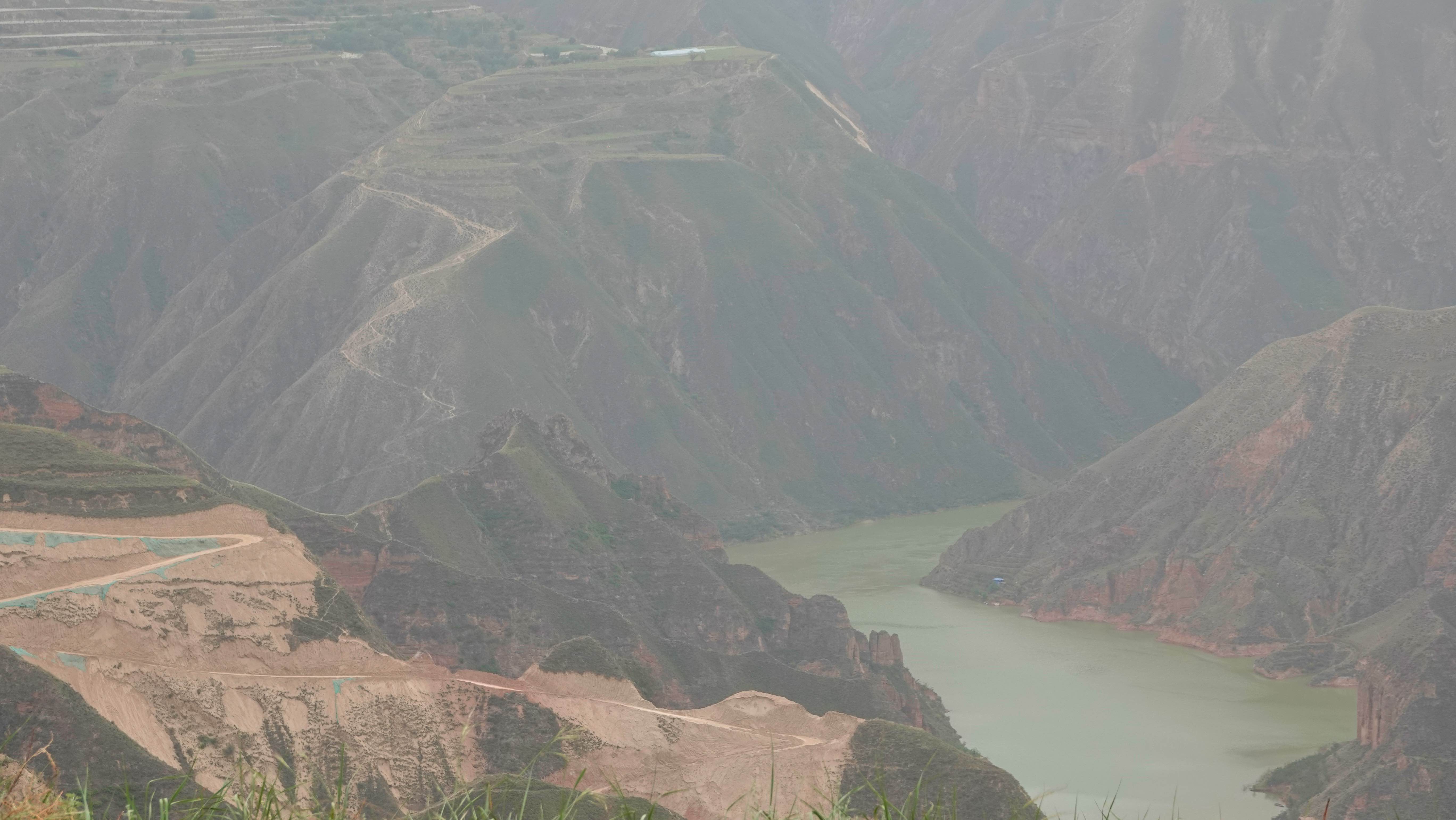 Auf dem Weg nach Gahai fahren wir entlang des Gelben Flusses und machen einen Fotostopp an der monumentalen Brücke.
