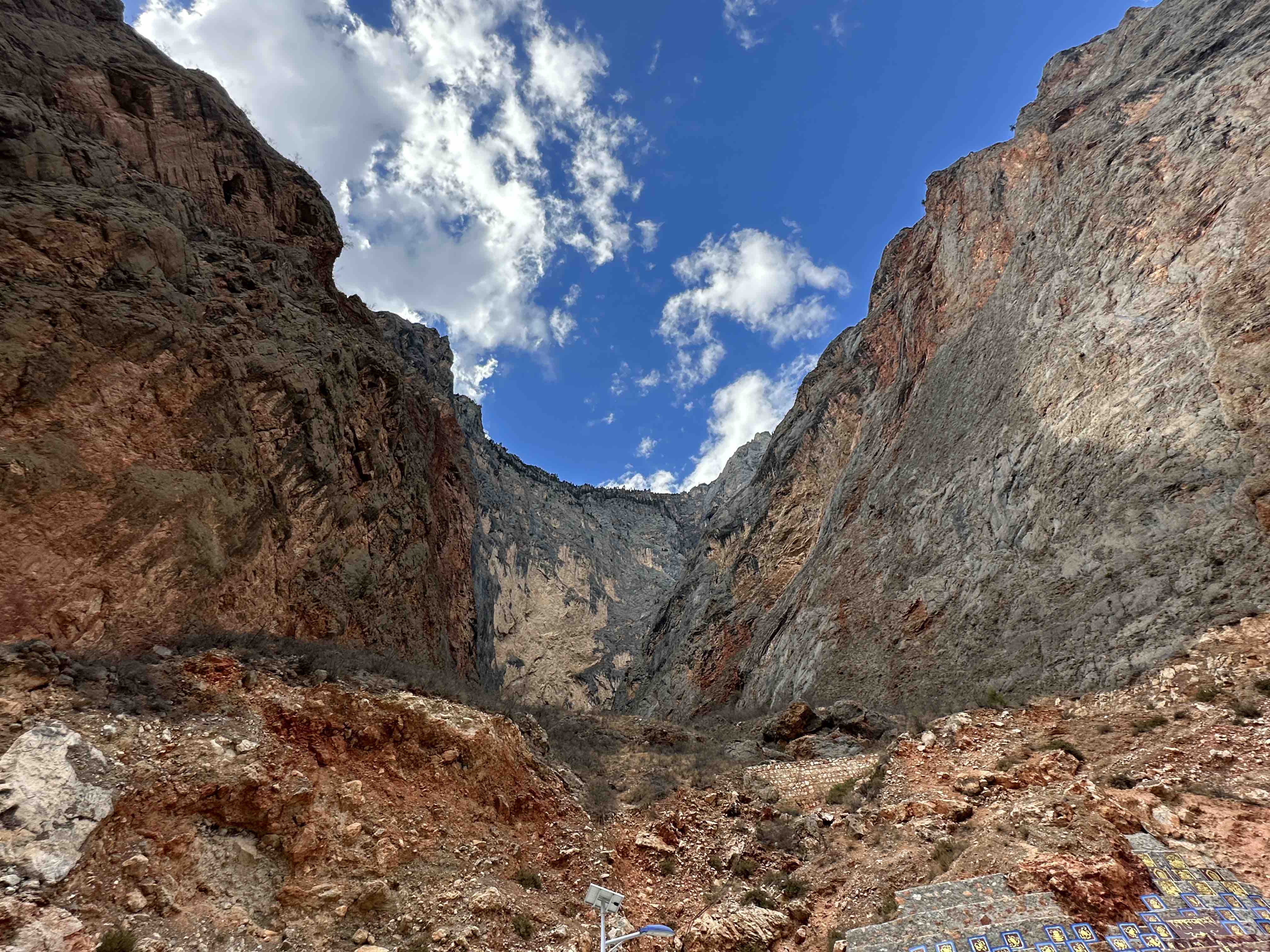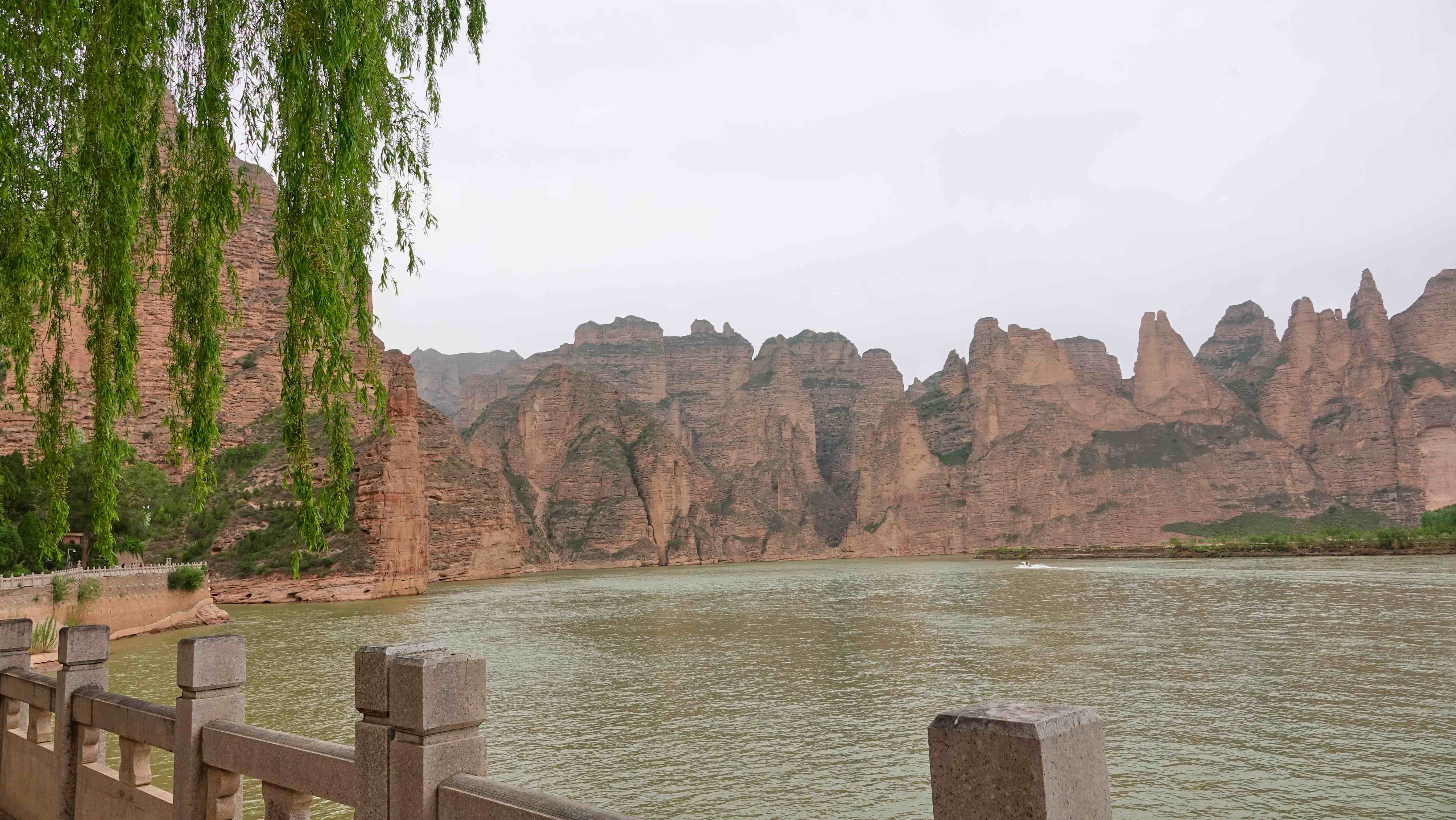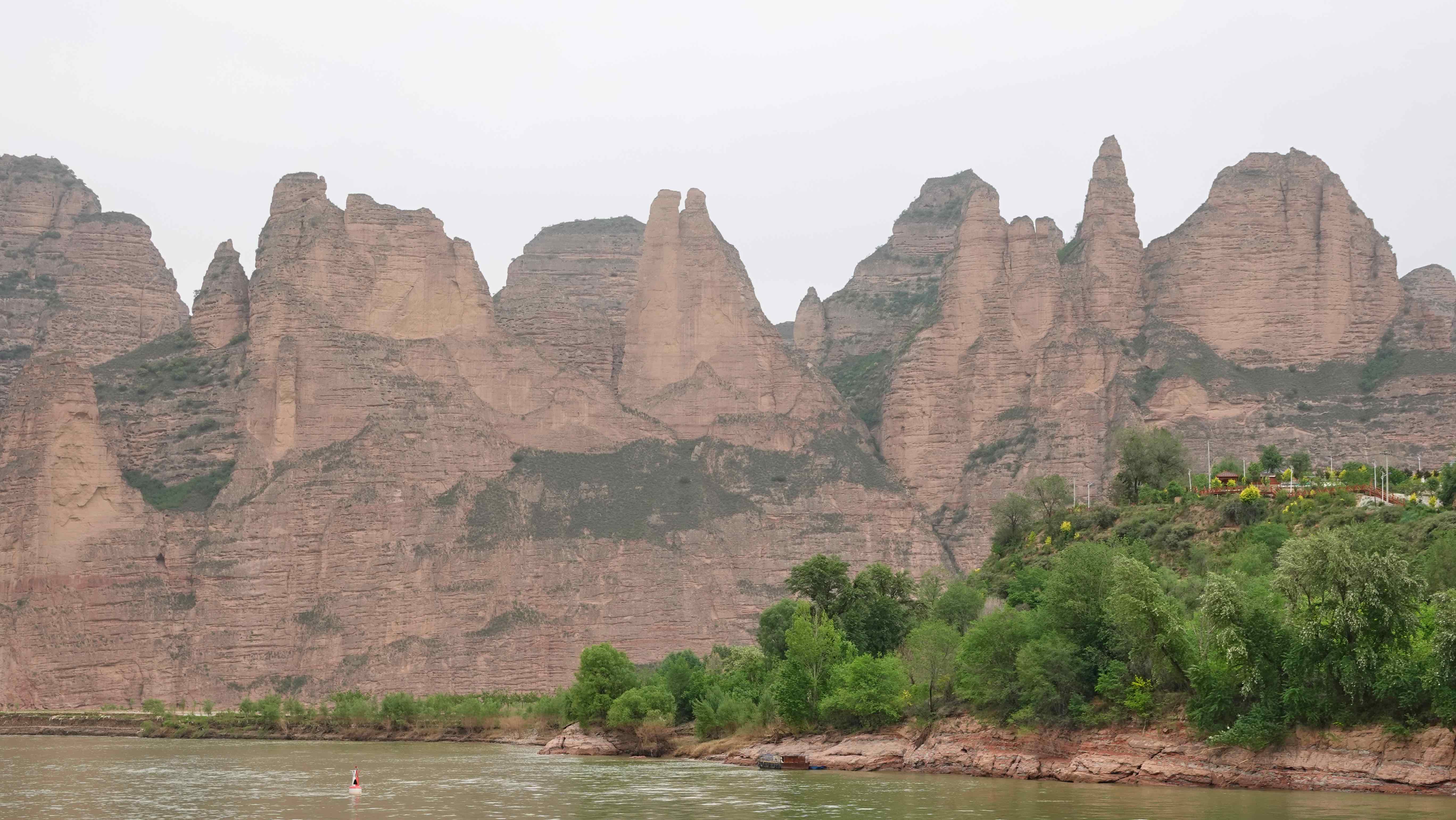 Wir erreichen den Gelben Fluss und die unglaubliche Kulisse, die ihn umgibt. Steil aufragende, braunrote Wände, zum Teil fingerartig in den Himmel weisend – überwältigend!