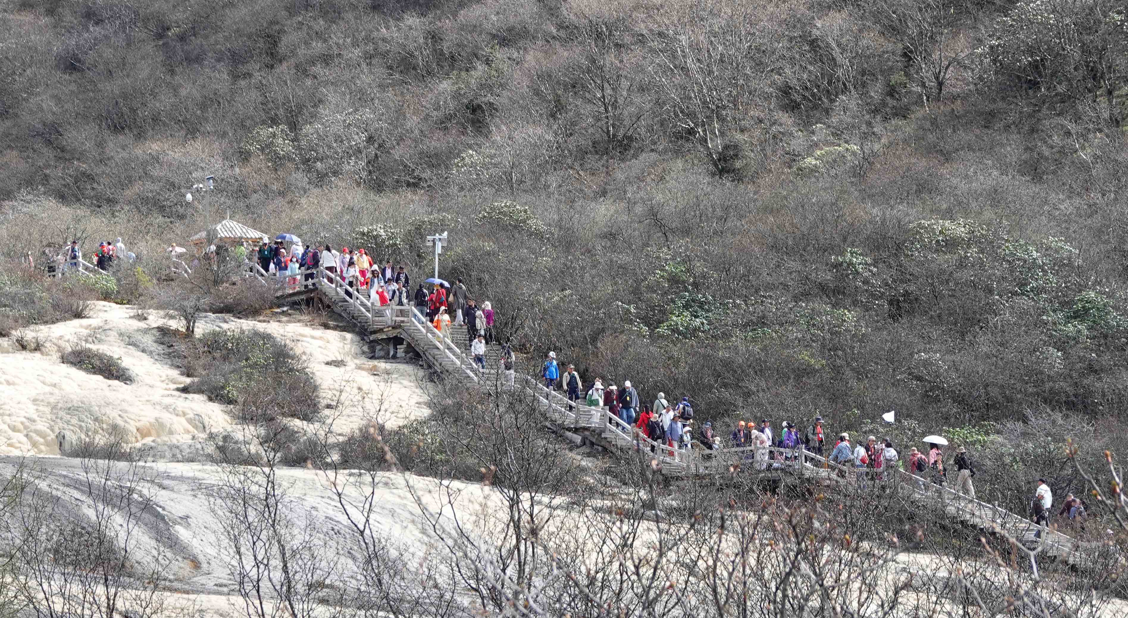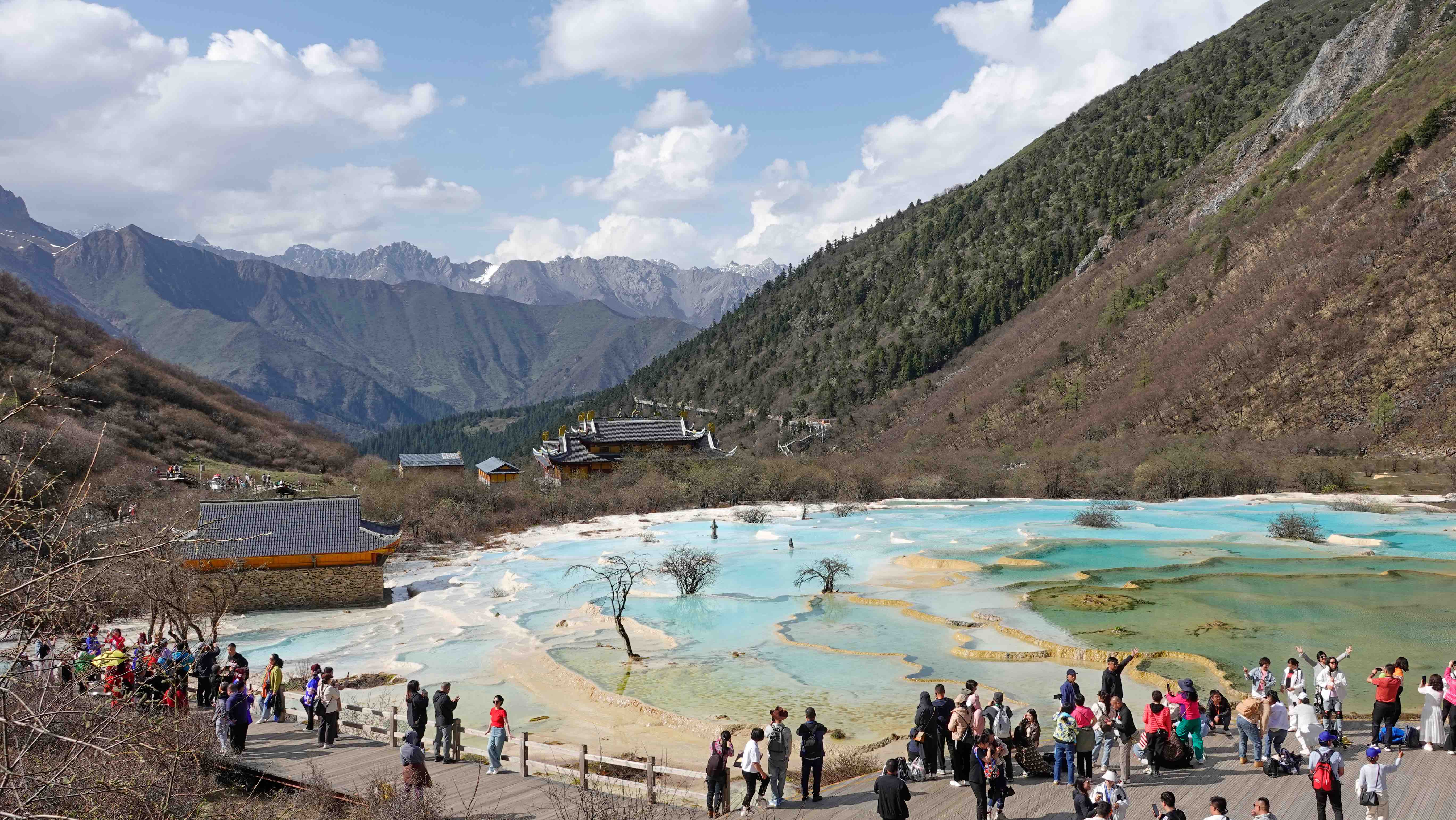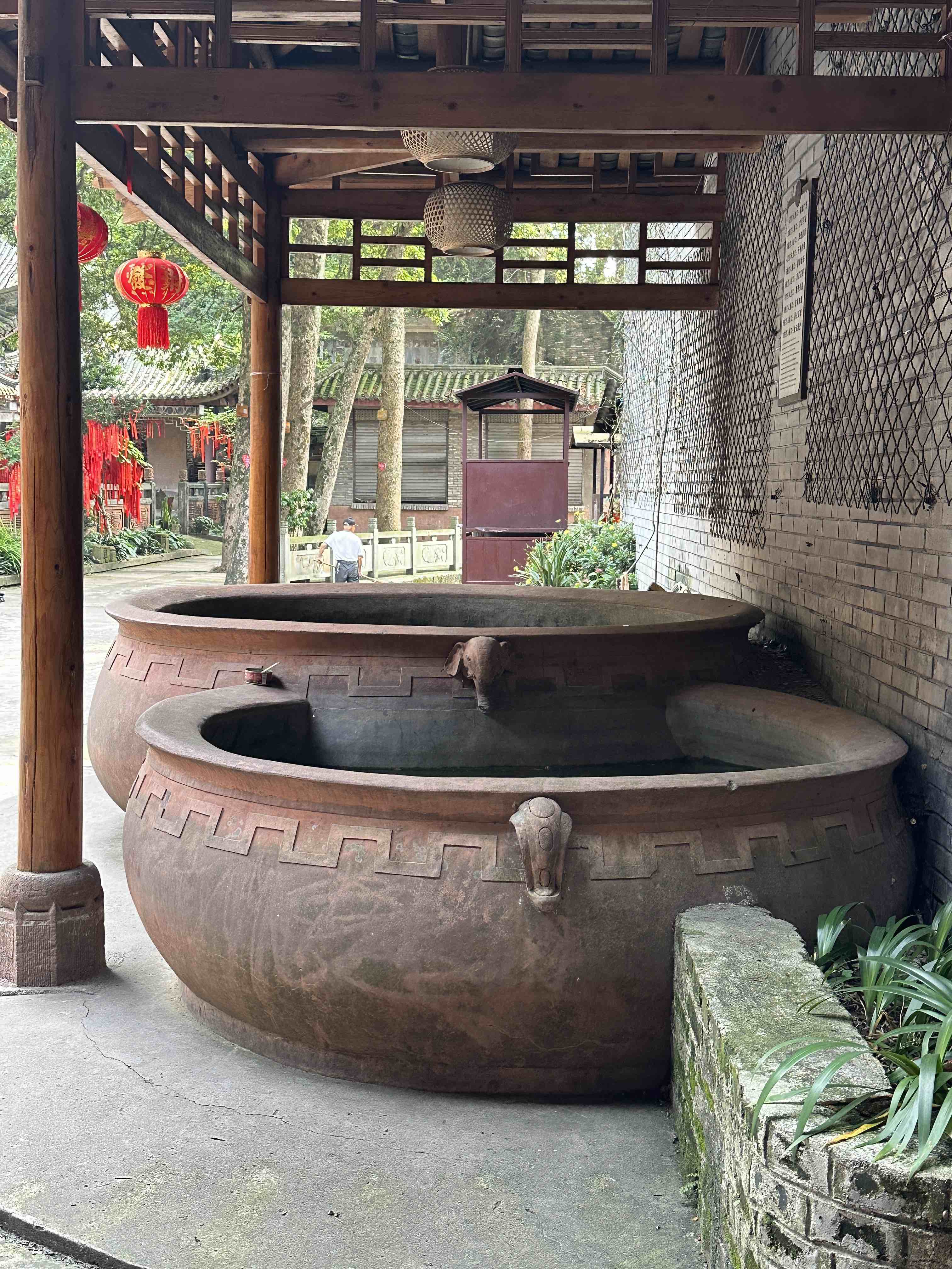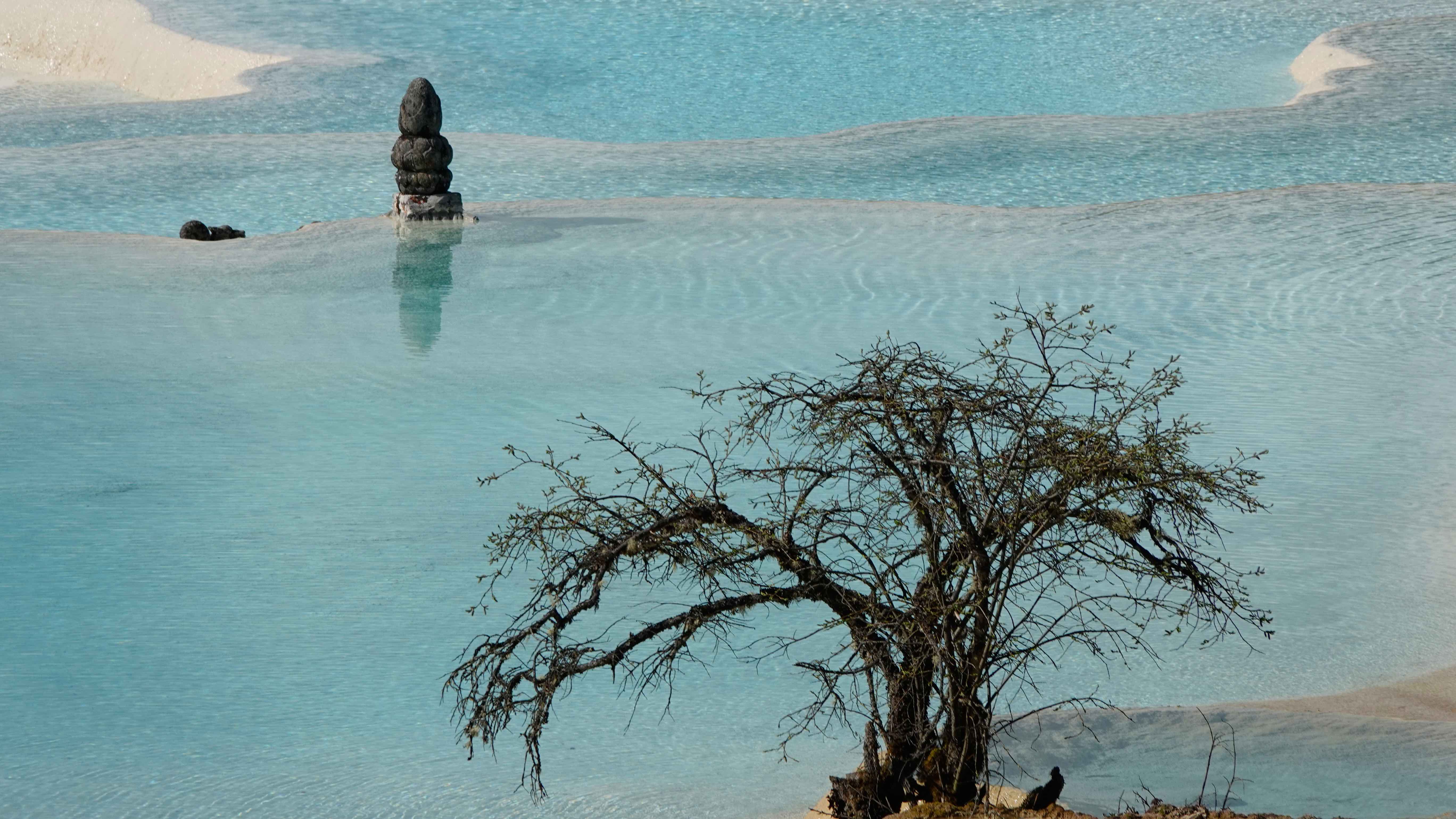 Anschließend fahren wir noch ein Stück weiter zu den White Water Terraces, eine kleine Ausgabe der Sinterterrassen von Huanglong. Es ist unglaublich heiß und wir verzichten auf eine weitere Kraxeltour.