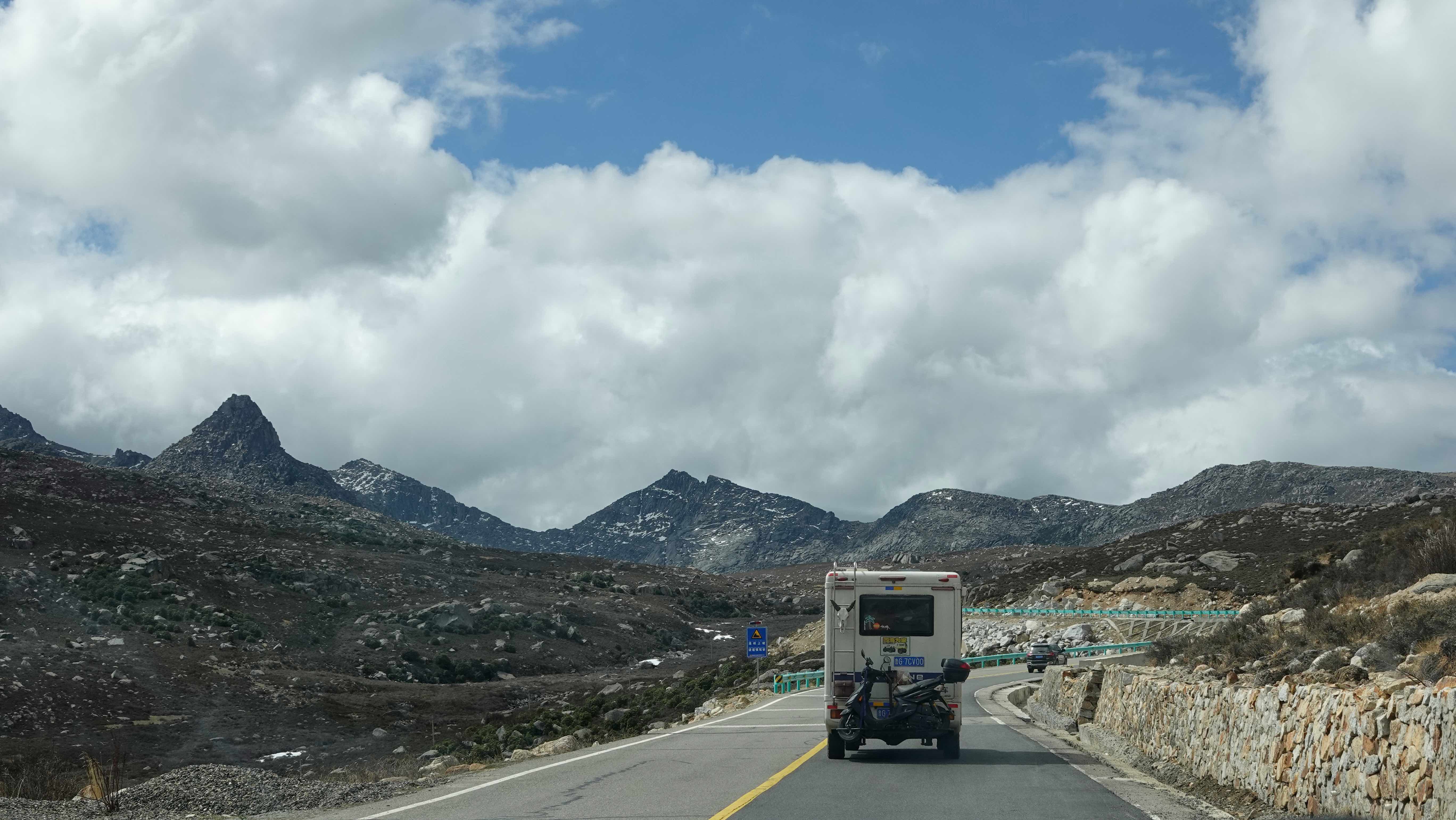 Die Weiterfahrt führt uns nach Süden durchs Gebirge mit 3.800 m hohen Pässen. Die Lastwagen quälen sich die Berge hoch und werden halsbrecherisch überholt.