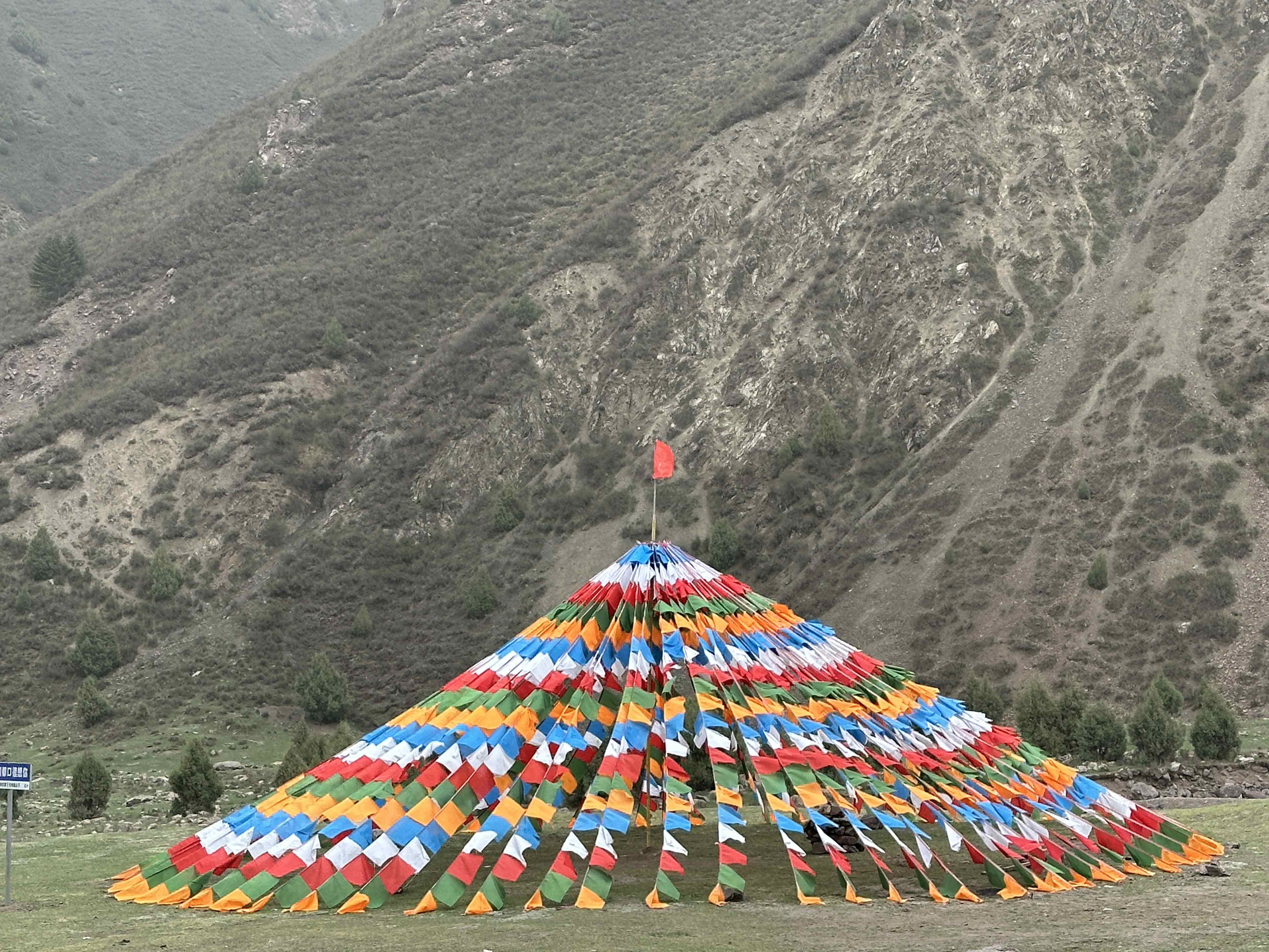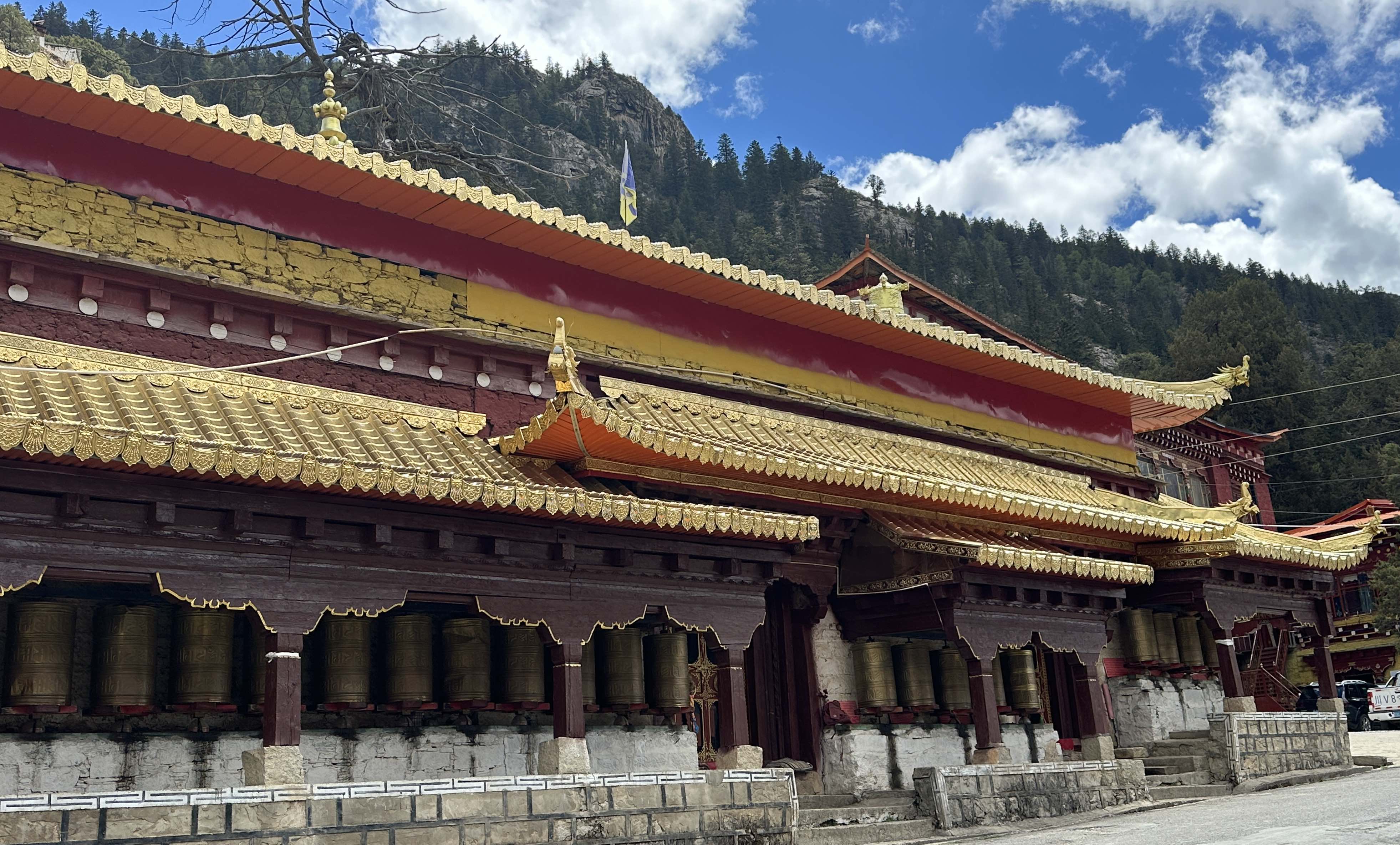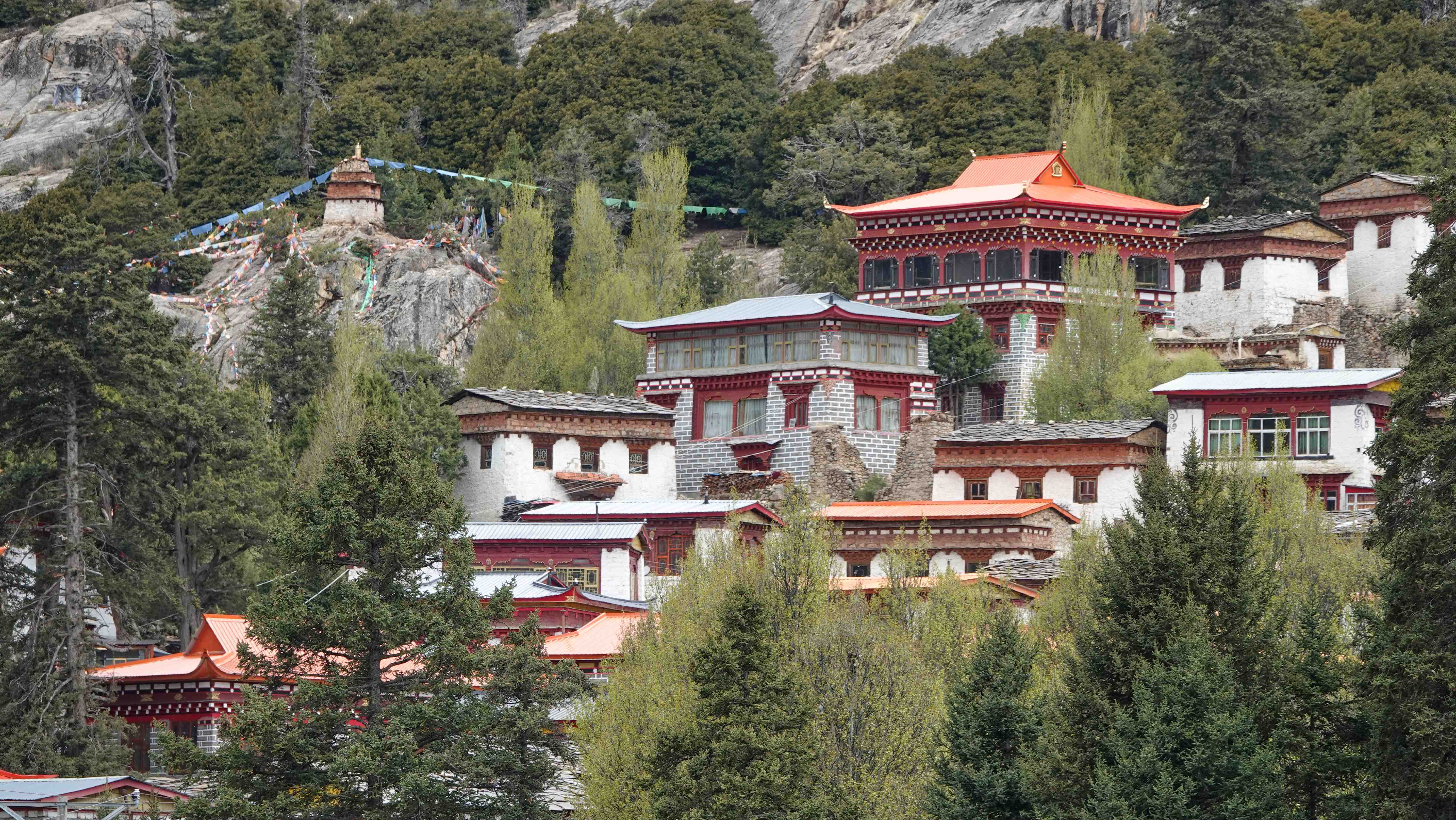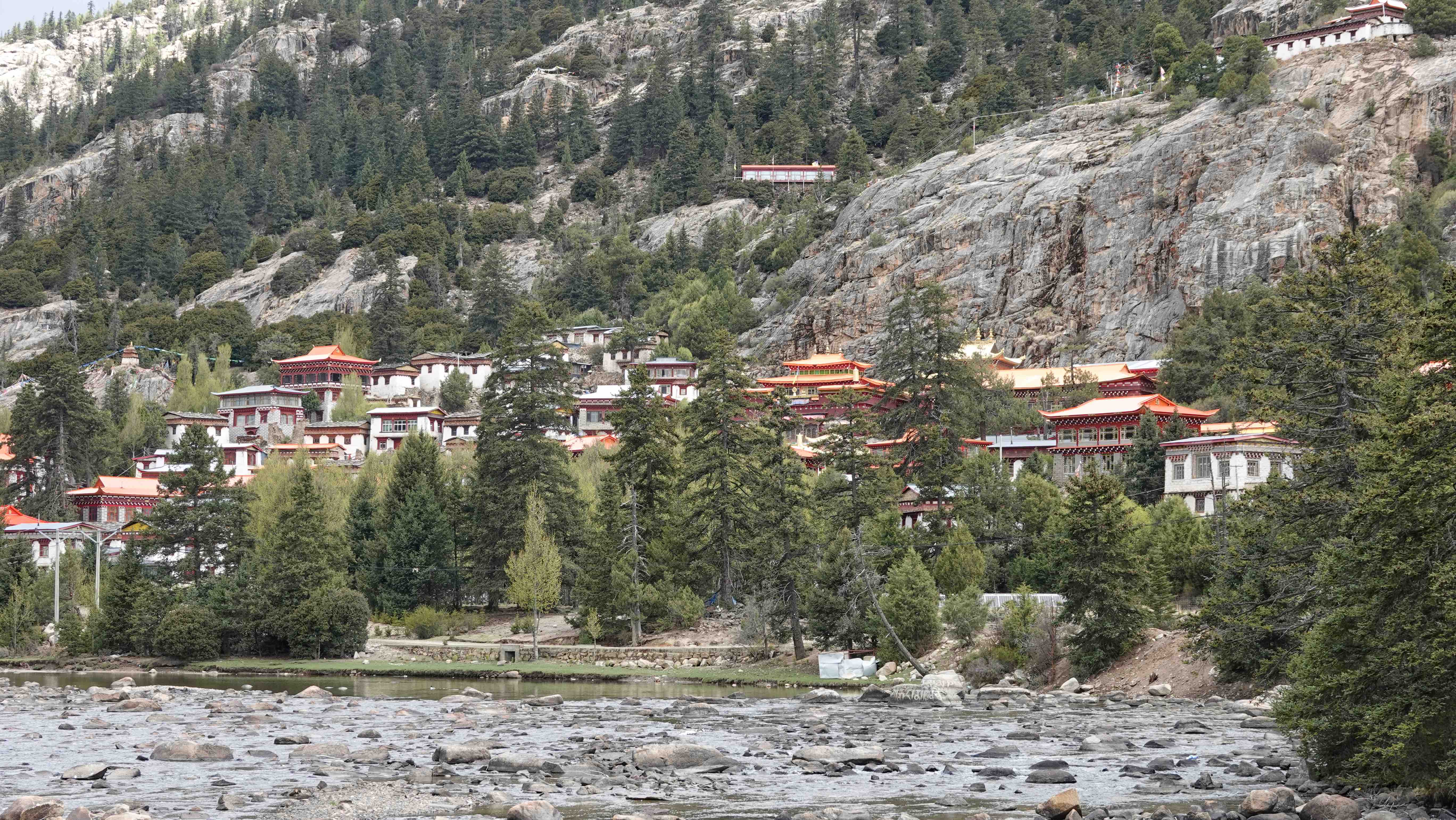 Es geht immer weiter südwärts, durch die grandiose Bergwelt des Himalaya. In den Bergen sind immer wieder hübsche Dörfer im tibetischen Stil zu sehen, viele Tempel und die hübschen tibetischen Gebetsfahnen. Das Aufhängen dieser Fahnen soll den Krieg vertreiben und den Frieden auf die Erde bringen.