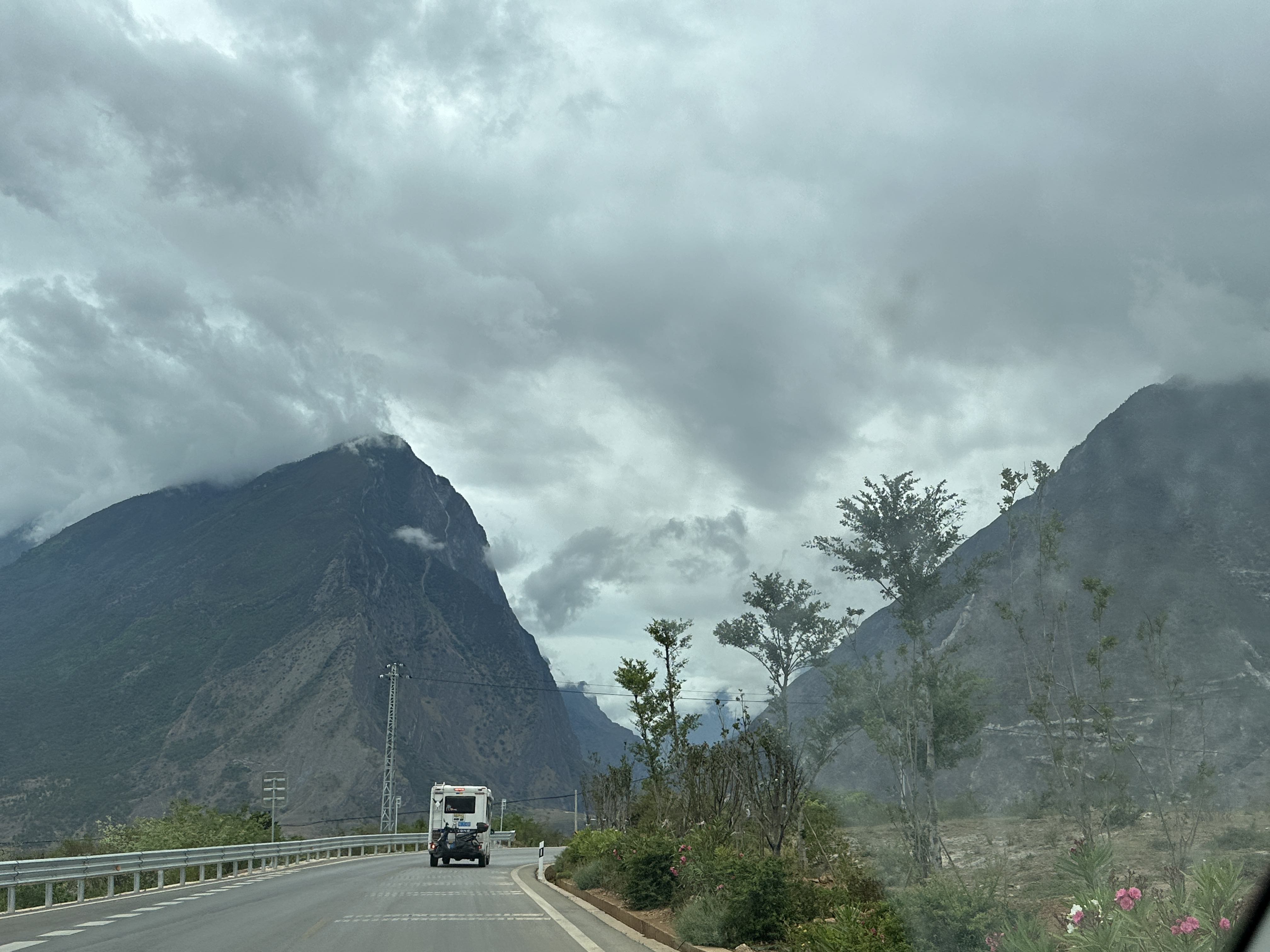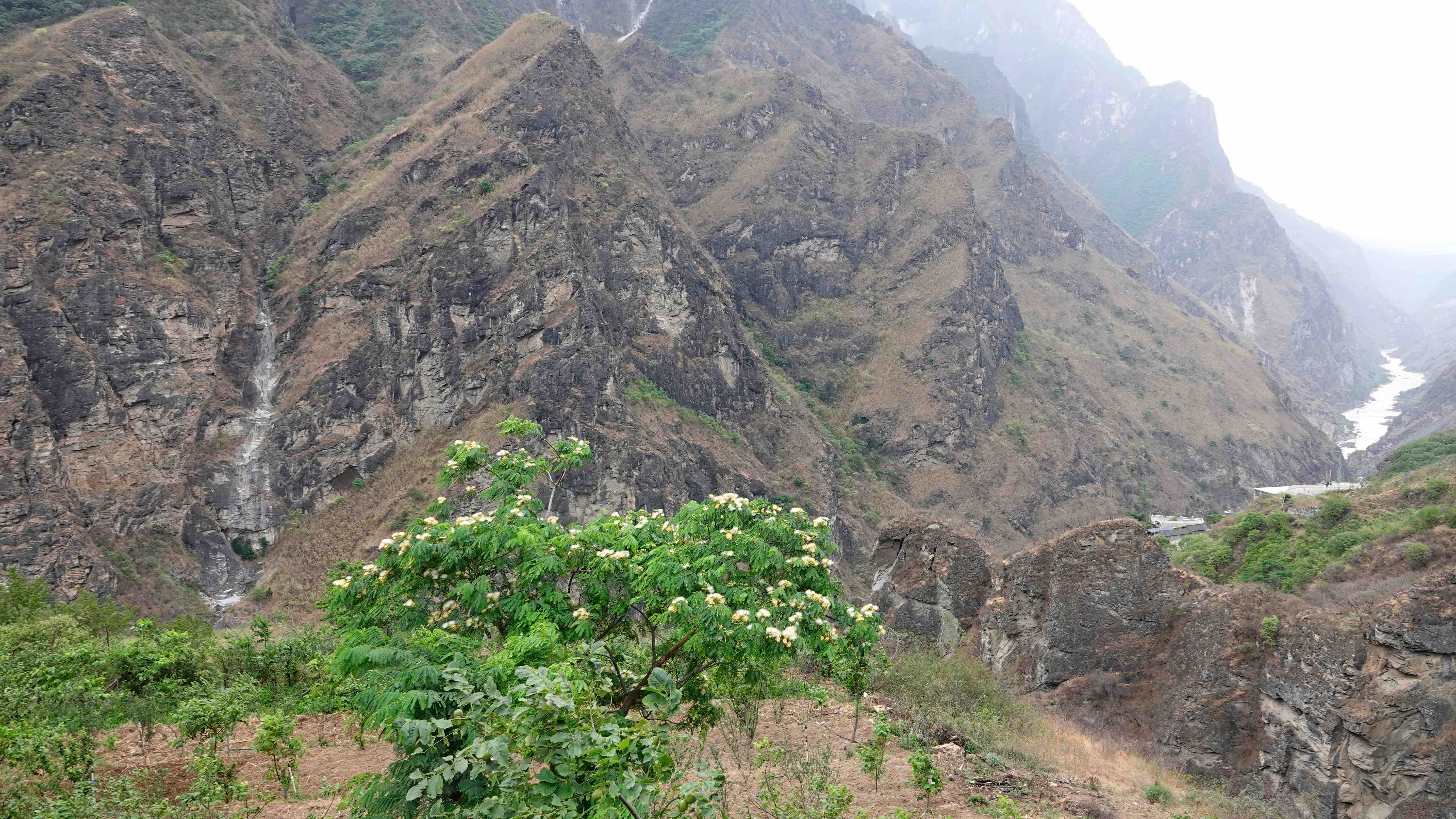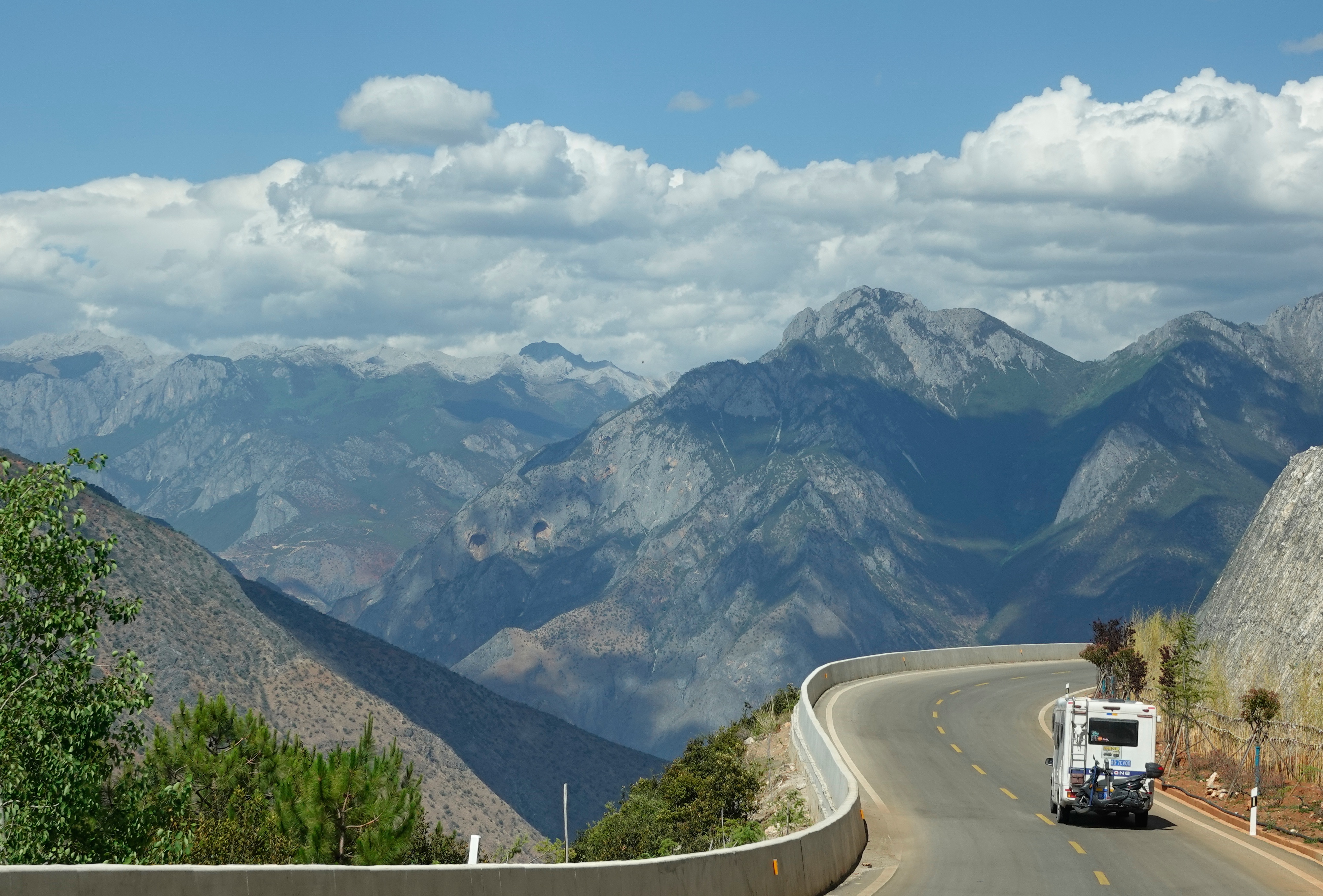 Auf dem Weg nach Lijiang fahren wir an der Tigersprungschlucht vorbei. Die Berge senken senken sich hier um 1.900 m herab.