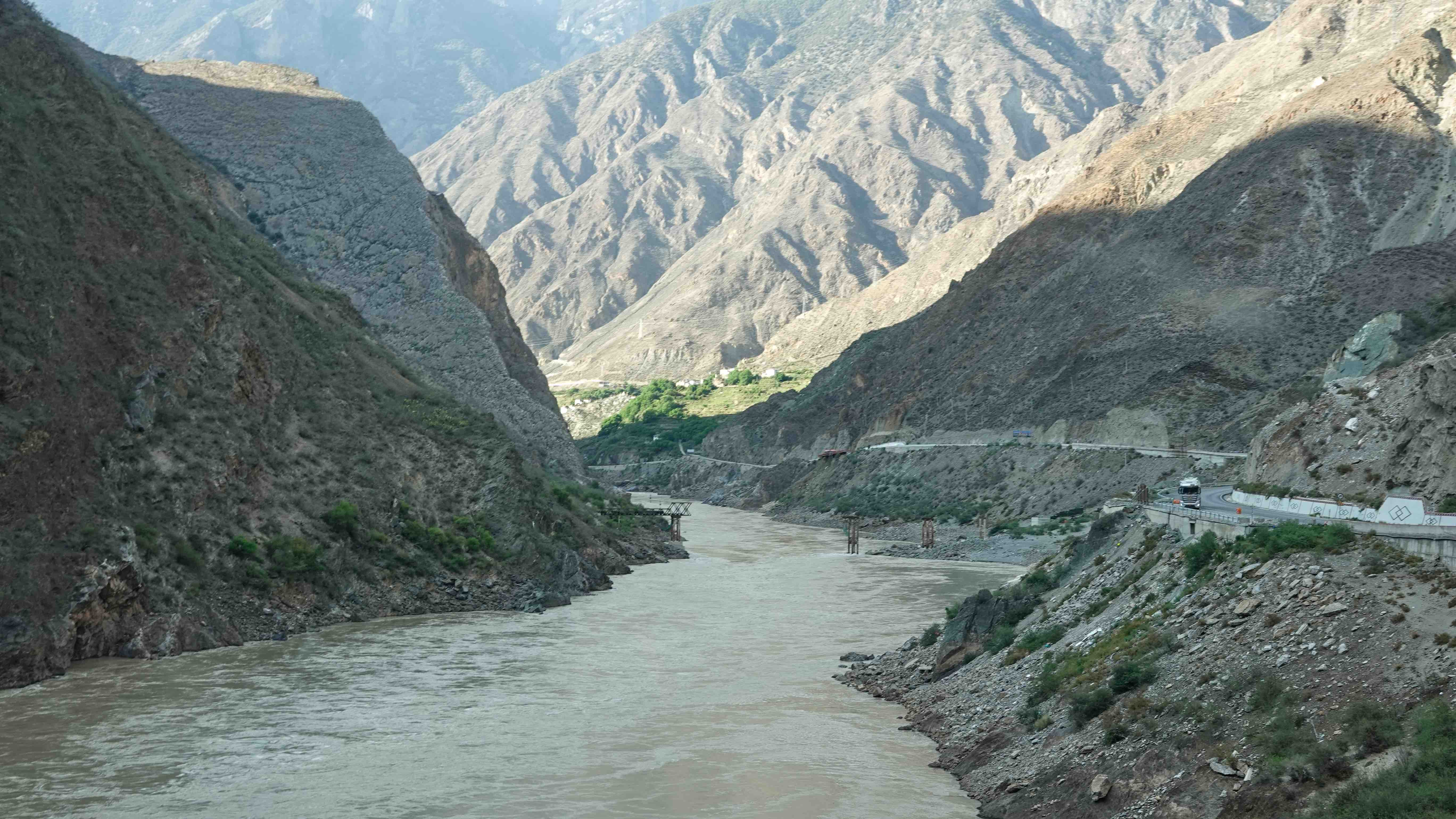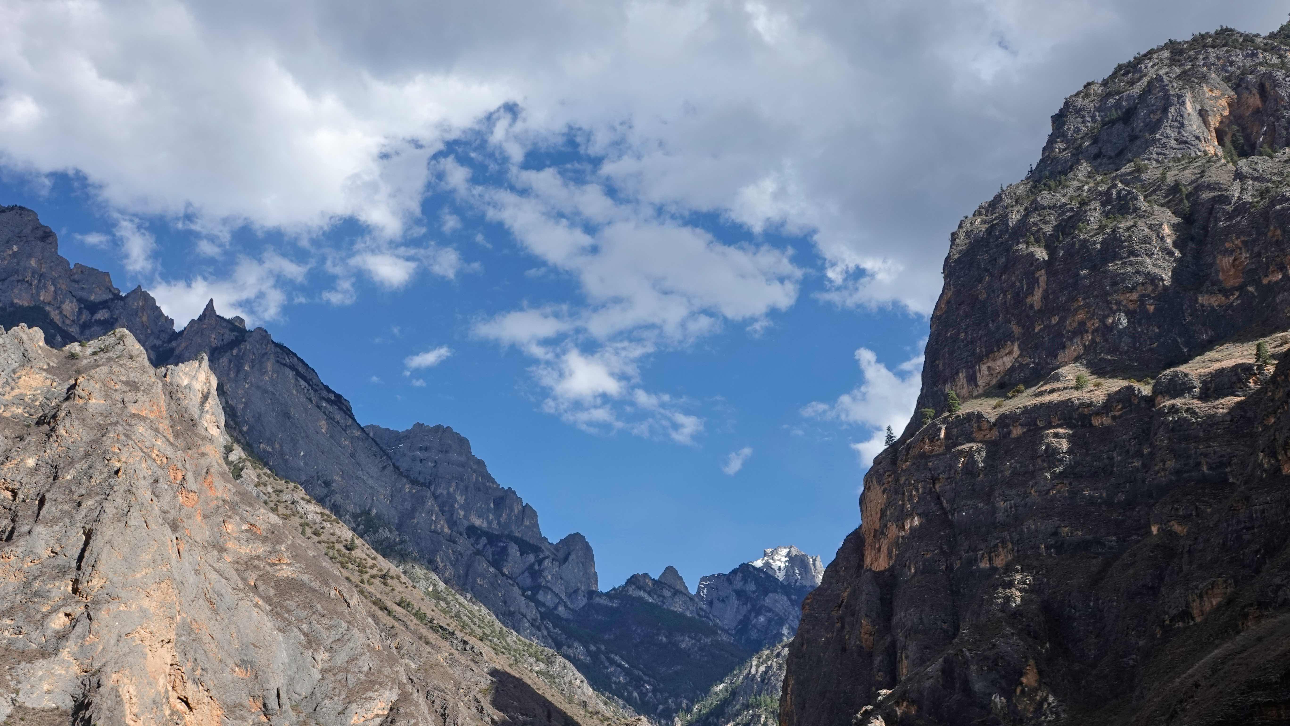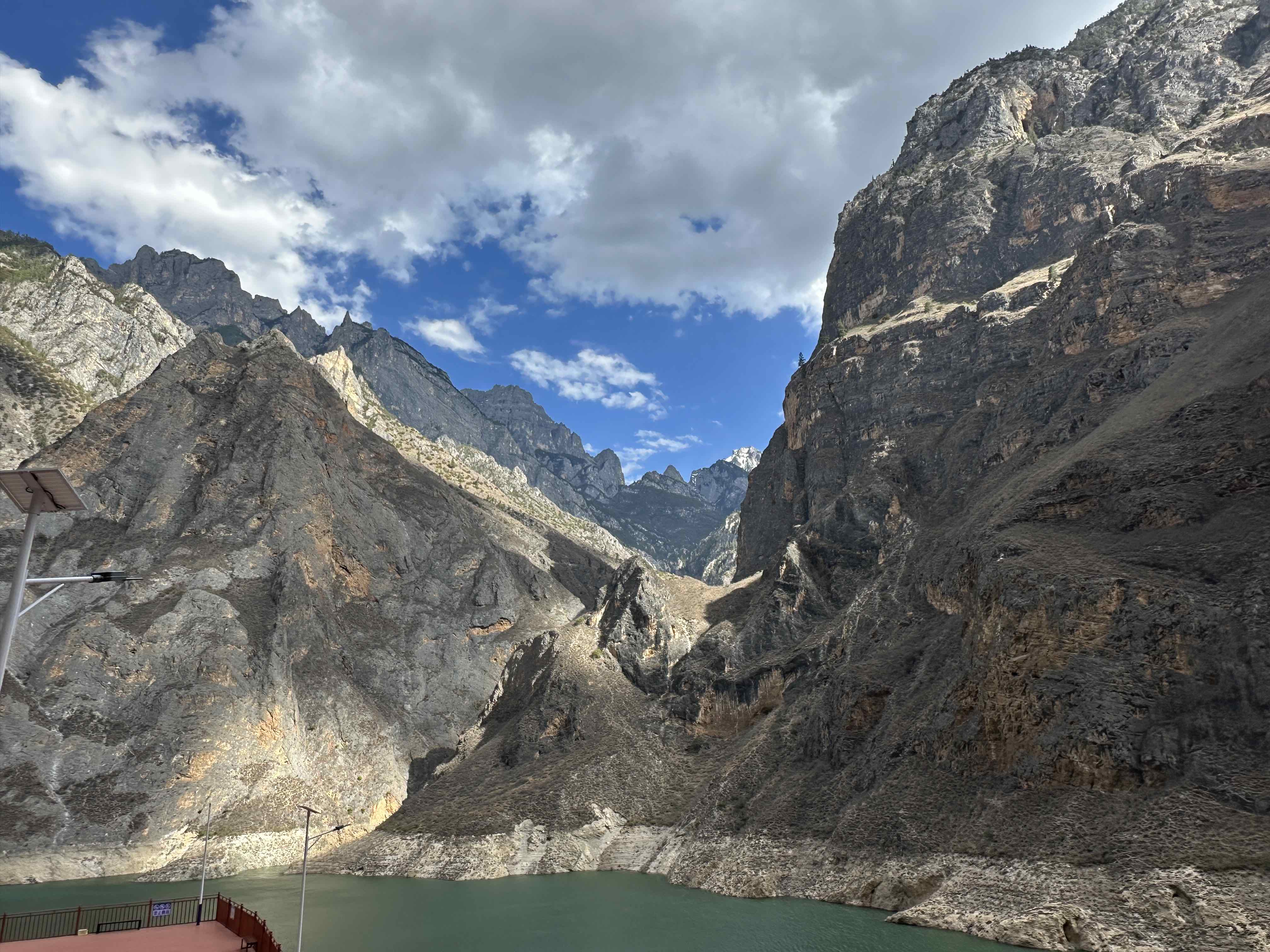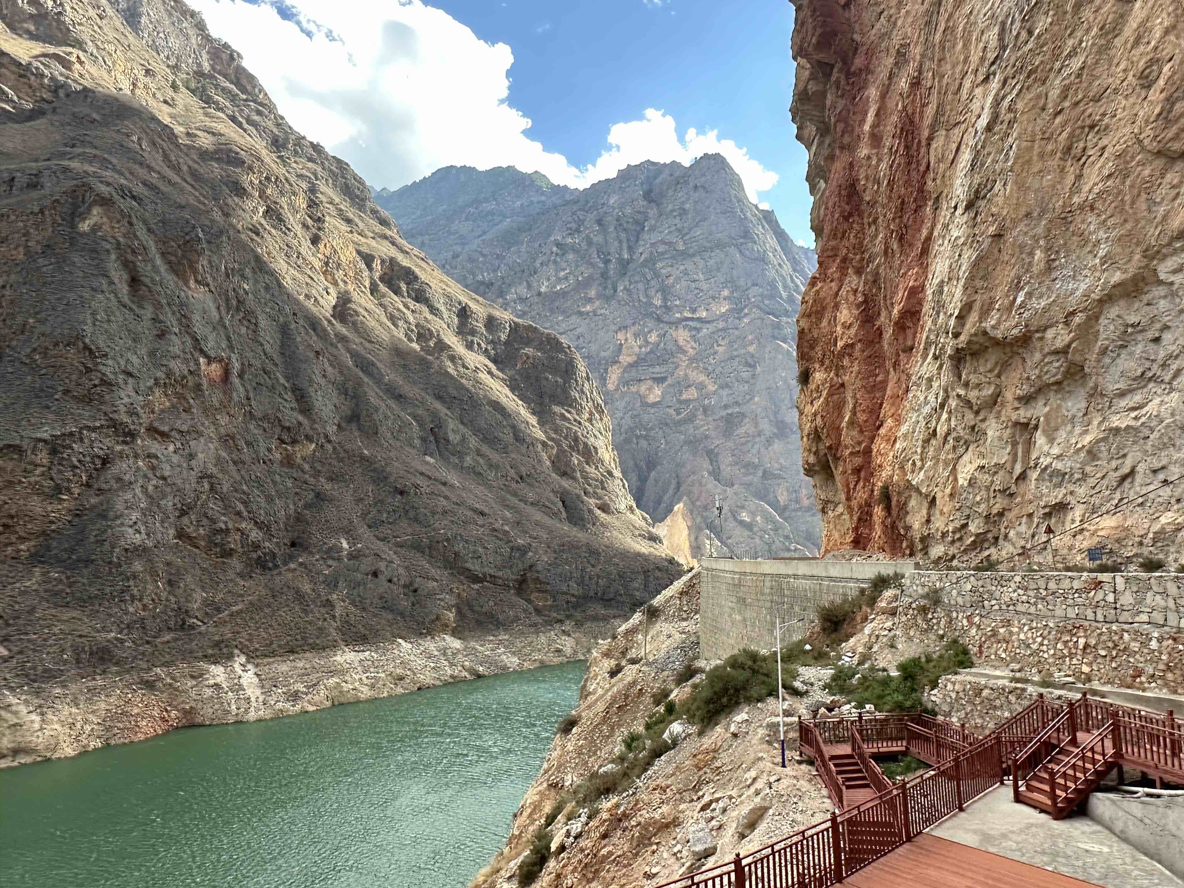 Auf dem Weg nach Lijiang fahren wir an der Tigersprungschlucht vorbei. Die Berge senken senken sich hier um 1.900 m herab.