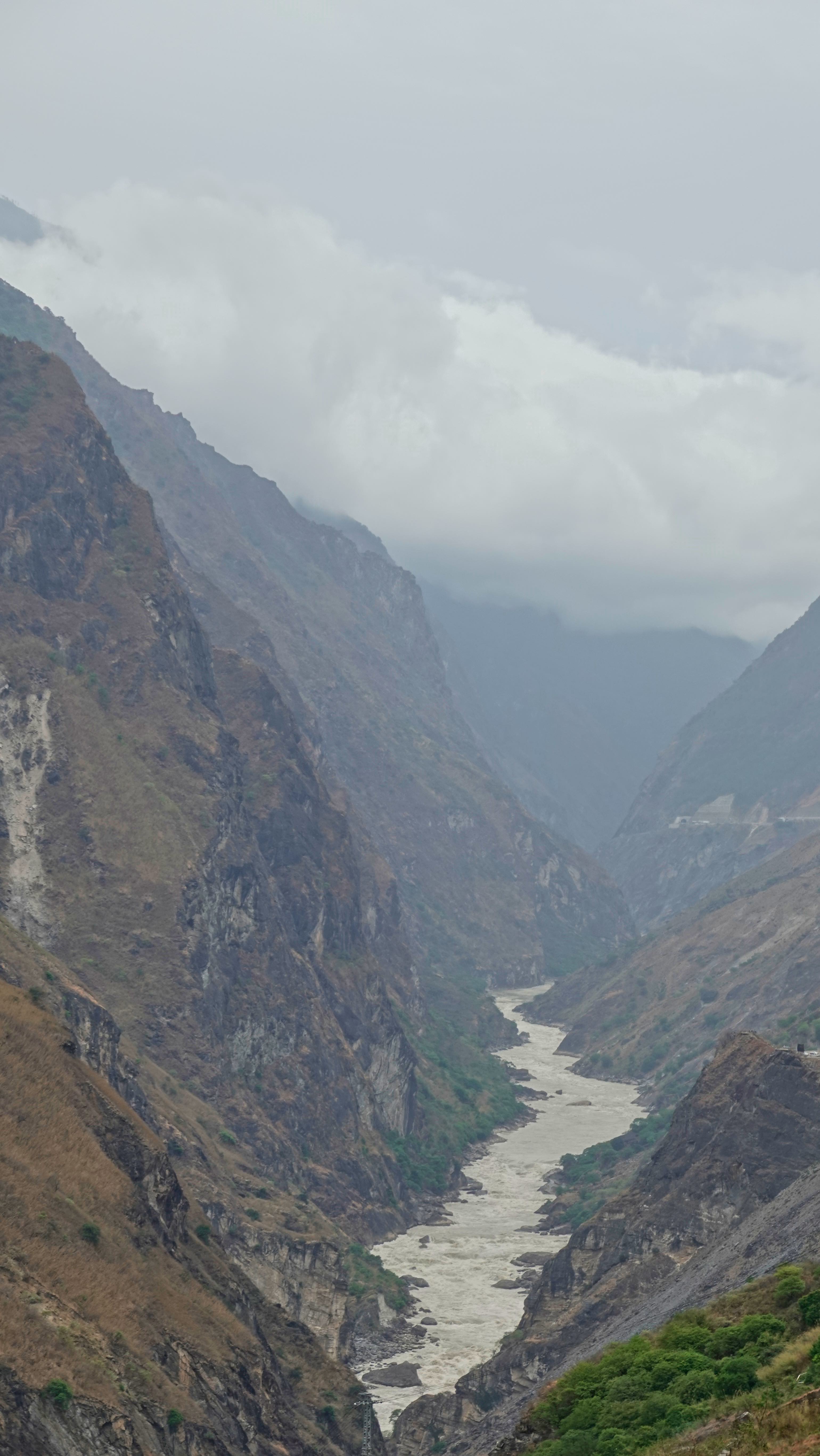 Es regnet und die Berge um uns sind wolkenverhangen. Ein kurzer Fotostopp an der wirklich beeindruckenden Schlucht genügt uns und wir verzichten darauf, zum Grund der Schlucht hinunterzulaufen um den Stein zu betrachten, der dem Tiger zu einem Sprung über die Schlucht diente.