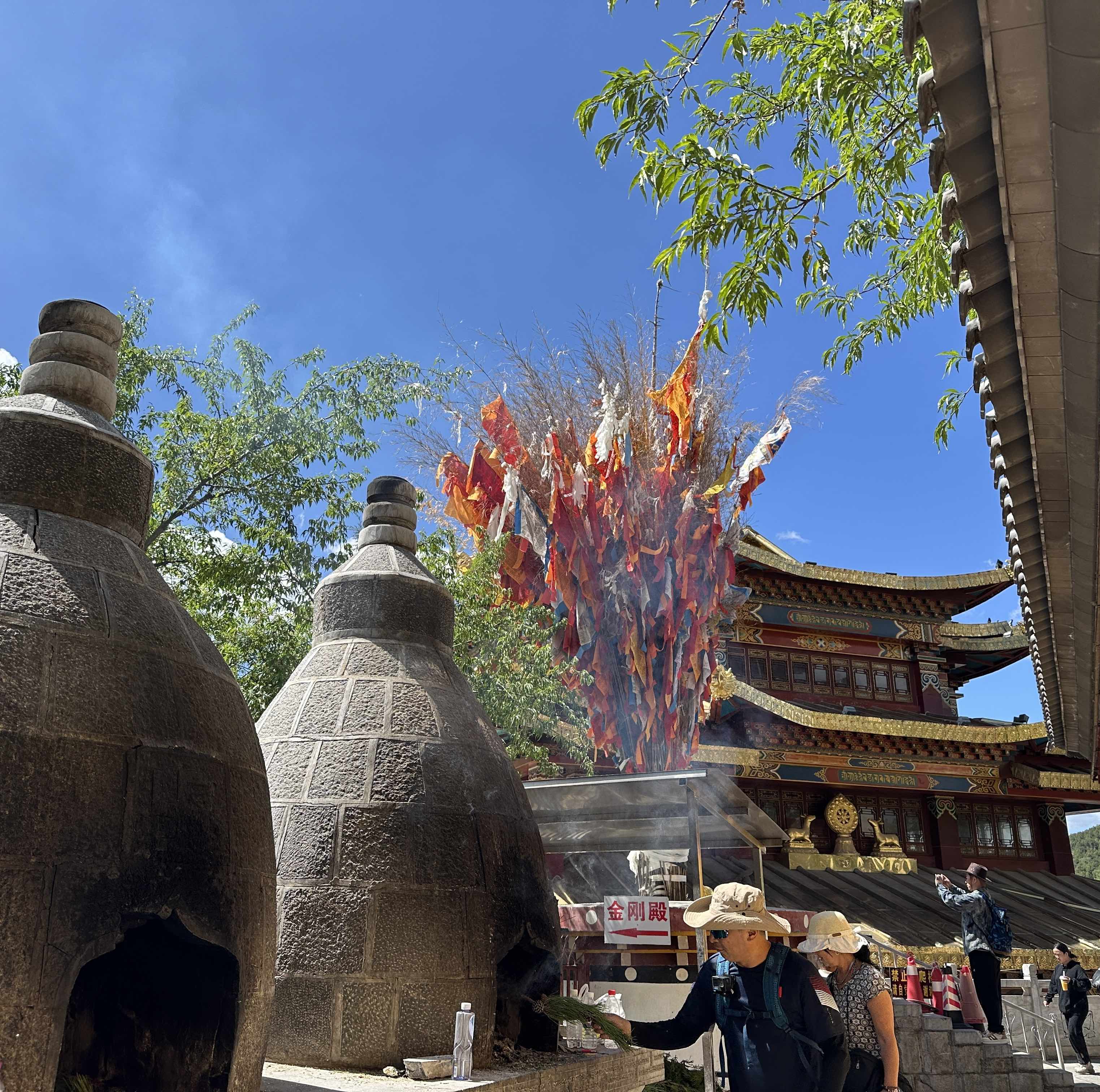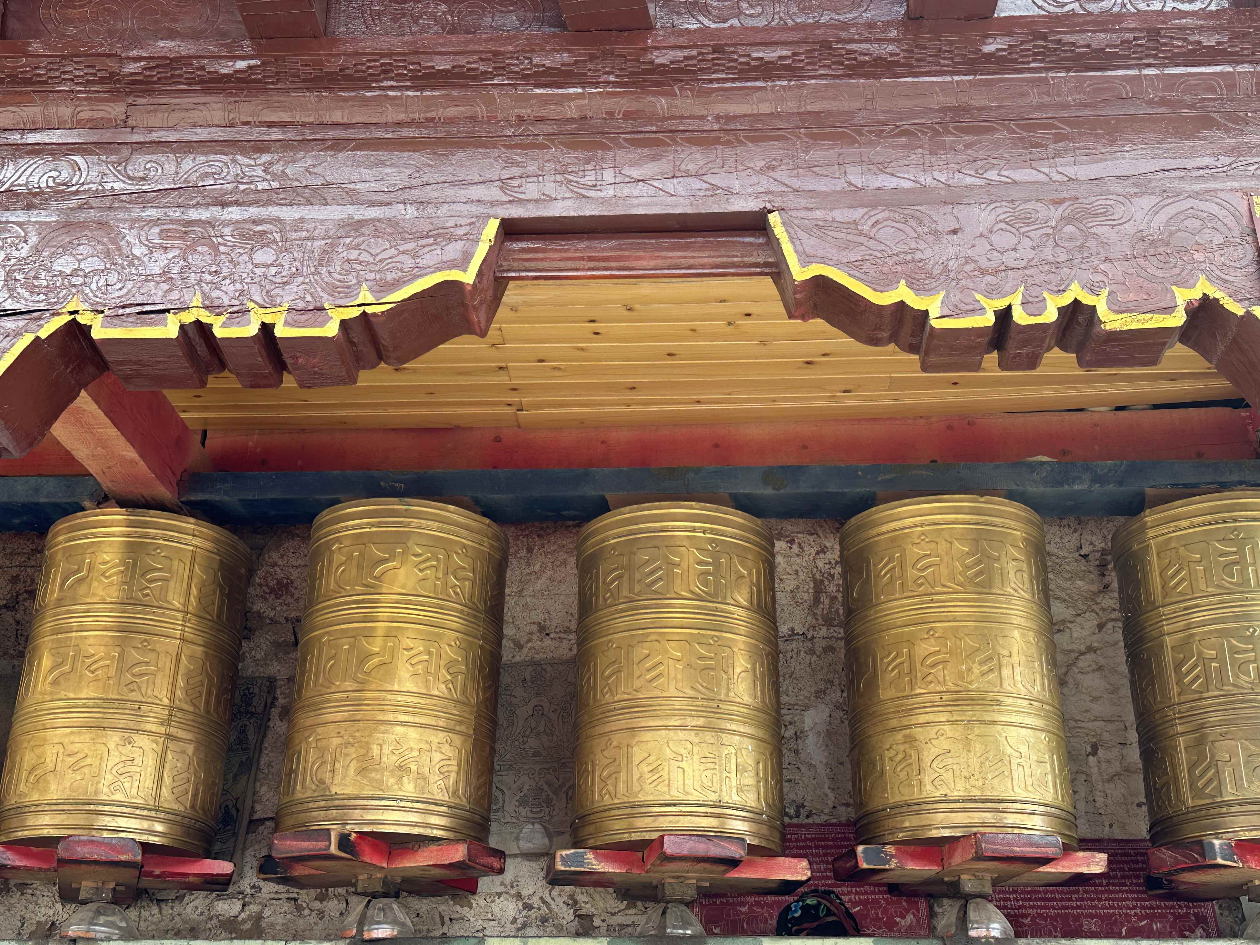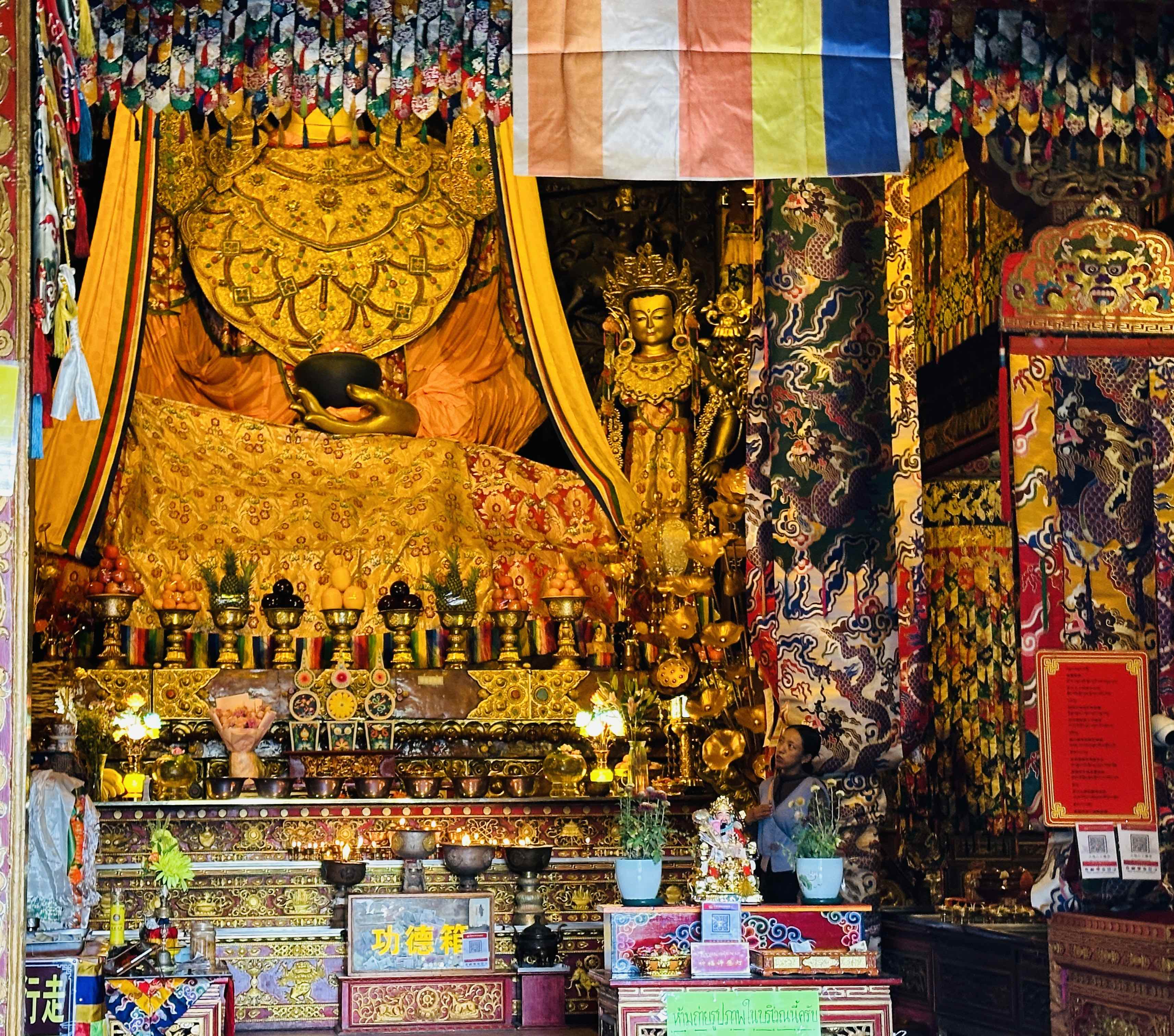 Wir besichtigen den Tempel, der mit unglaublich viel Gold ausgestattet ist, aber leider ist auch hier fotografieren verboten. Wir beteiligen uns an den diversen Ritualen, die alle irgendwie Glück bringen sollen: Kleine Zweige verbrennen, eine riesige Gebetstrommel 3x umrunden…
