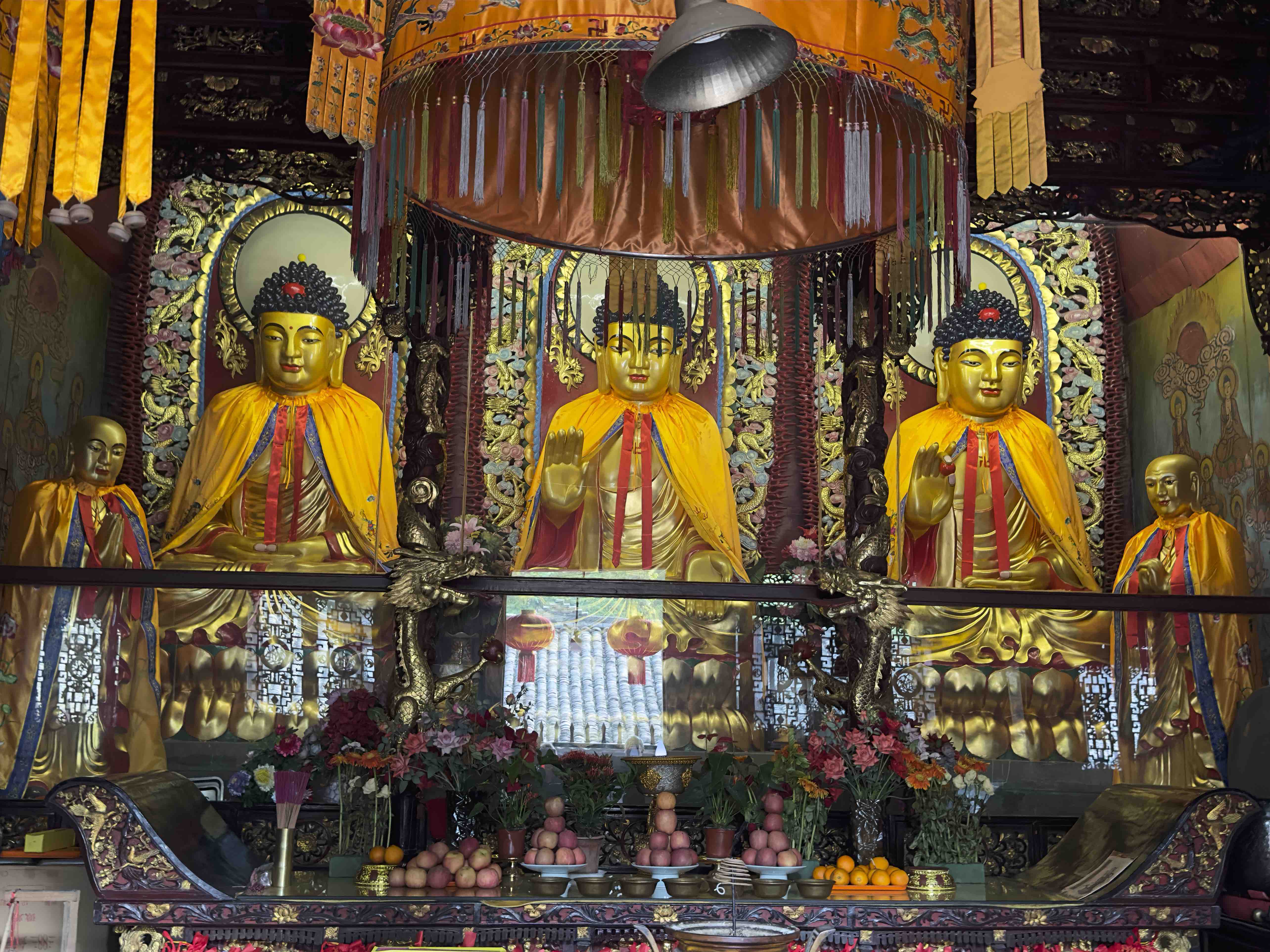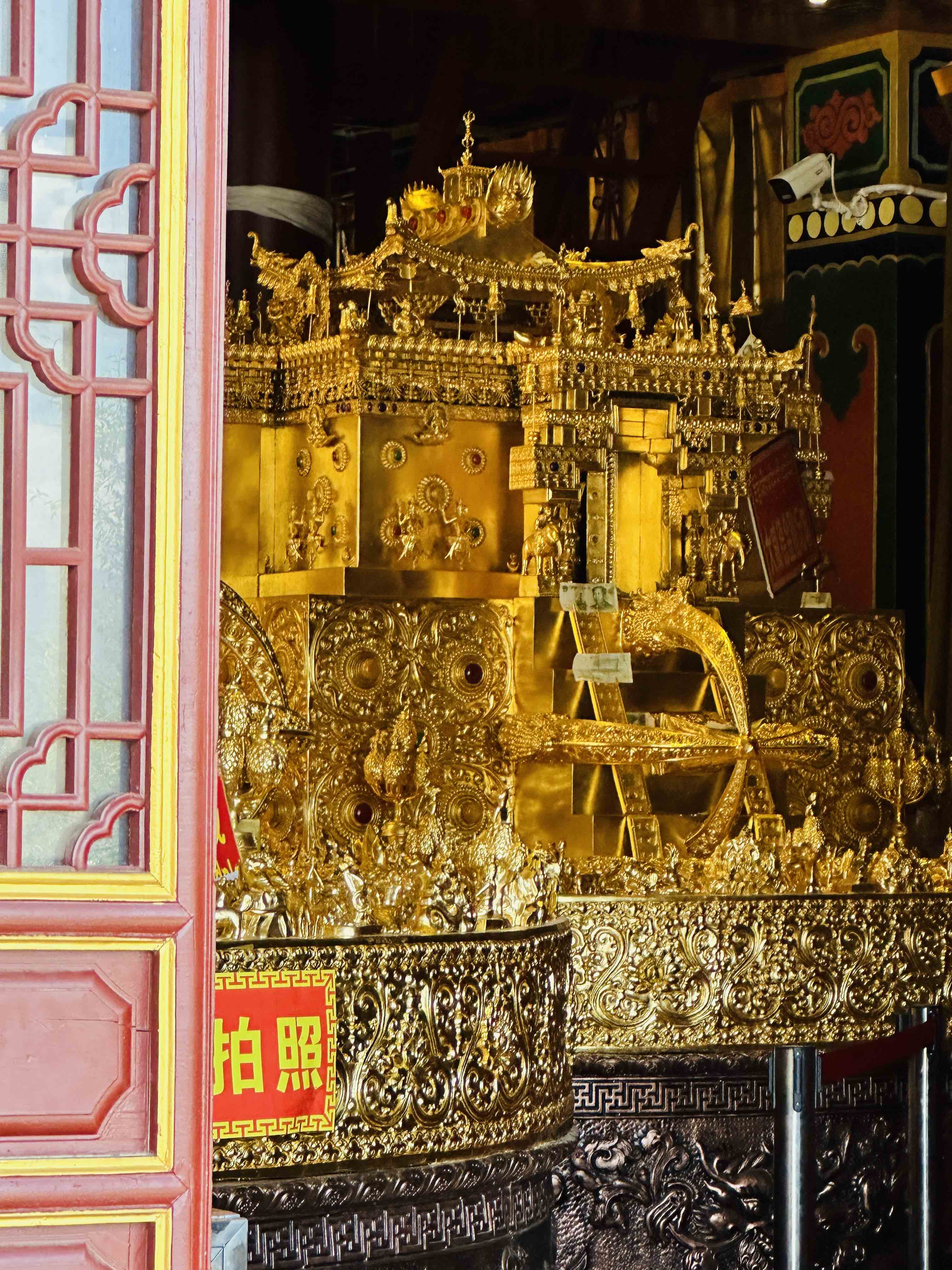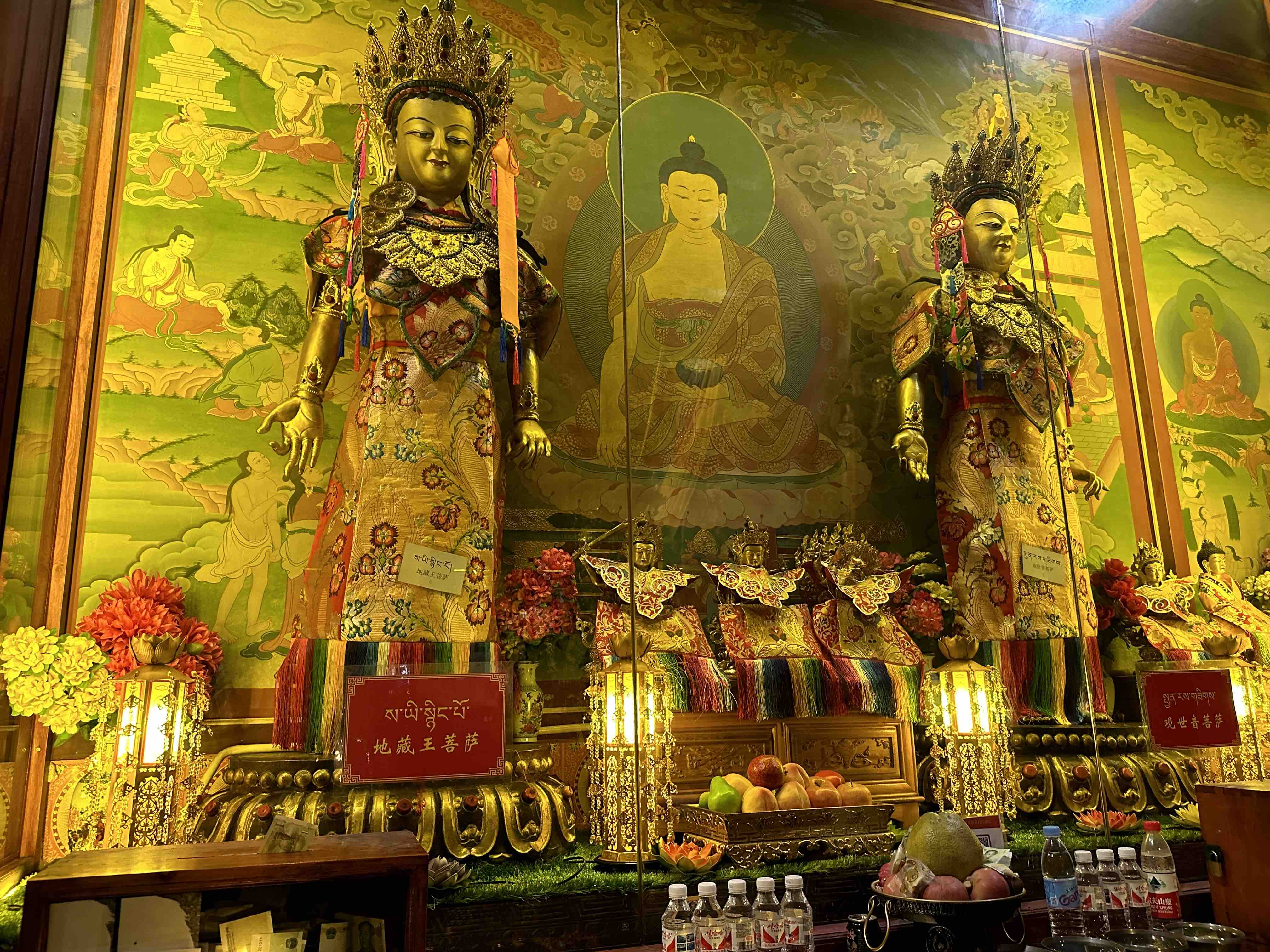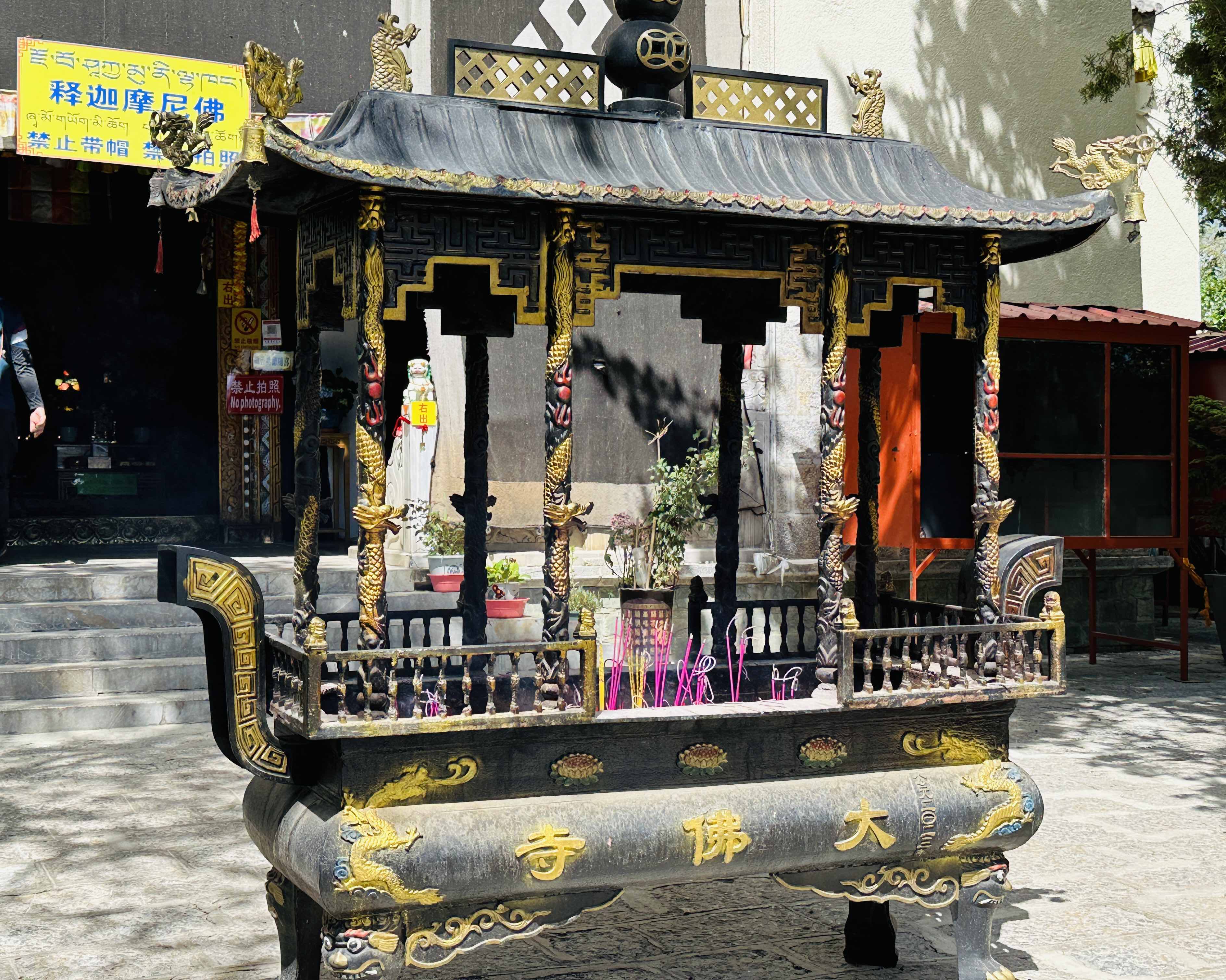 Wir besichtigen den Tempel, der mit unglaublich viel Gold ausgestattet ist, aber leider ist auch hier fotografieren verboten. Wir beteiligen uns an den diversen Ritualen, die alle irgendwie Glück bringen sollen: Kleine Zweige verbrennen, eine riesige Gebetstrommel 3x umrunden…