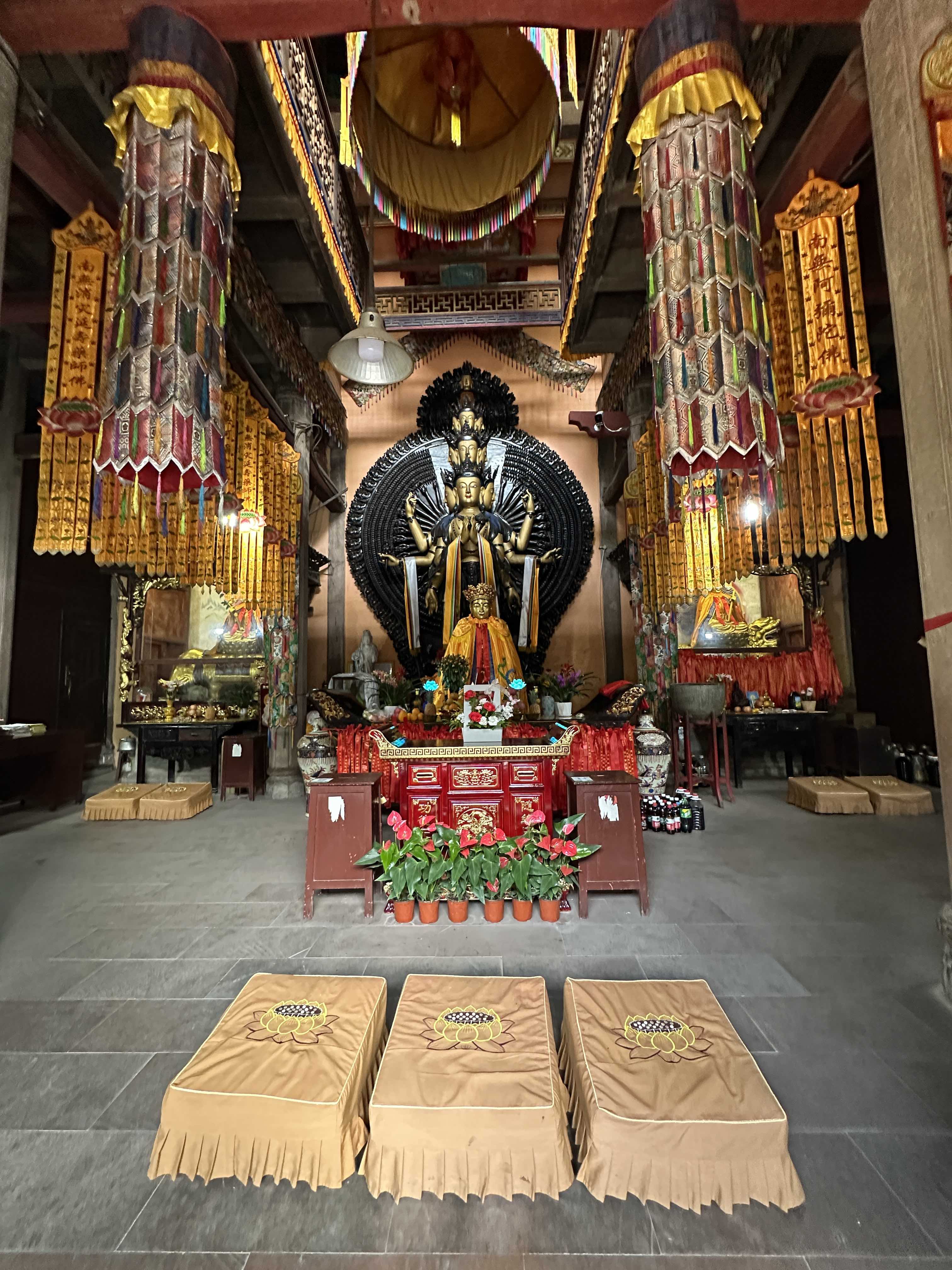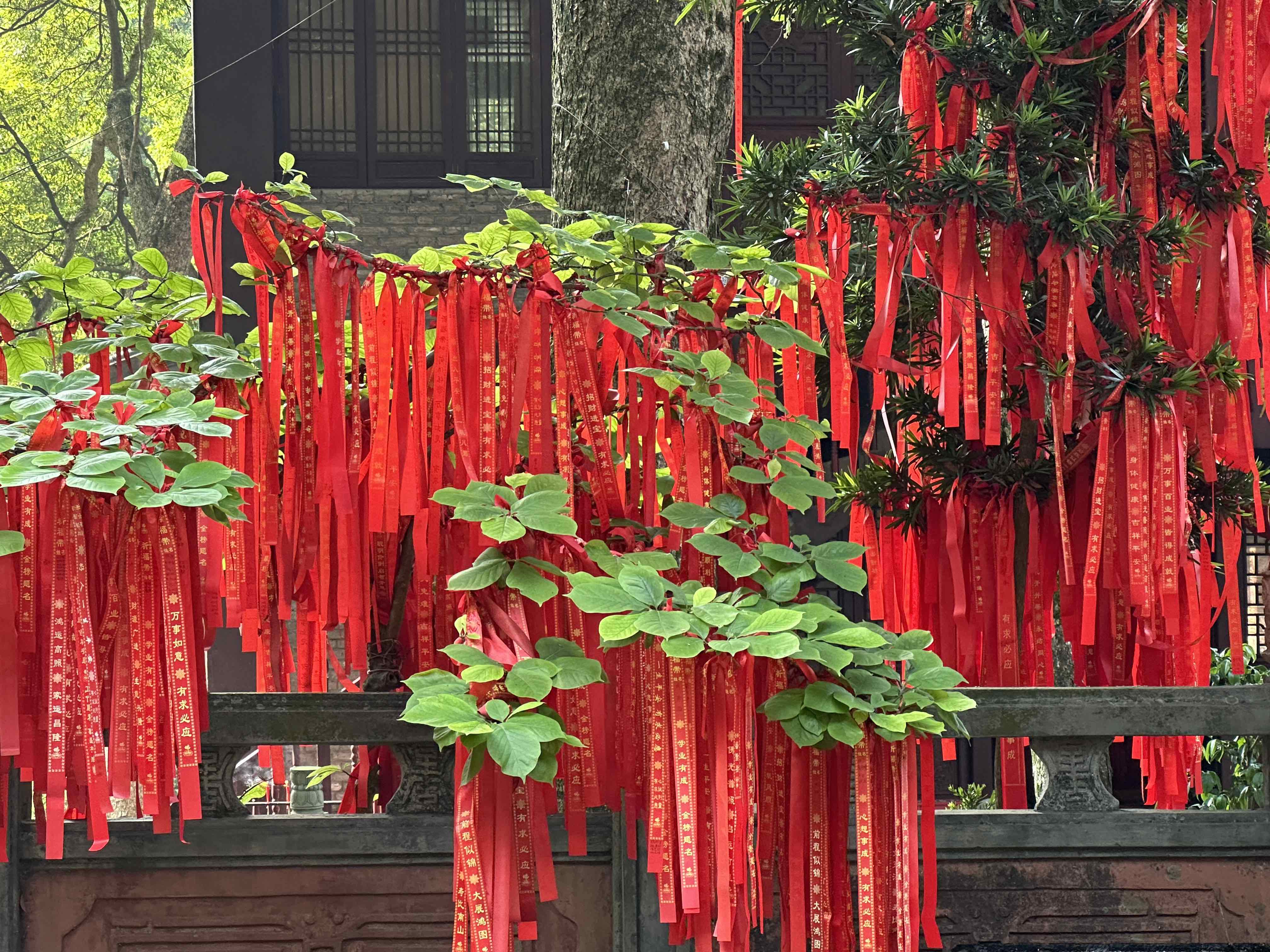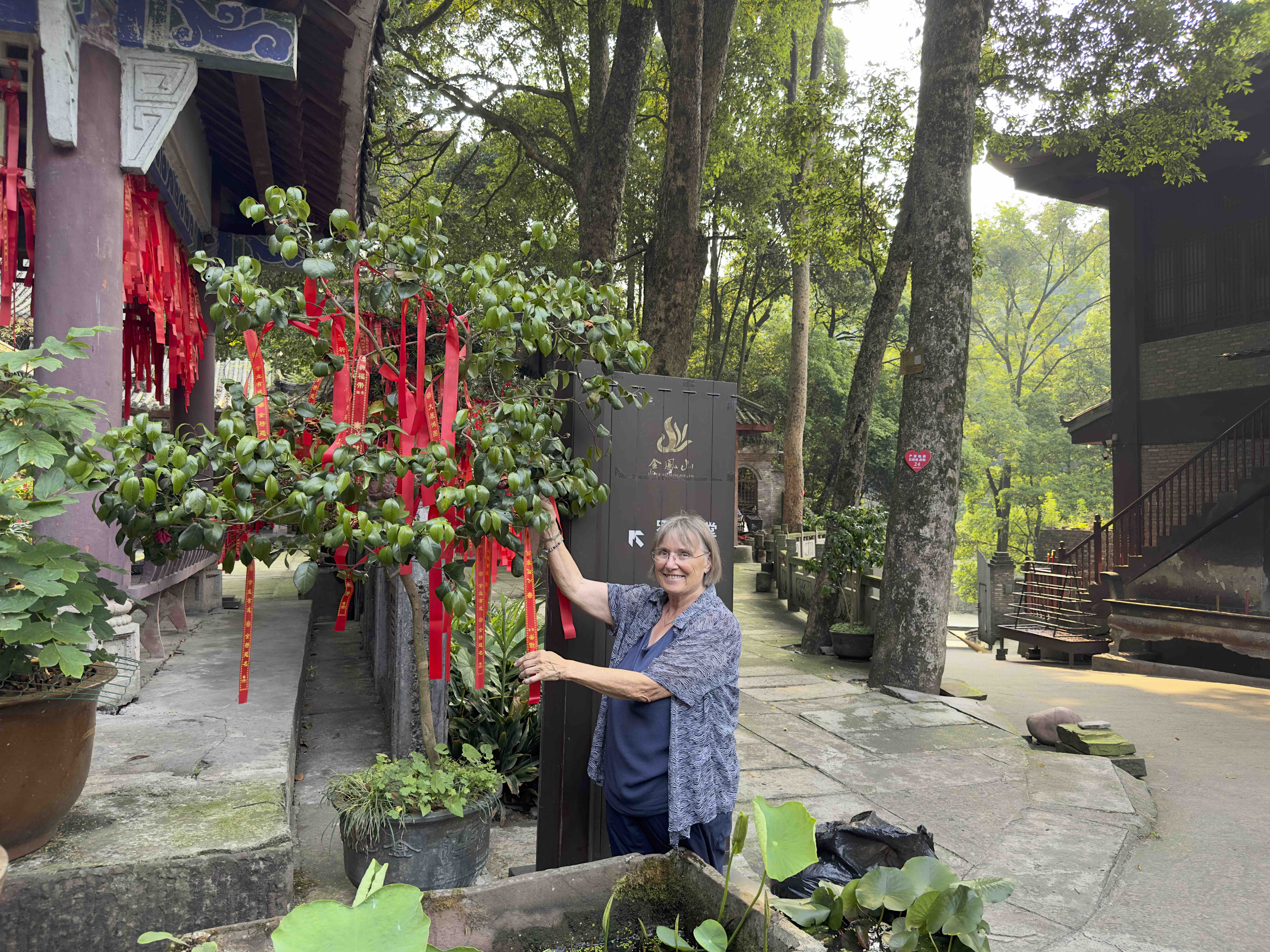 Für uns ist der nächste Stopp das Krankenhausgin Ya´ an, wo Walter eine weitere Behandlung traditioneller chinesischer Medizin bekommt. Wir fahren später noch zu unserem Übernachtungsplatz oberhalb der Stadt an einem buddhistischen Kloster, welches wir am nächsten Morgen besichtigen. Es wird hauptsächlich von Nonnen bewohnt, was außergewöhnlich für buddhistische Klöster ist. Eine sehr schöne, weitläufige Anlage. Überall sind die Bäume mit Wunschbändern behängt – ich kaufe auch welche: eines natürlich für Walter mit der Bitte um Besserung und ein weiteres für meine Freundin mit der gleichen Bitte.