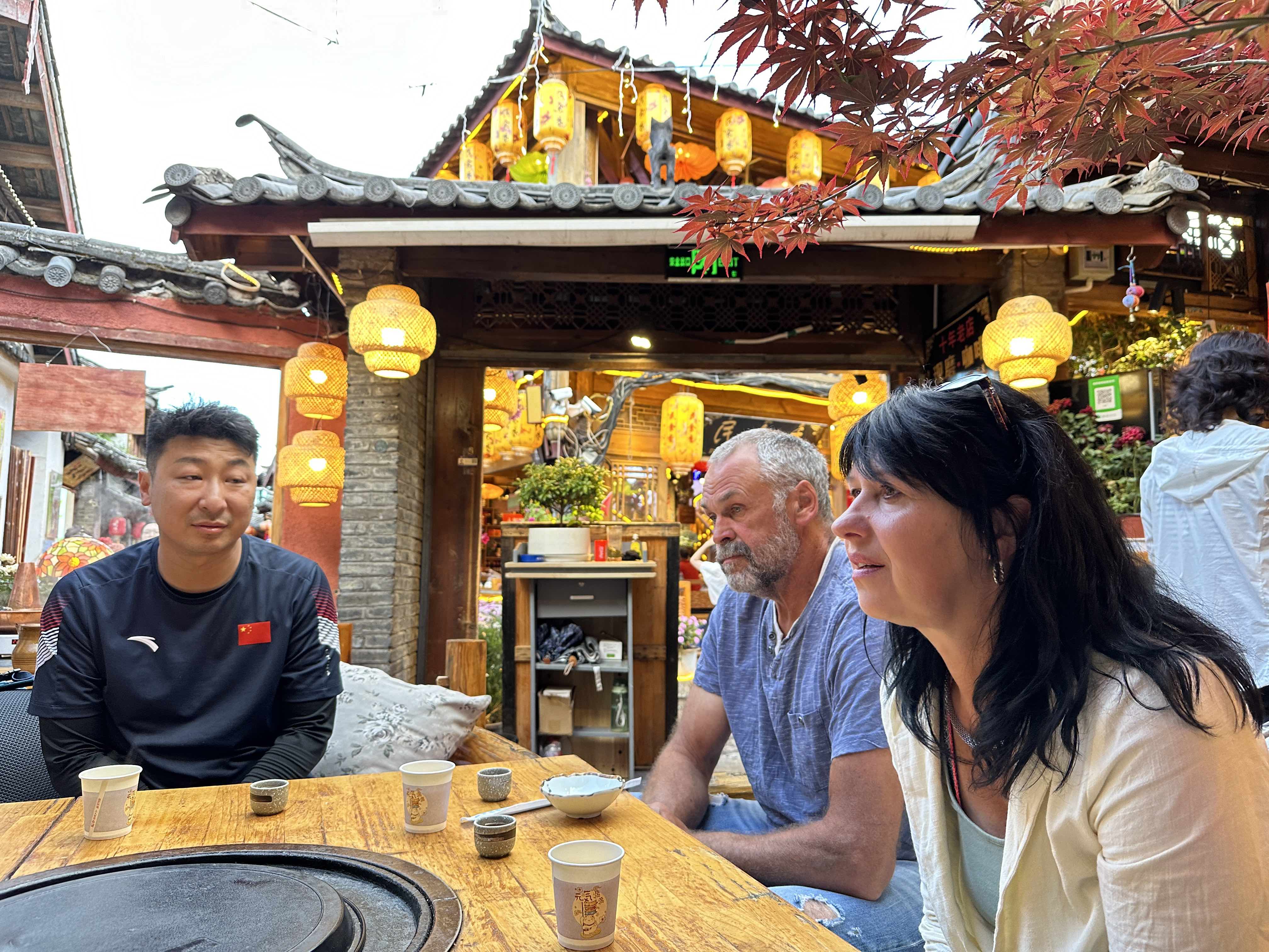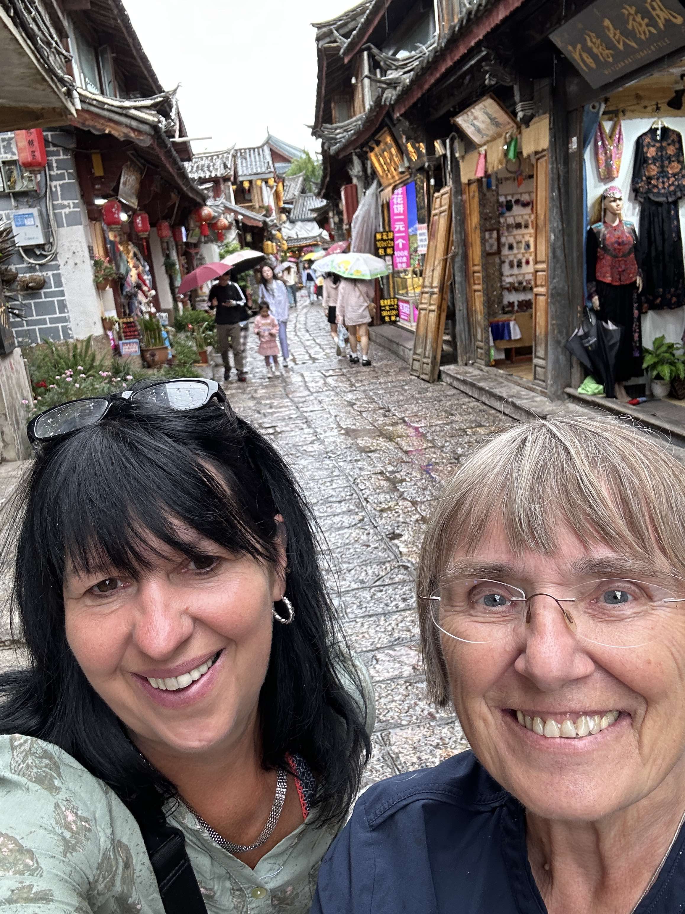 Schon am späten Vormittag sind wir in Lijian, alles ist perfekt organisiert: Yinchou fährt mit Walter ein letztes Mal ins Krankenhaus, Jerry fährt mit René in die Werkstatt um Reifenprobleme lösen. Manu und ich gehen zum Friseur und anschließend noch durch die bezaubernde Altstadt bummeln.
