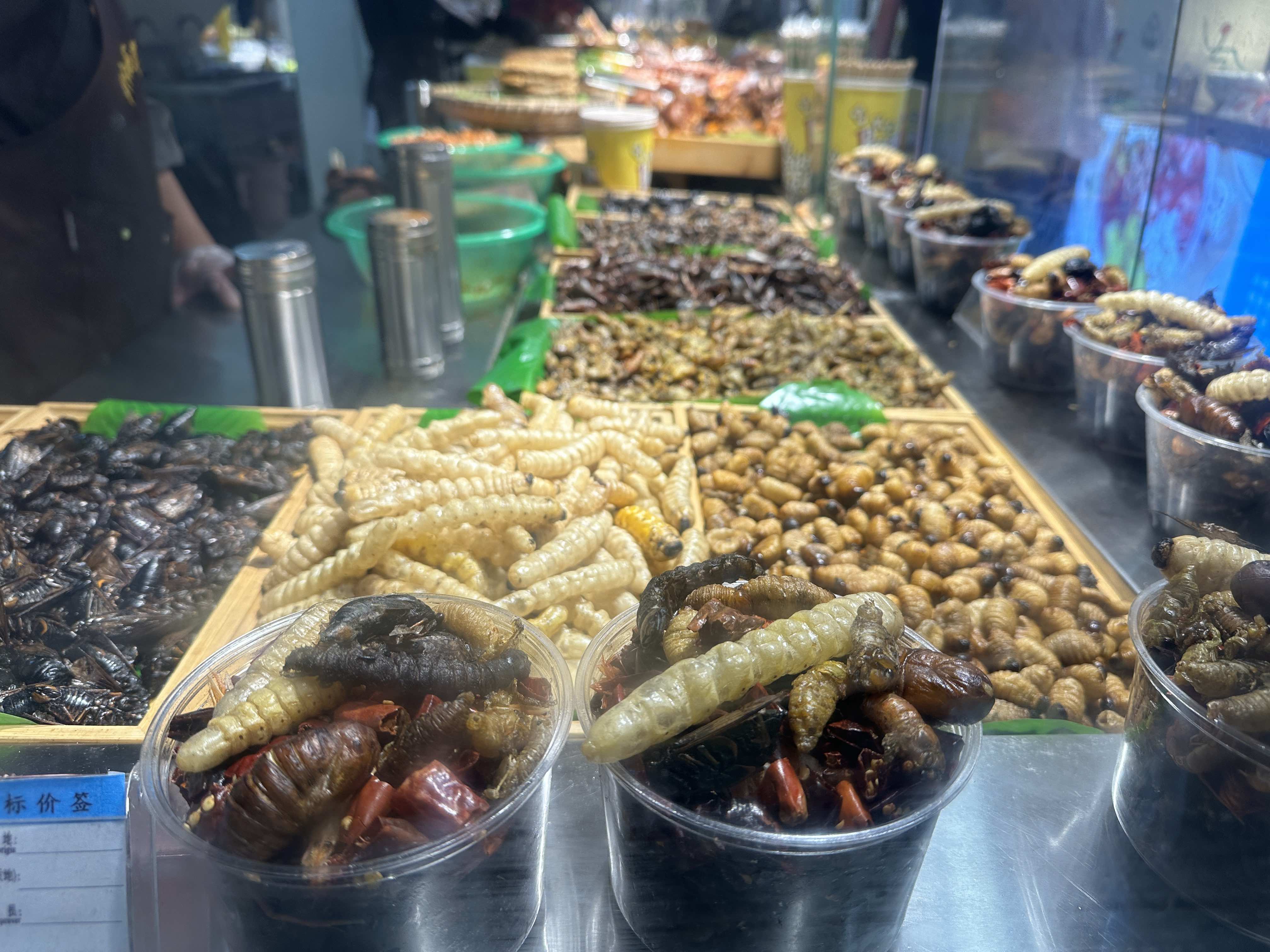 Obwohl es Walter zunehmend besser geht, traut er es sich nicht zu, mit uns am Abend in die Altstadt zum Essen zu gehen, sehr schade! Wir wählen ein kleines gemütliches Restaurant und speisen vorzüglich. Die Stadt wimmelt von Touristen und in der Dunkelheit entfaltet sie noch einmal einen ganz besonderen Charme. Es gibt Life Musik, unzählige Verkaufsstände mit den exotischsten Angeboten – am krassesten fand ich den bunten Mix aus gebratenen Maden, Skorpionen, Heuschrecken und ähnlichem Getier! Wir können uns kaum satt sehen an dem bunten Treiben und kehren spät am Abend auf den Parkplatz zurück.