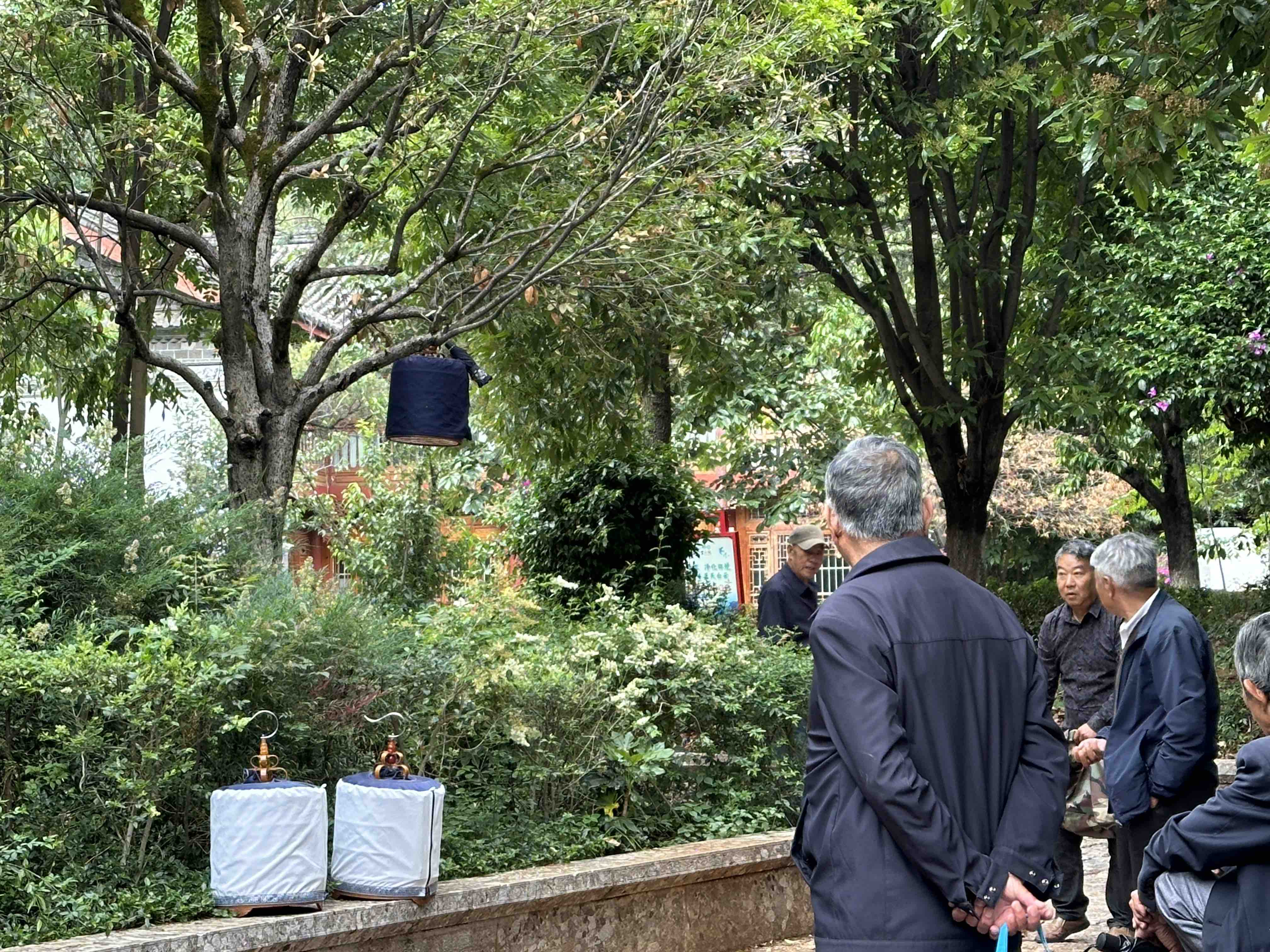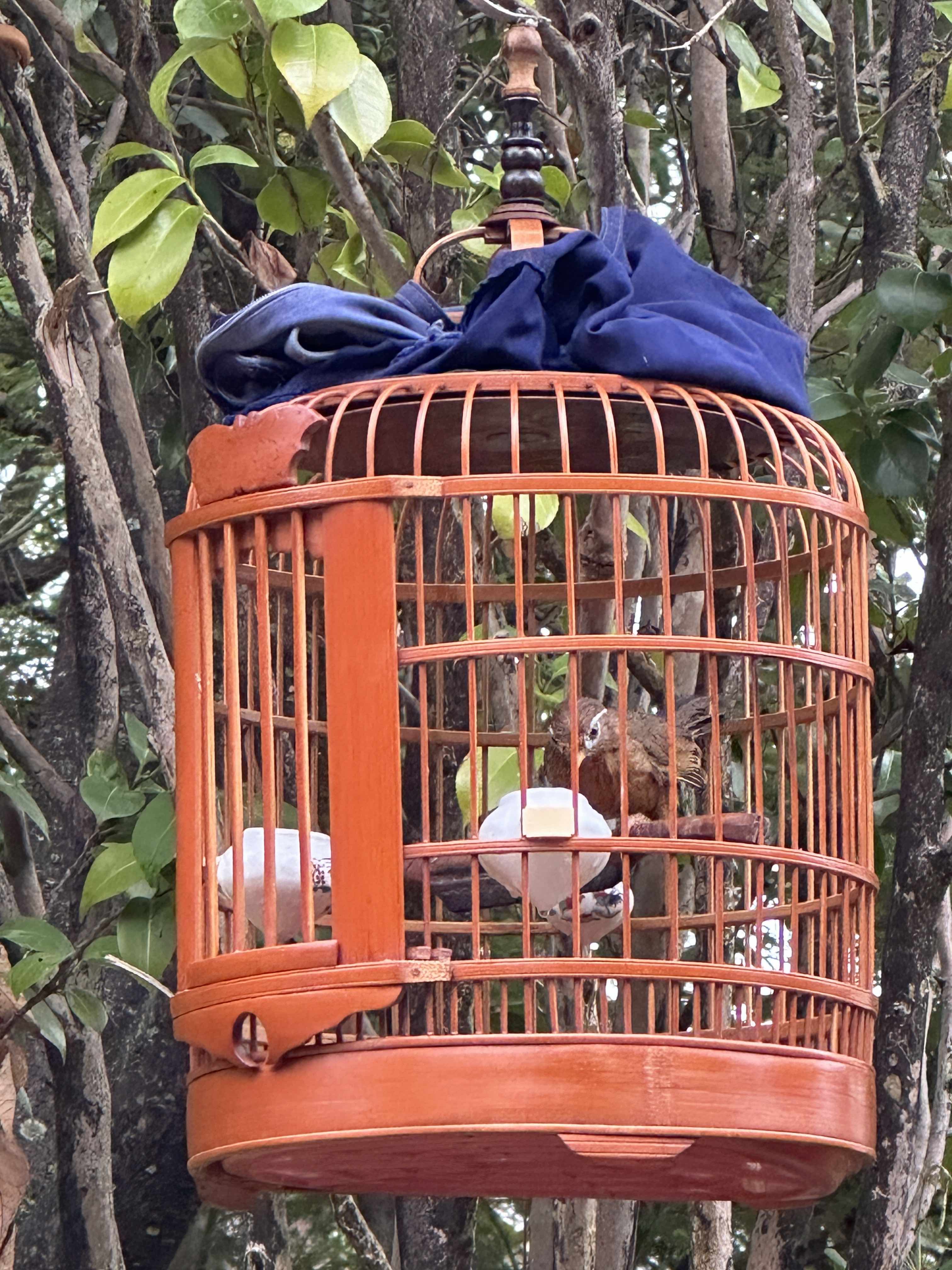 Am nächsten Morgen werden wir überrascht von einer Reihe alter Männer, die mit Vogelkäfigen anrücken und diese samt ihren Bewohnern in die uns umgebenden Bäume hängen. Sehr strange! Sie schauen ziemlich grimmig drein, weil wir offensichtlich ihren angstammten Platz besetzen. Aber wir sind ja schon im Aufbruch begriffen, gehen noch kurz einkaufen auf dem Markt und verlassen dann die tibetische Region in Richtung Osten.