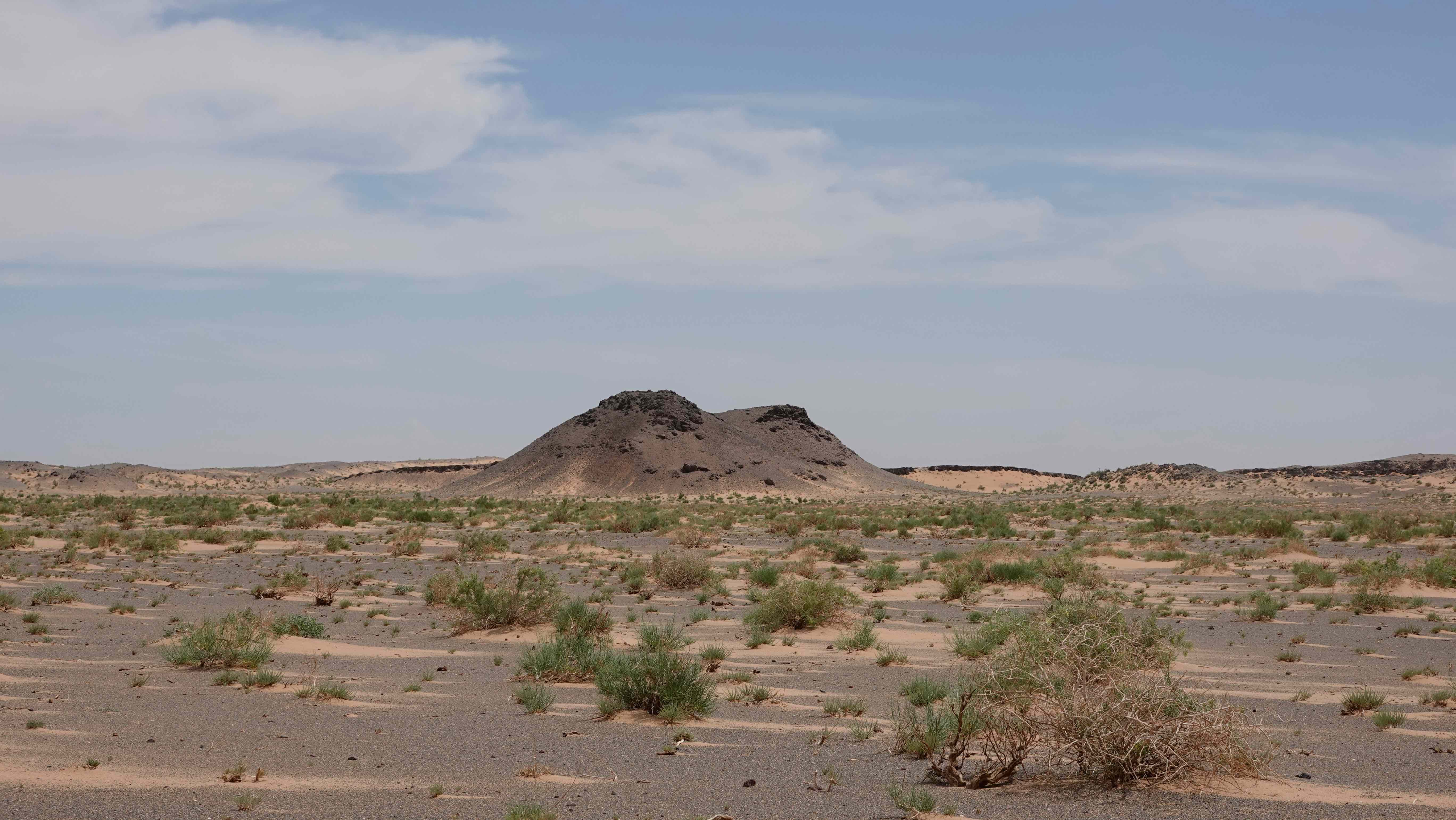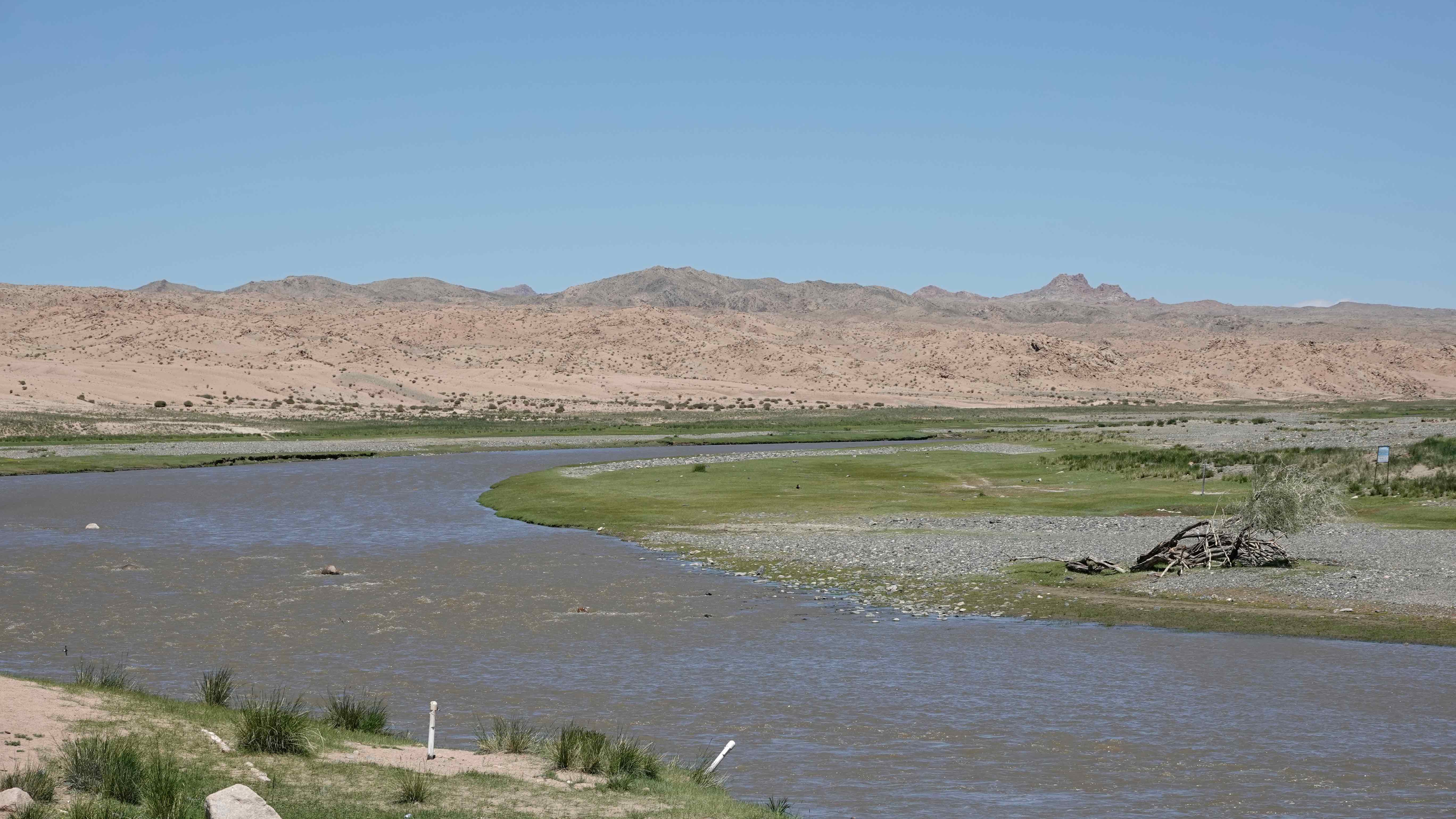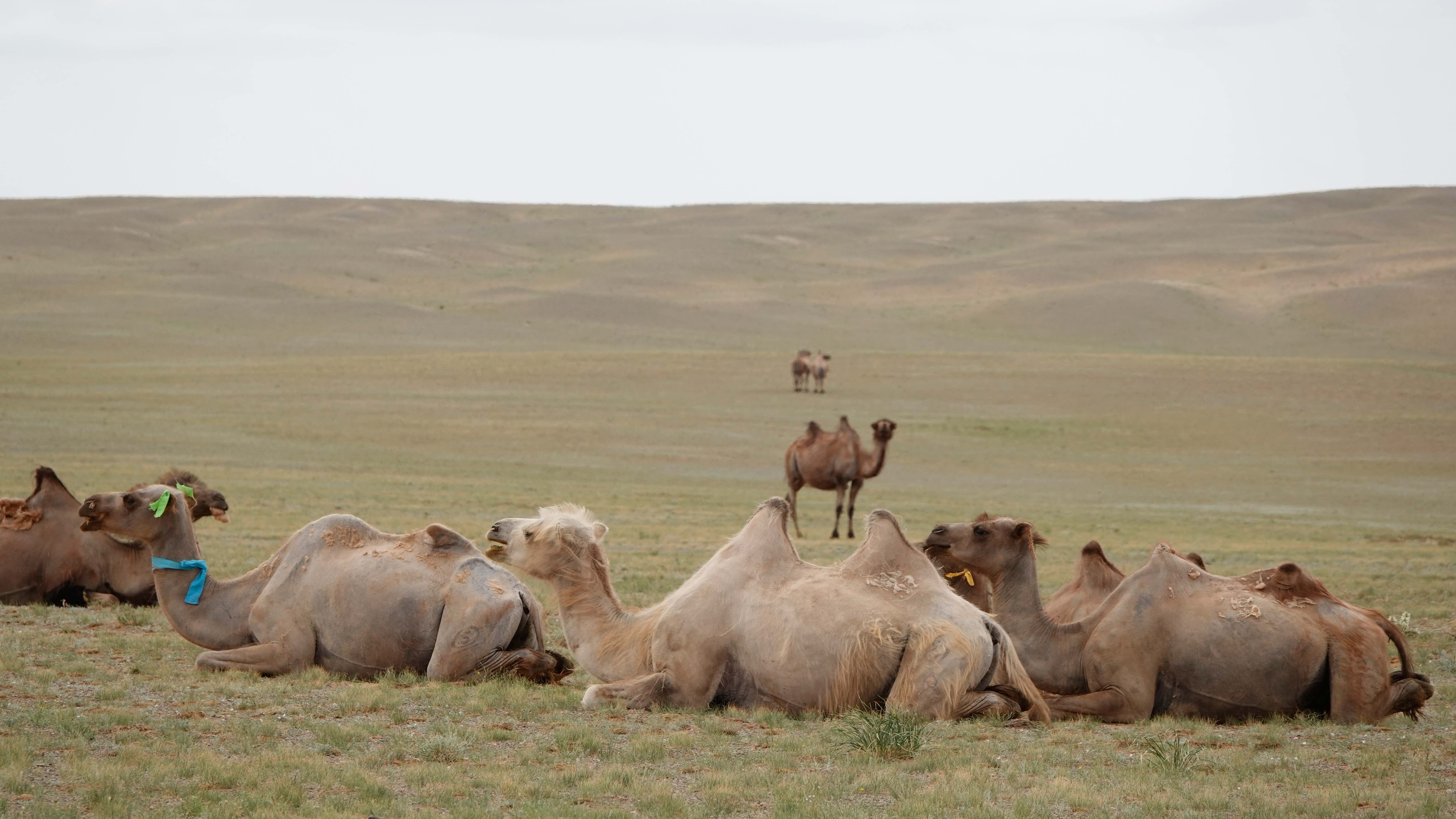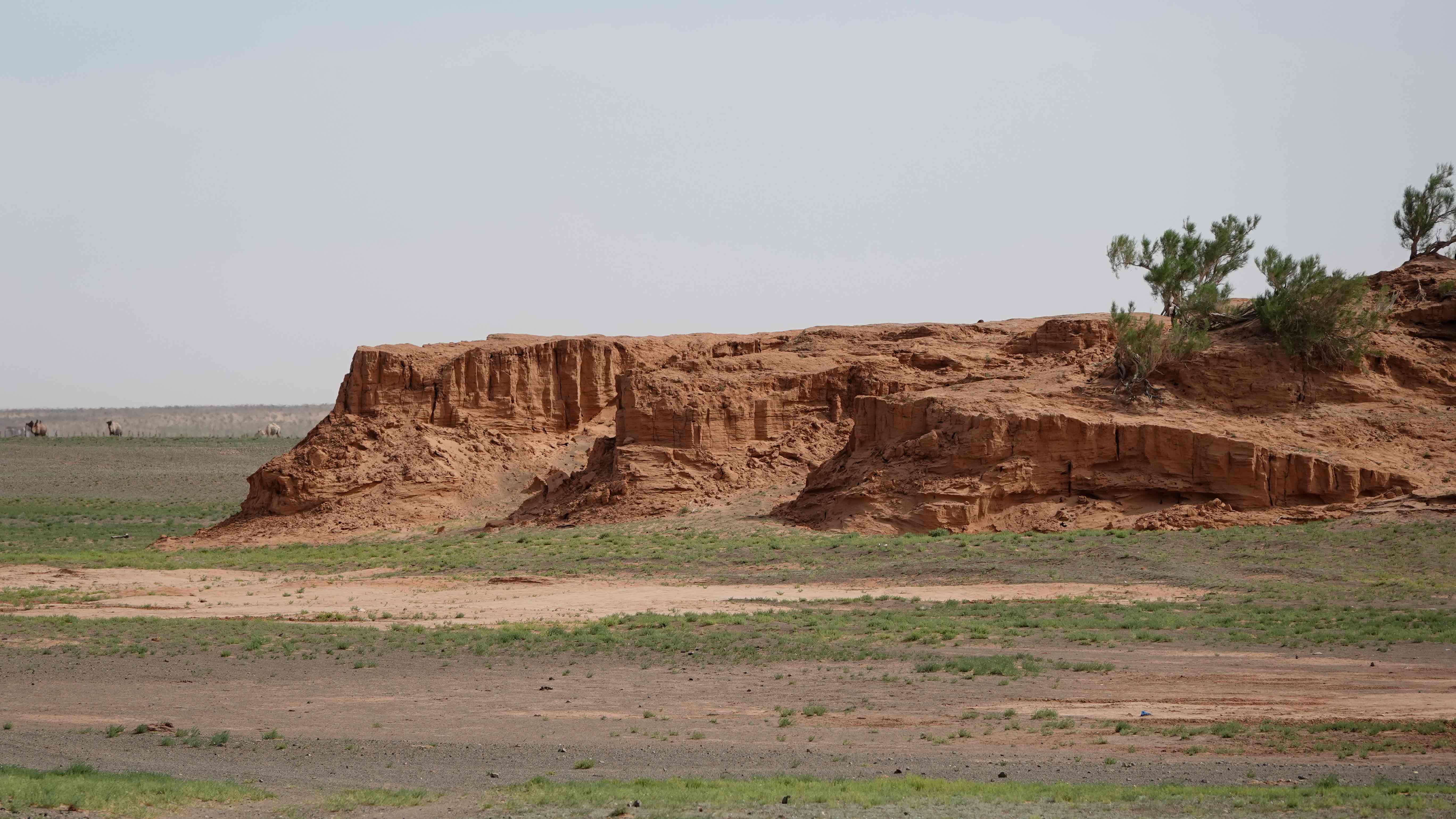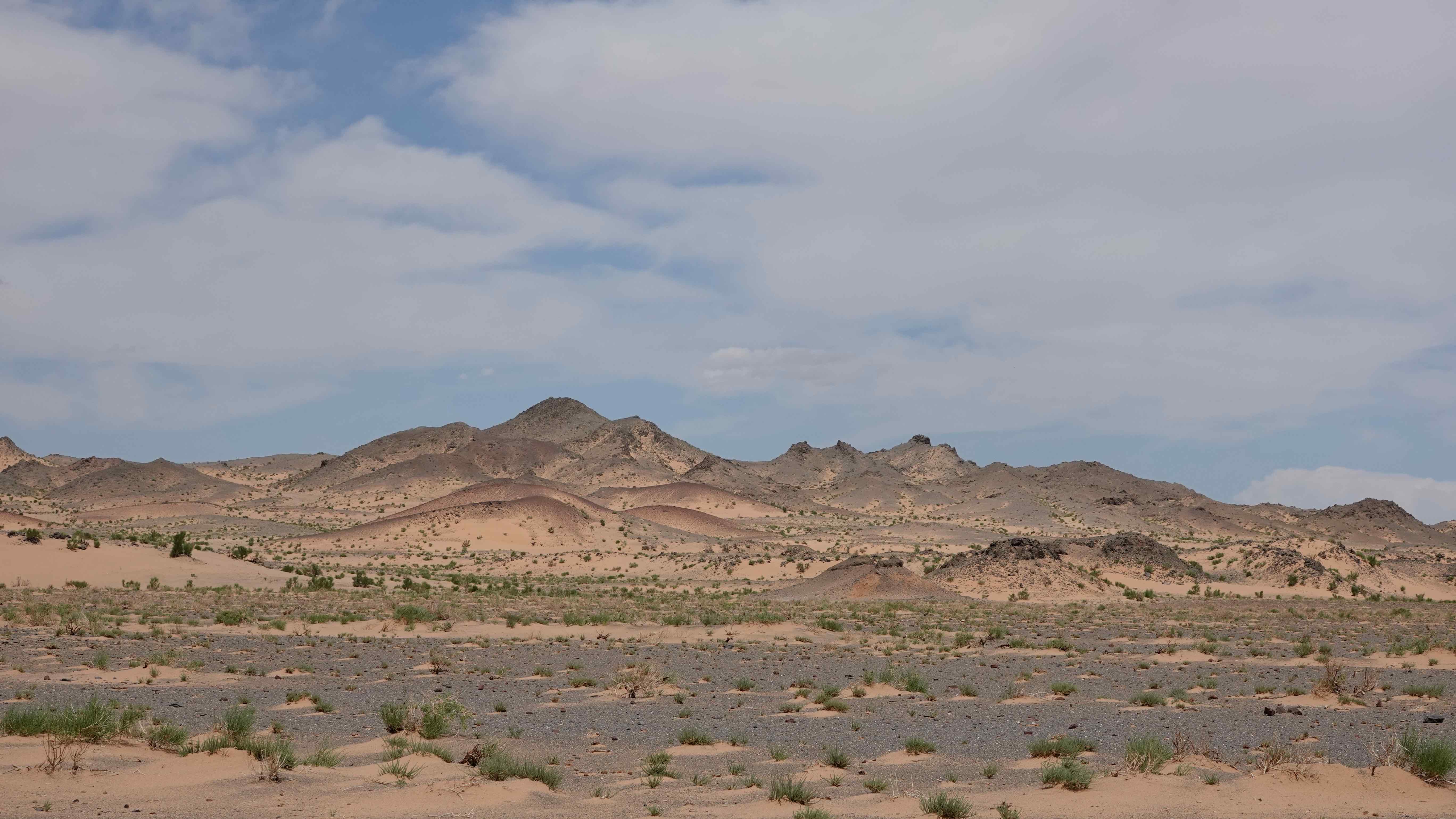 Die Gobi ist hier eine Steinwüste, manchmal bergig und immer mal trifft man auf Saxaul Bäume, Kamele streifen durch die Gegend.