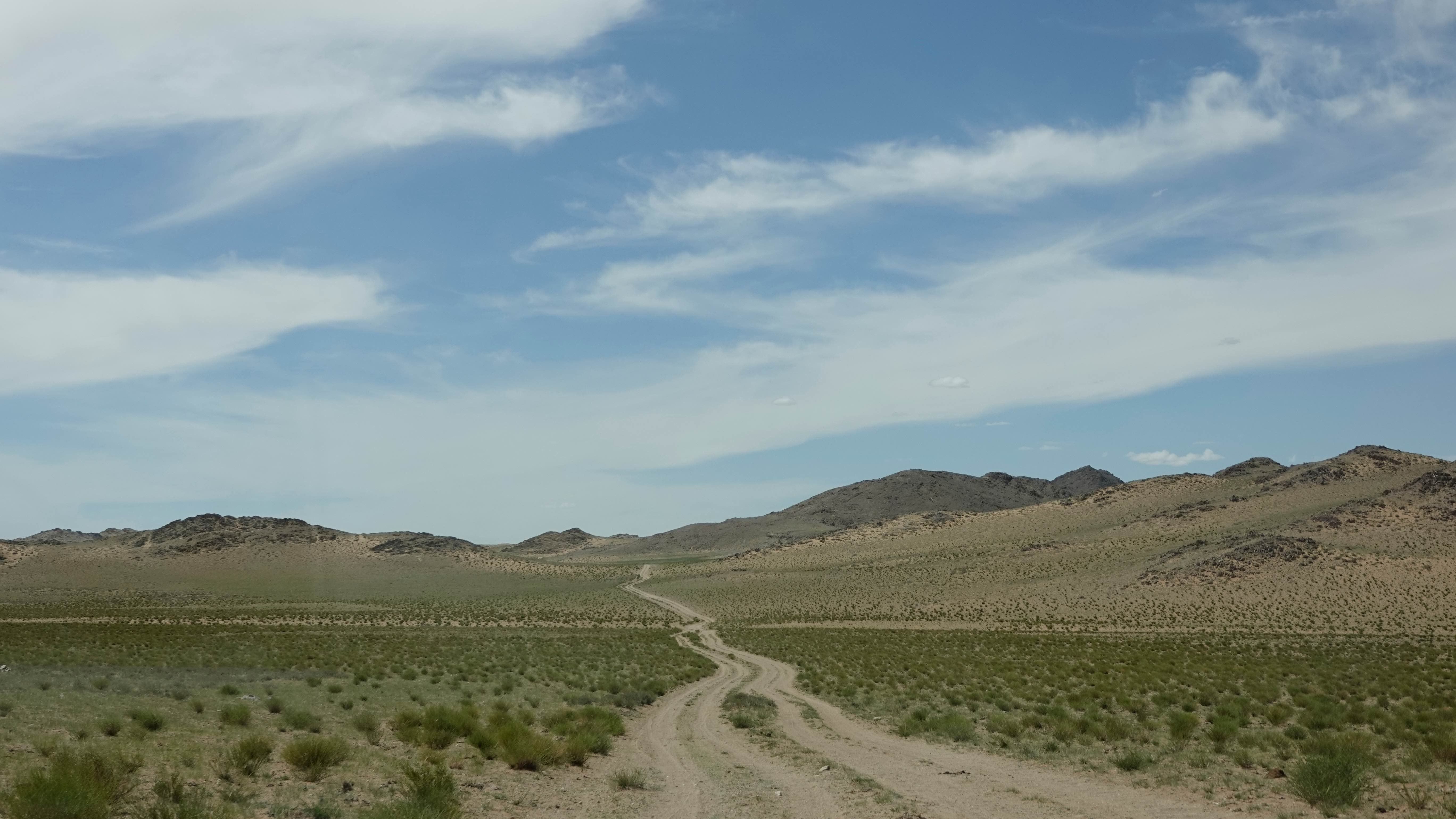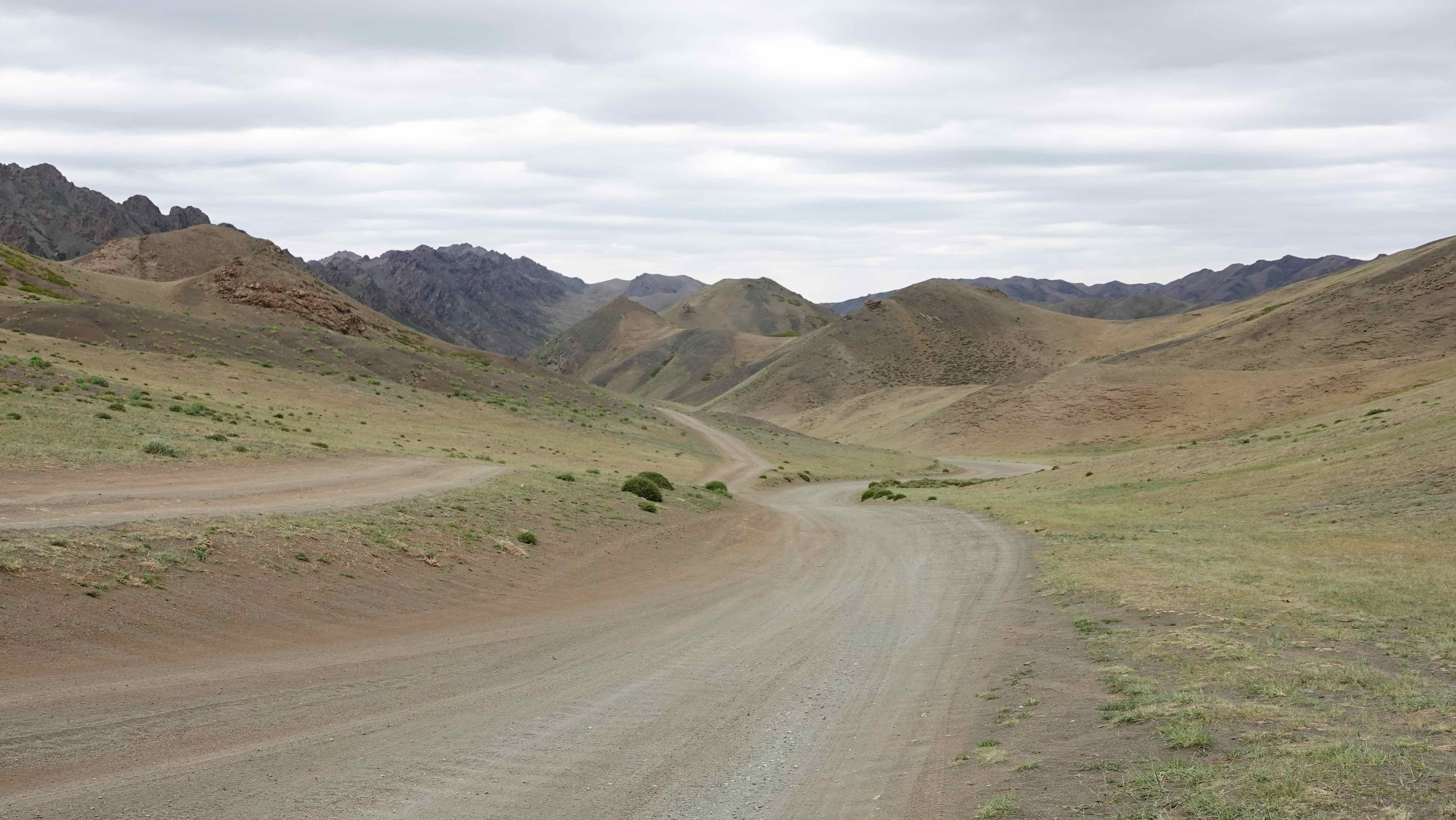 Hier machen wir zum ersten Mal Bekanntschaft mit den Pisten, die sich überall durchs Land ziehen. Es gibt nicht sehr viele gut ausgebaute, asphaltierte Straßen in der Mongolei.