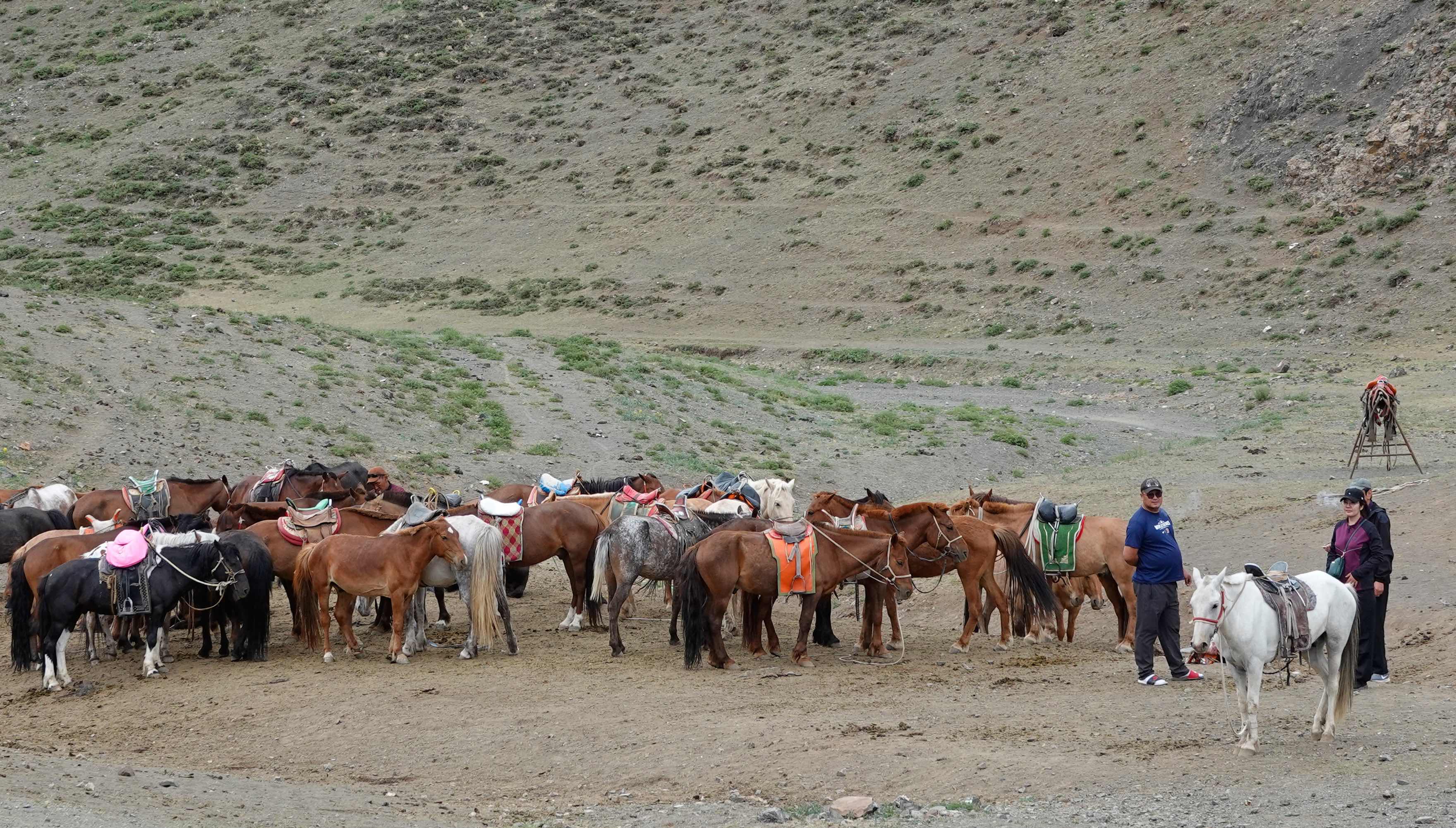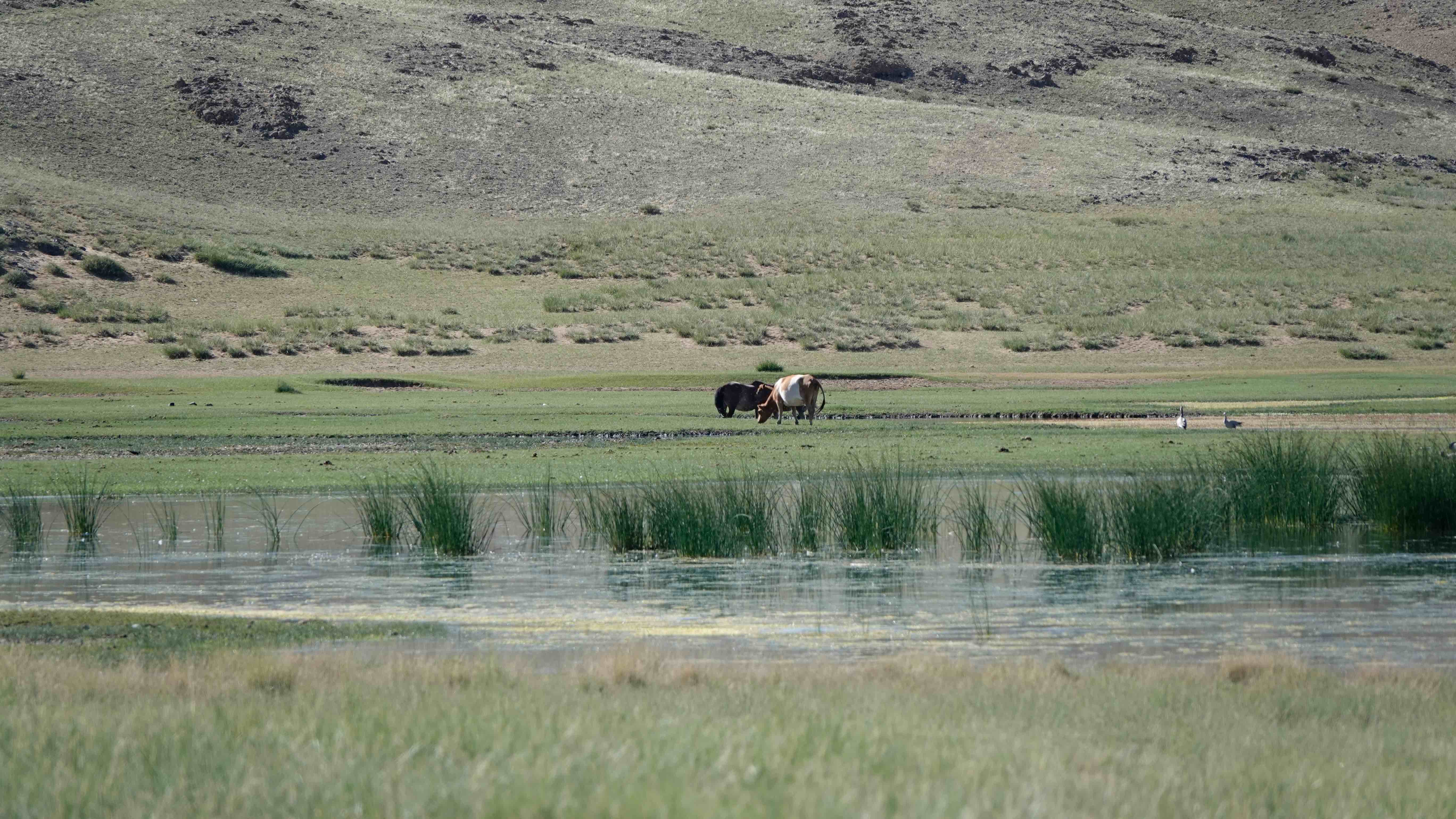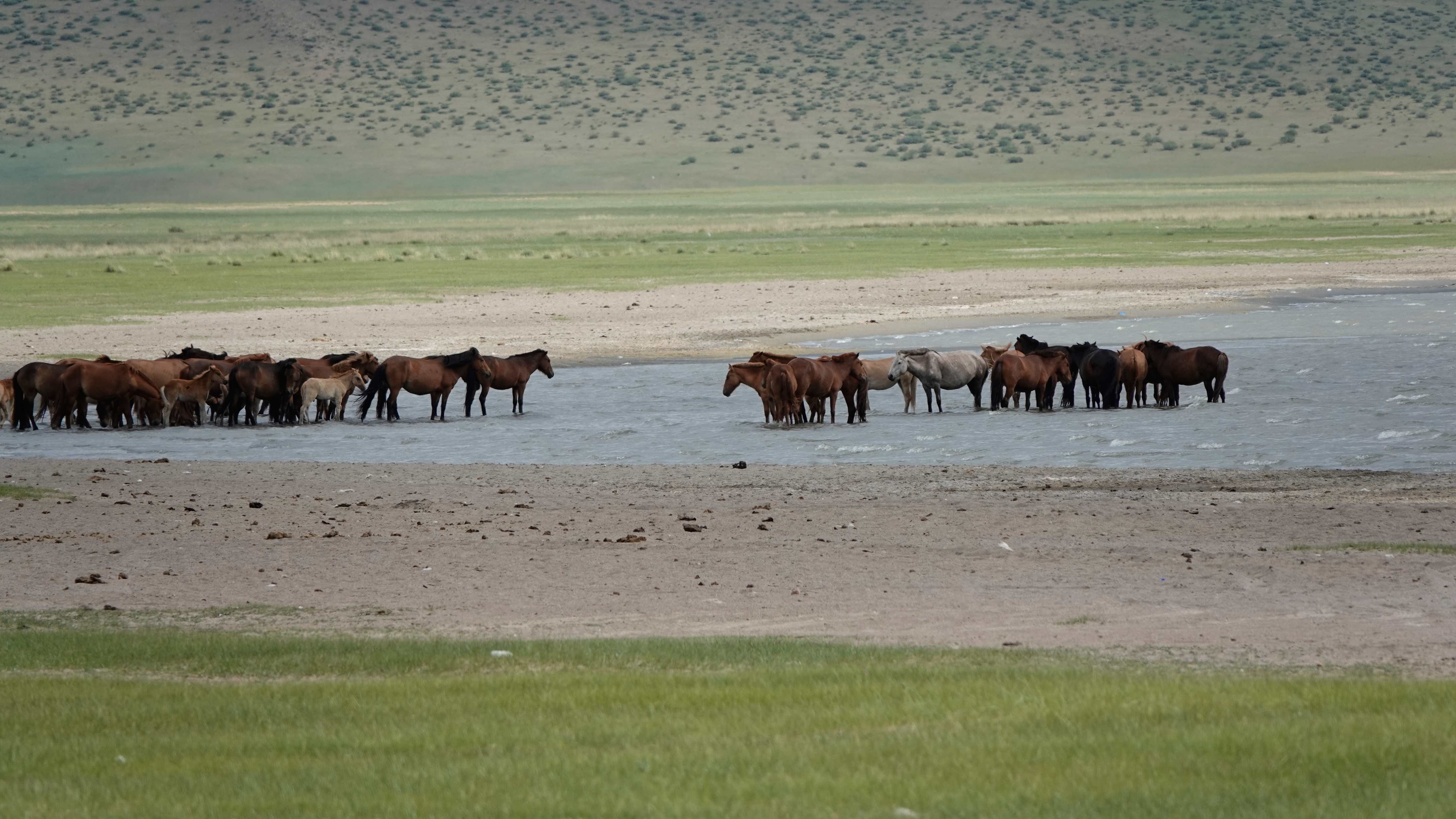 Weiter geht’s zum nächsten See: Telmen Nuur. Dieser lädt nicht unbedingt zum Baden ein, wir überlassen das den Pferden und Kühen, die hierher zum Trinken kommen.