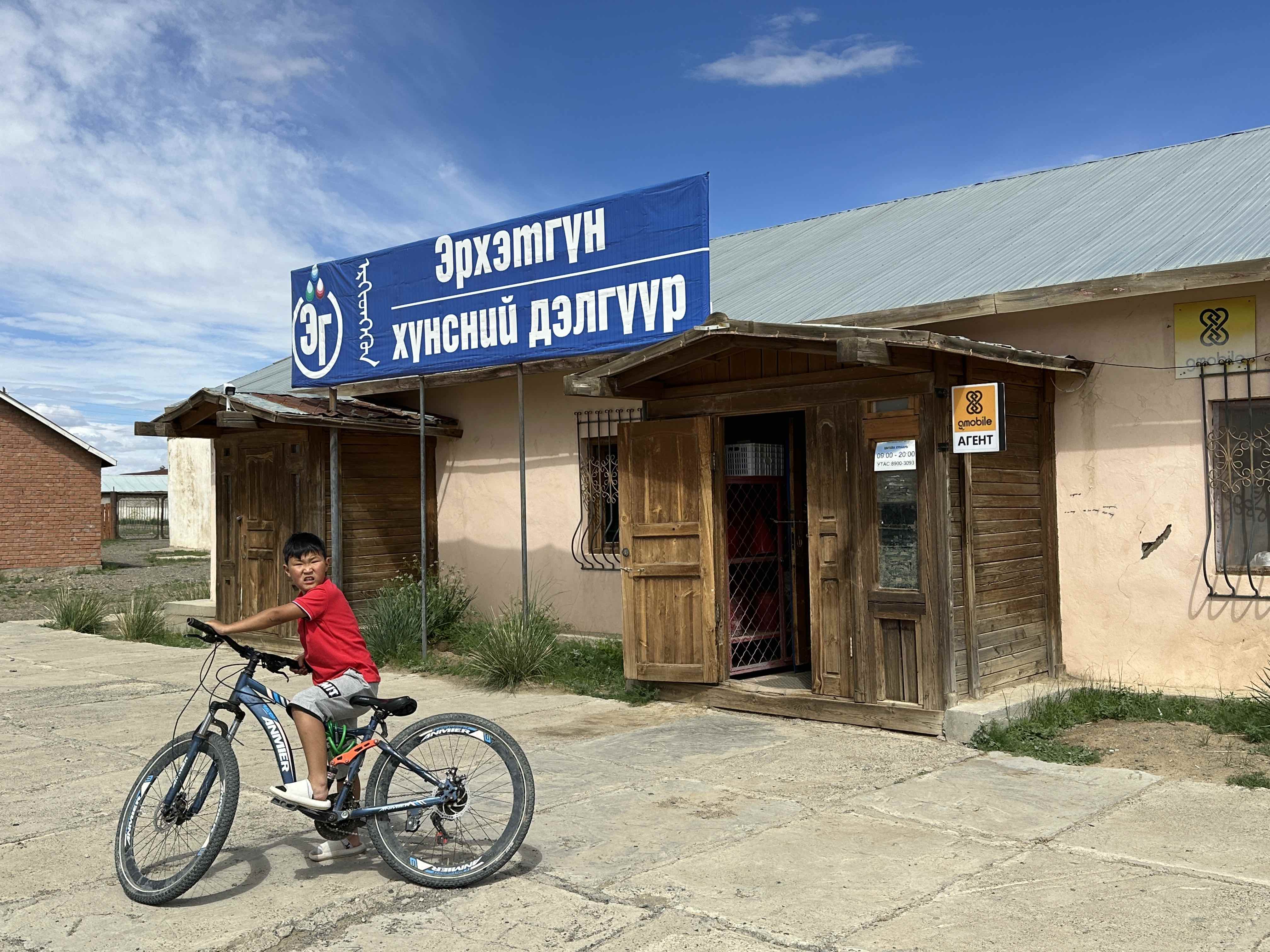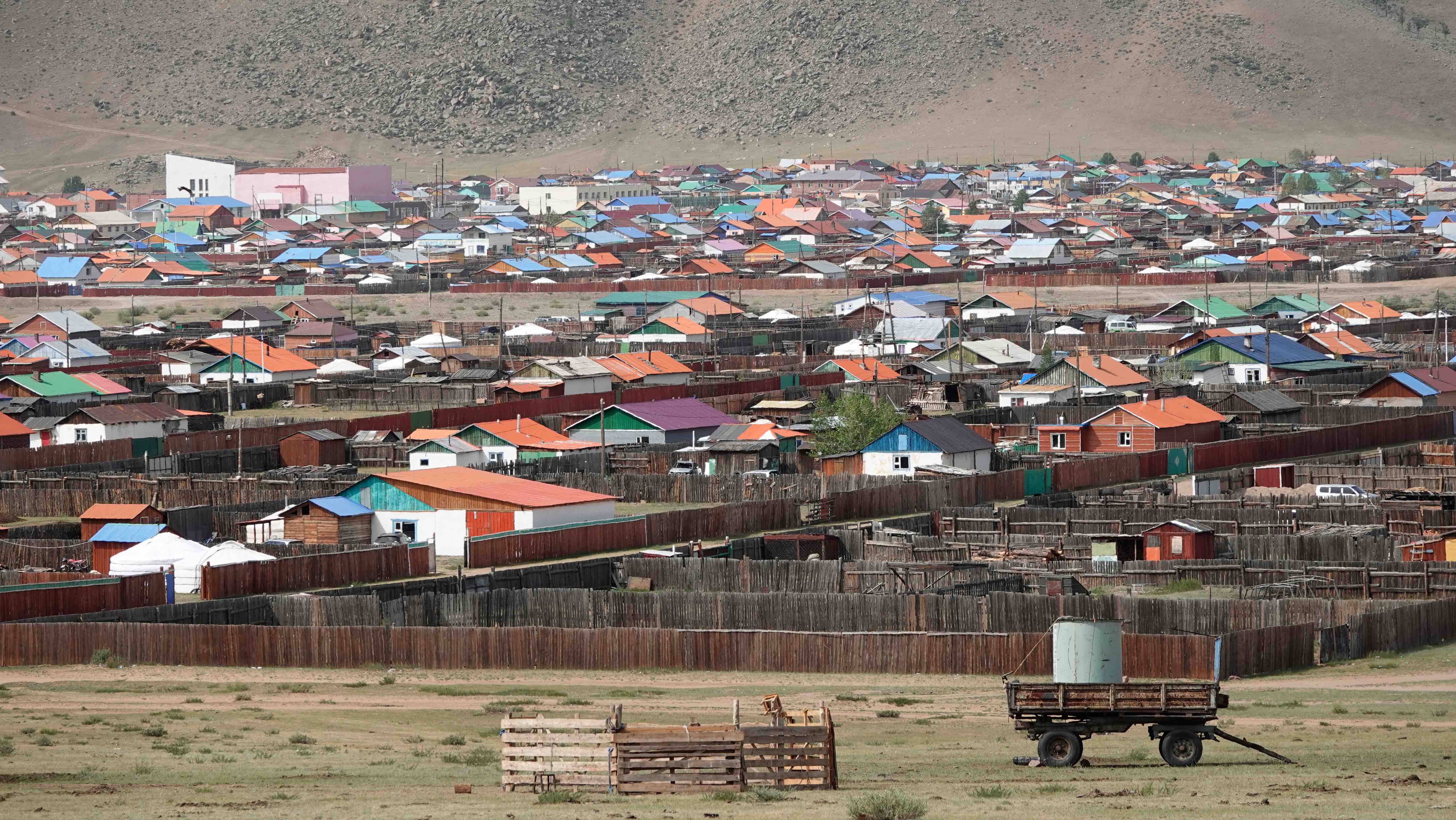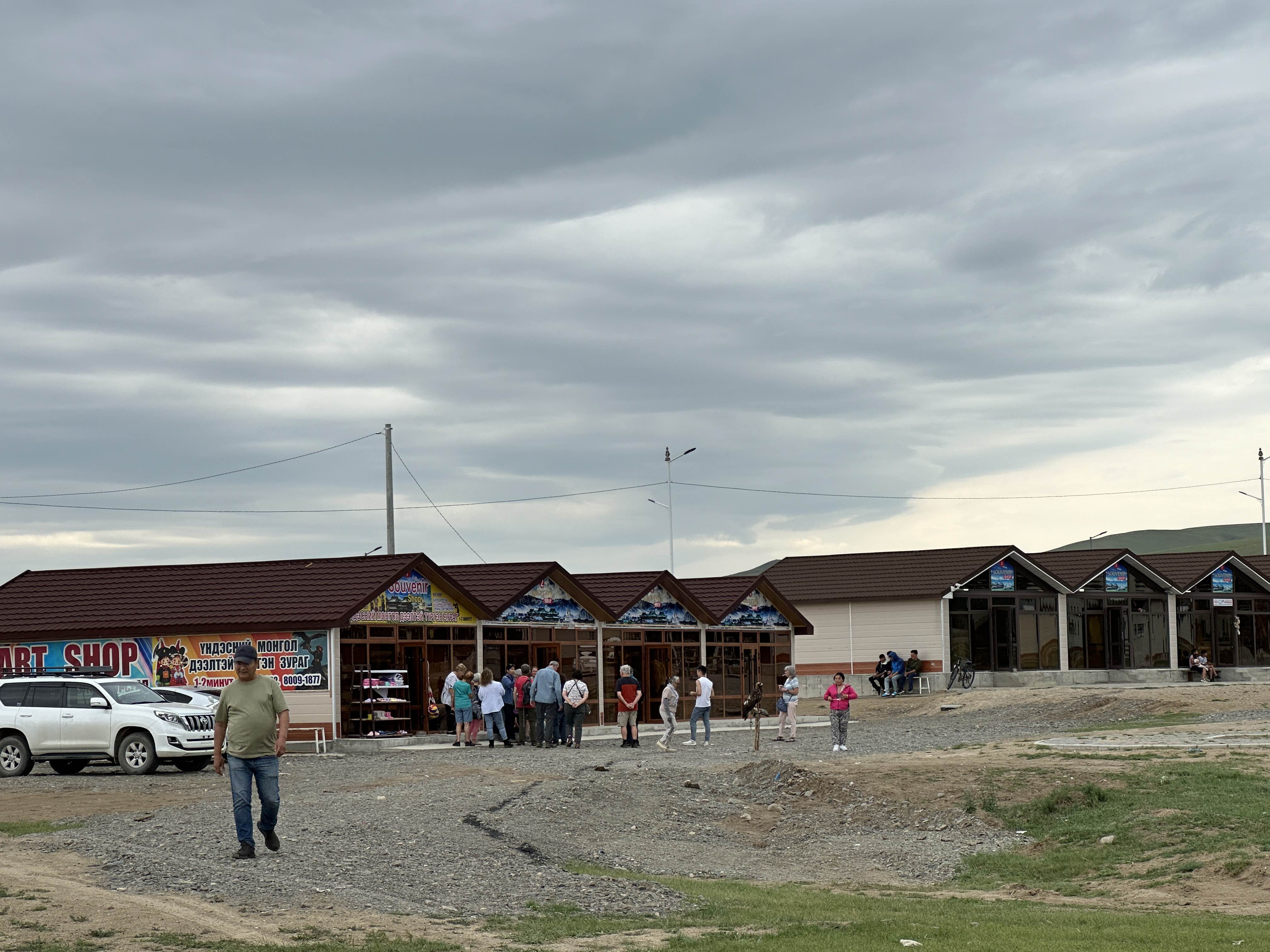 Im kleinen Ort Saikhan Ovoo können wir tanken und in dem kleinen Laden unsere Vorräte auffrischen. Das Wasserhaus funktioniert hier nur mit einer Chipkarte und wir können kein Wasser bekommen. Hier sind – wie in allen Dörfern und auch in den größeren Ortschaften – die Häuser oder Jurten von Zäunen umgeben. Neben vielen einfachen Bauten gibt es auch ab und zu modernere mehrstöckige Gebäude. Auch die größeren Städte sind großflächig von diesen parzellierten Höfen umgeben.