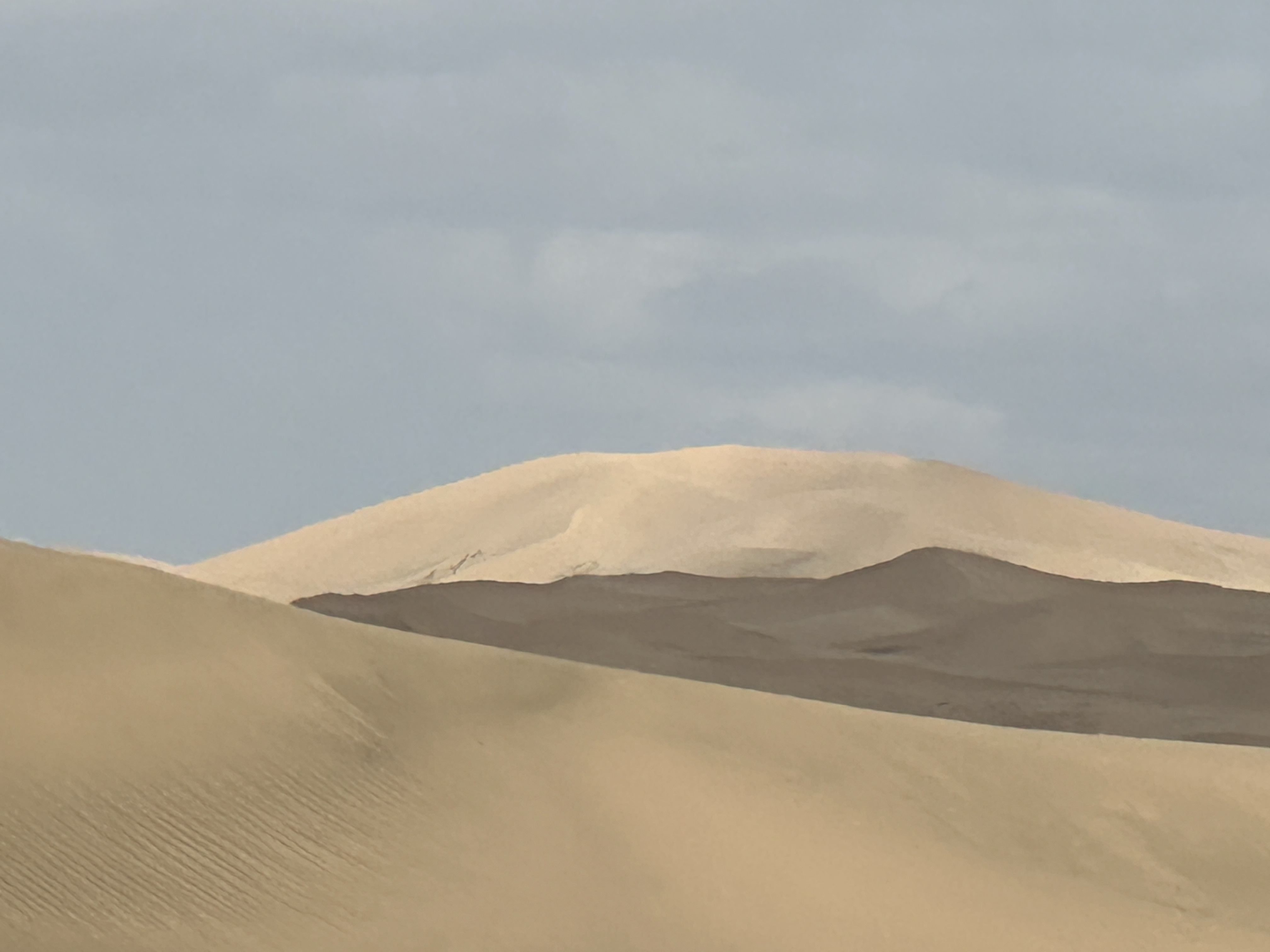Der Weg führt nun mitten durch die Dünen und Walter muss etwas Luft aus den Reifen lassen, damit wir weiterfahren können. Mit viel Speed düsen wir durch den Sand und stellen unterwegs fest, dass der Weg heraus inzwischen von großen Sandmassen versperrt ist und wir noch ein ganzes Stück weiterfahren müssen, um einen neuen Weg zu finden.