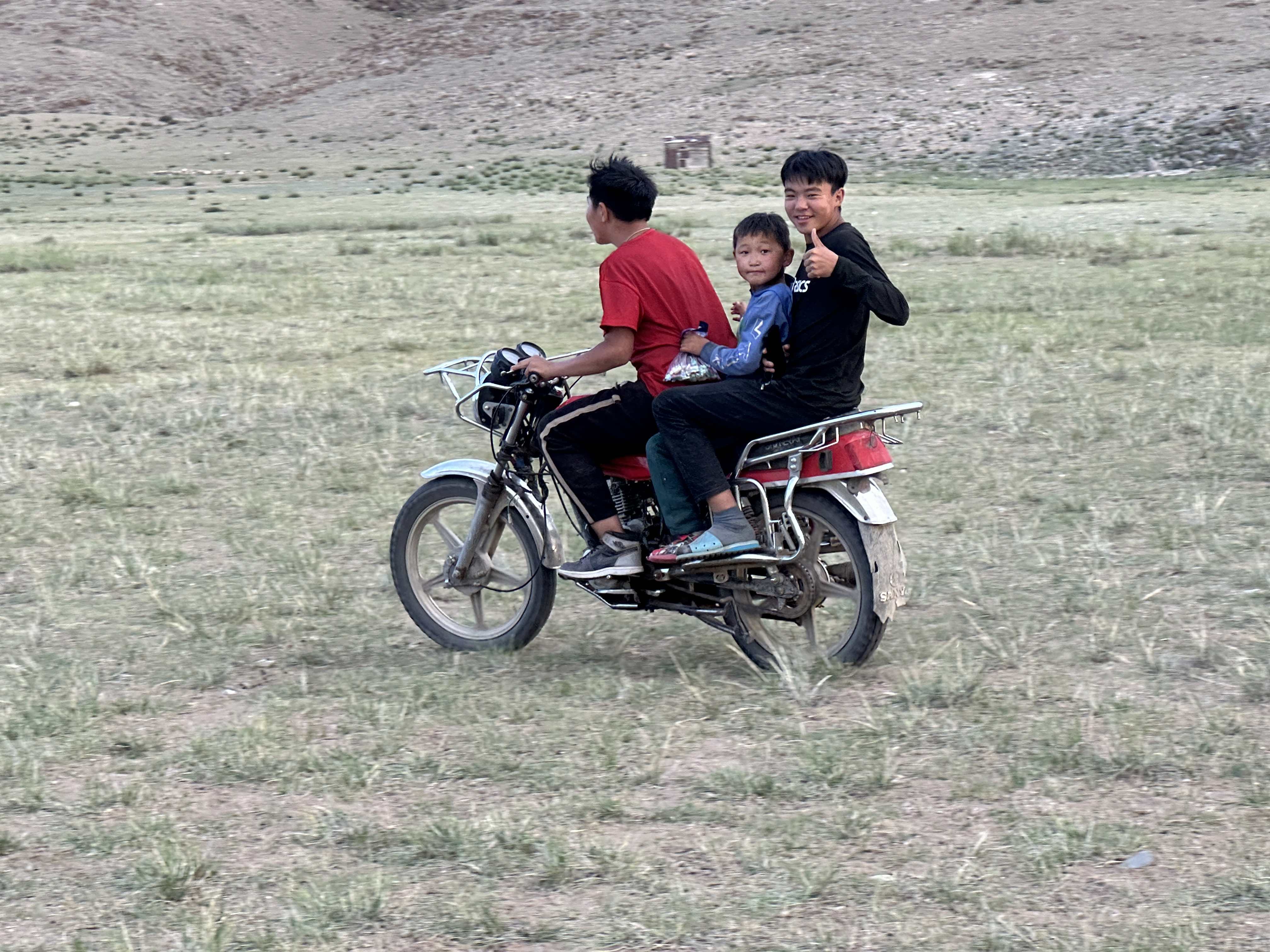 Ein paar Kilometer hinter dem Ort rasten wir an dem kleinen See Nuurmogoj. Er ist ziemlich ausgetrocknet, aber an dem verbliebenen Ufer tummeln sich allerhand Vögel und Pferde und eine Herde Ziegen und Schafe kommt vorbei. Es gefällt uns so gut hier, dass wir noch einen weiteren Tag am See verbringen. Wir bekommen allerhand Besuch von Mongolen aus der Gegend, es hat sich wohl herumgesprochen, dass wir am See campen. Die Verständigung klappte nicht so gut, aber es ist klar, dass alle einen Blick in unsere Kabine werfen möchten. Von den älteren Kindern konnte einer ein paar Brocken Englisch. Der Google Übersetzer hat mongolisch zwar im Programm, aber irgendwie hat es nicht so richtig funktioniert, vielleicht weil keine mongolischen Schriftzeichen verfügbar waren. Wir verteilen allerhand Bonbons an die Kinder und werden von einer Familie mit getrocknetem Quark beschenkt. Kuh- oder auch Schafsmilch wird an der Luft getrocknet, dadurch entsteht eine feste Masse, die sehr lange haltbar ist. Der Geschmack ist gewöhnungsbedürftigt.