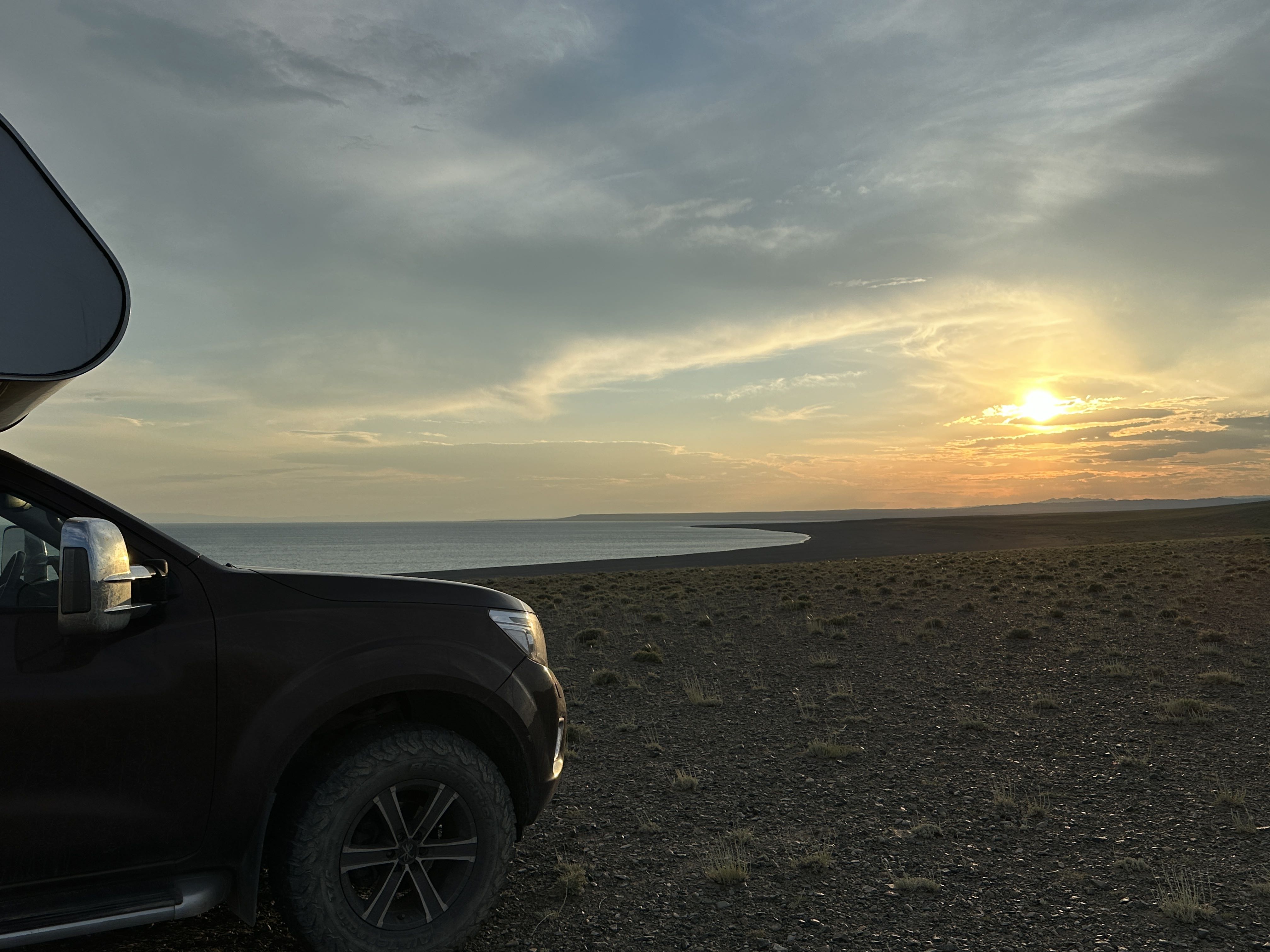Eigentlich wollten wir weiter durch das Orkhon Valley fahren – ein UNESCO Weltkulturerbe – aber irgendwie haben wir nicht die richtige Piste erwischt und landen etwas weiter östlich amSee Ogii Nuur.