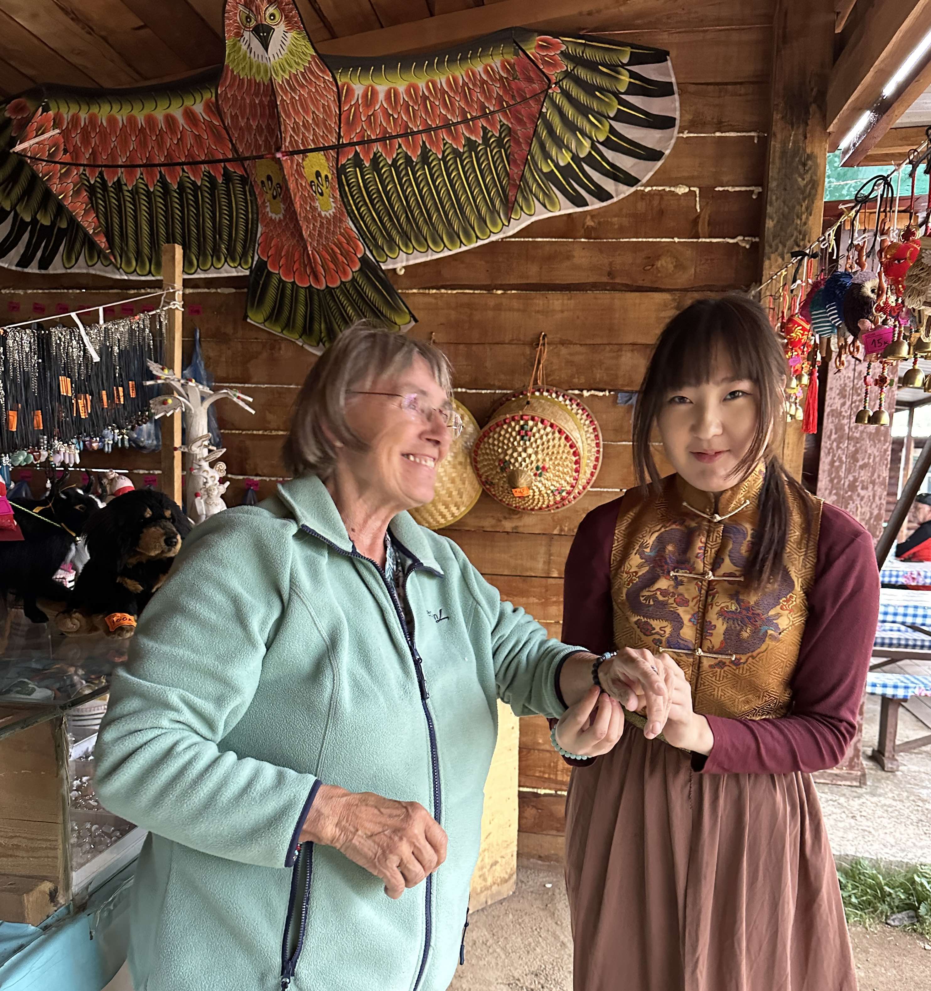 Bevor wir zur chinesischen Grenze aufbrechen, werden noch diverse Gruppenfotos gemacht. Der Abschied fällt uns schwer und ein paar Tränchen werden schon mal vergossen. Es war eine tolle Zeit, die wir zusammen hatten! Yinchou und Jerry waren die perfekten Reiseleiter, haben uns in allen erdenklichen Situationen unterstützt, kenntnisreich durch die vielen kulturellen und landschaftlichen Highlights geführt und wir haben viele gemeinsame Abende in freundschaftlicher Atmosphäre mit netten Gesprächen und manch einem Glas Pflaumenwein verbracht.