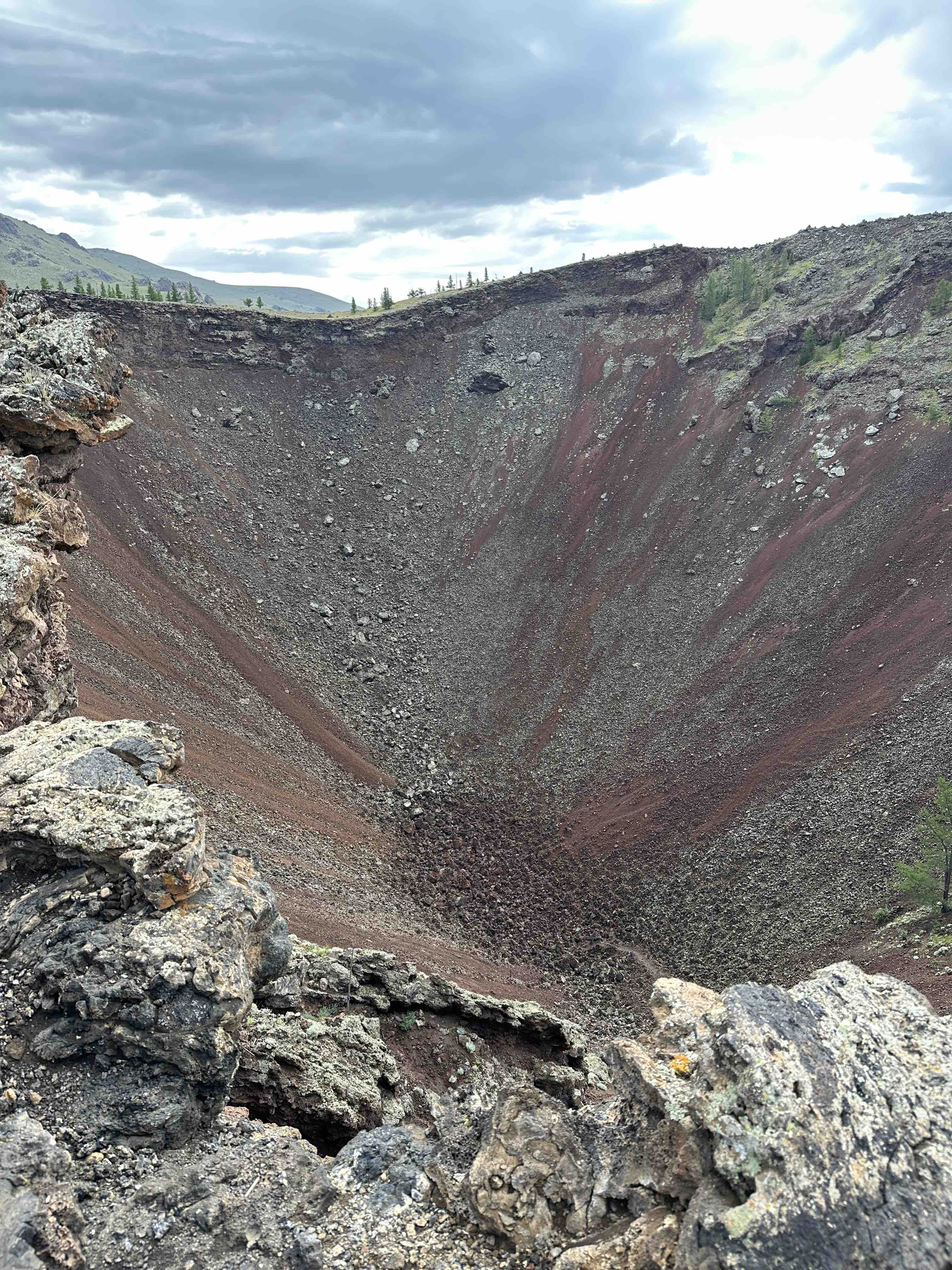 Wir fahren an dem großen See Tsagaan Nuur vorbei, an dessen Ufer zahlreiche Ger-Camps für Touristen bereitstehen. In Tariat biegen wir ab und holpern auf einer üblen Piste zum Vulkan Khorgo. Es fängt an zu regnen und die Besteigung wird auf den nächsten Morgen verschoben und wir gehen erst mal shoppen.